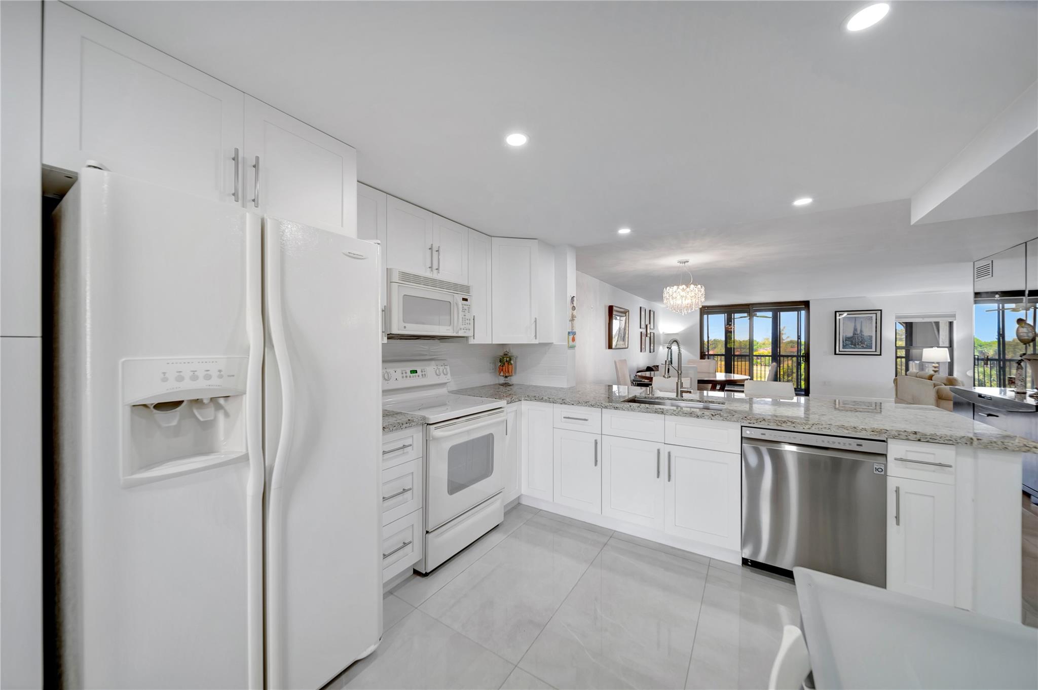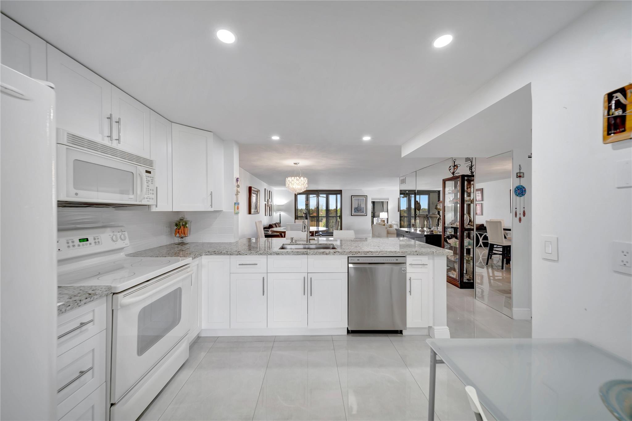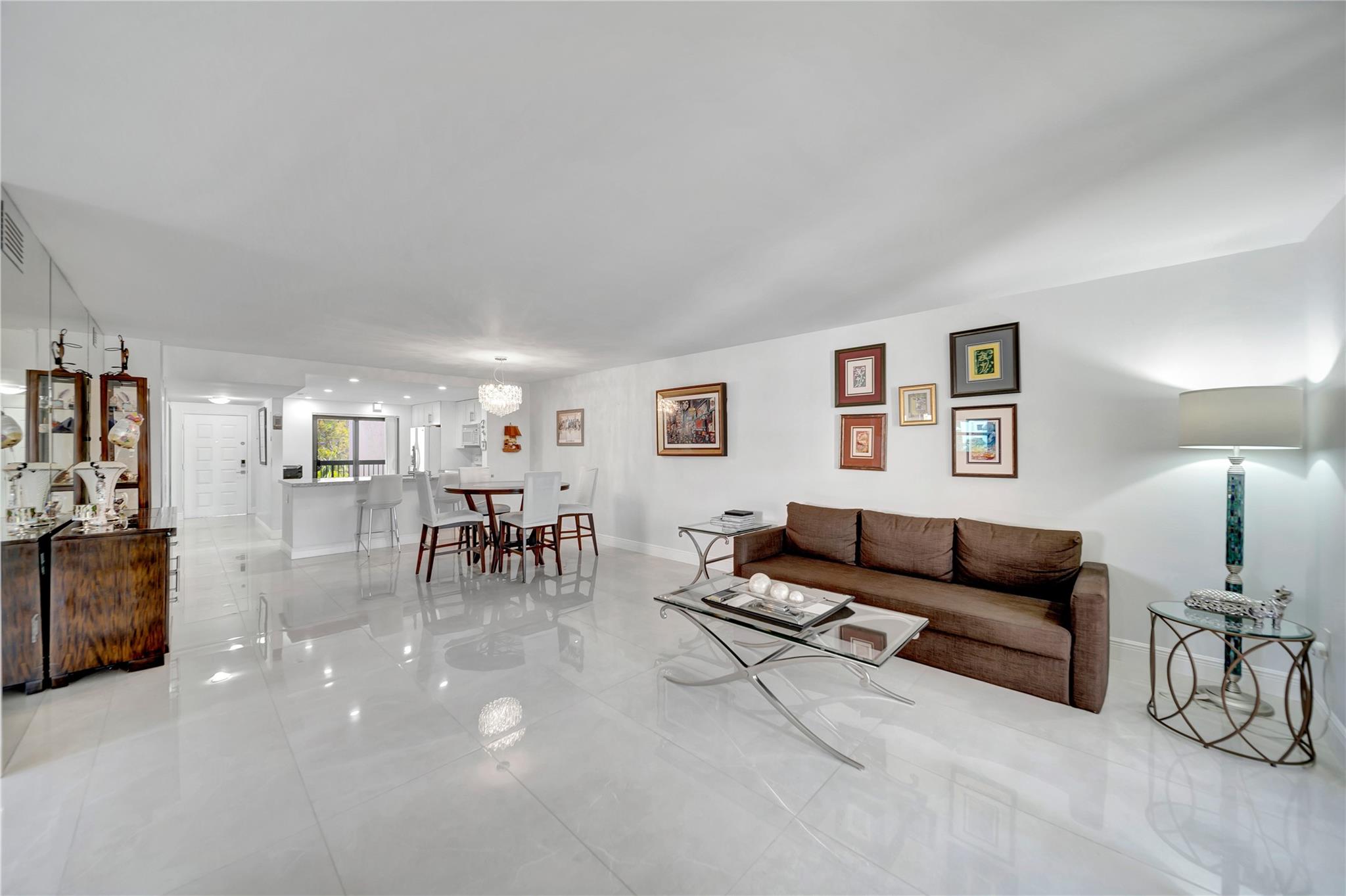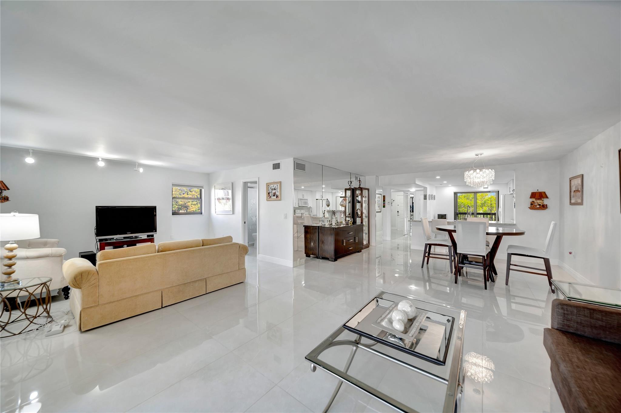 GORGEOUS PRISTINE 1530 SQUARE FEET FULLY RENOVATED condo in Prestigious 55+ LAKES OF ENVIRON Community. Unit has Impact Windows & Doors (2021); In-Unit Washer/Dryer; Tankless water heater; & newer AC (2019). LAKES OF ENVIRON is a very well-maintained development WITH BRAND NEW ROOFS; new paint; new keyless entry security system; new HEATED POOL renovation; new pool furniture and recently sealed parking lot with many guest parking spaces. No pending special assessments. Ownership in LAKES OF ENVIRON automatically entitles membership to Environ Cultural Center featuring Fitness Center, Billiard Room, Bowling Alley; Tennis Courts, Pickleball Court, Basketball Court & much more. This BEAUTIFUL unit is a MUST SEE !!! Dining Room Chandelier and guest bedroom drapes are not included in sale.
