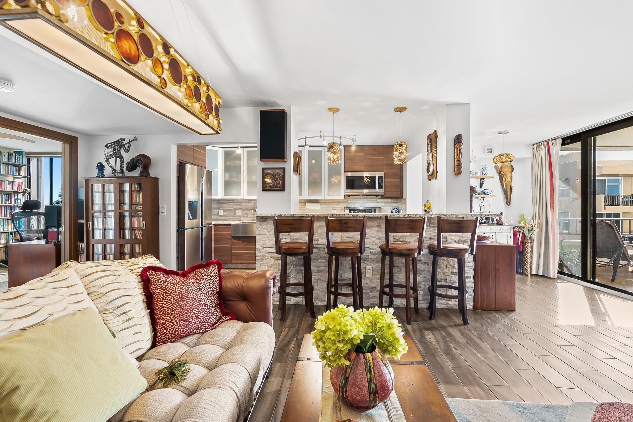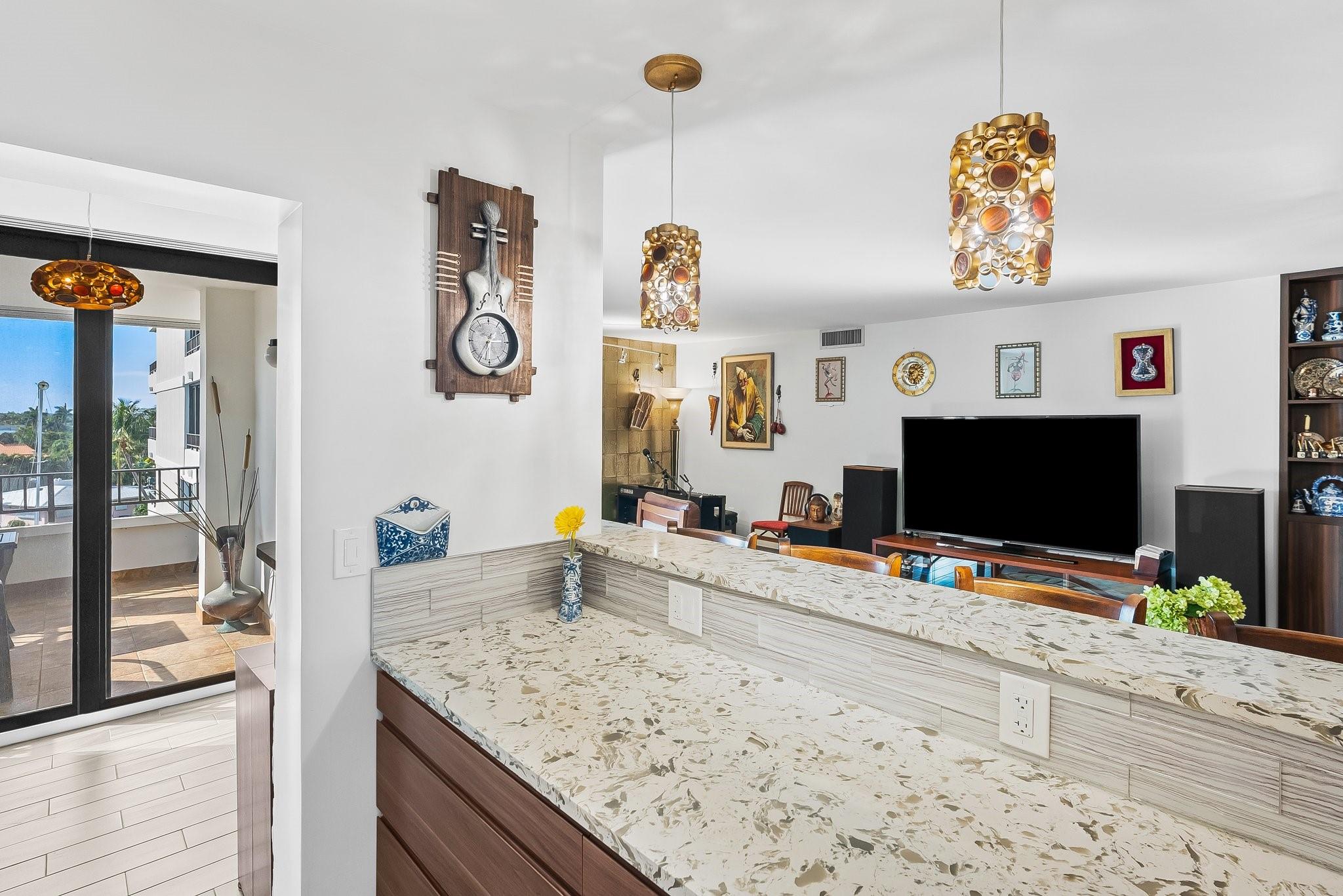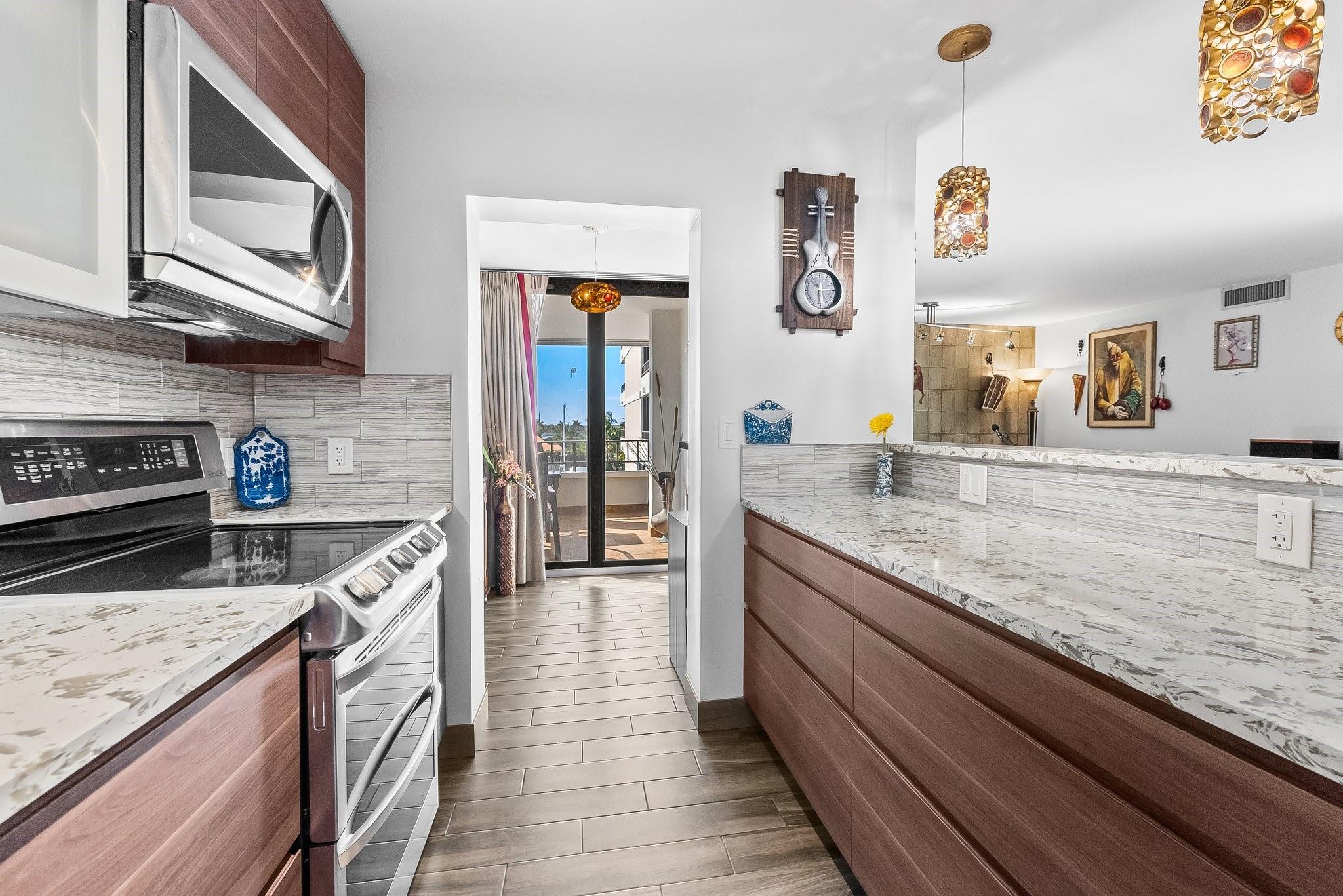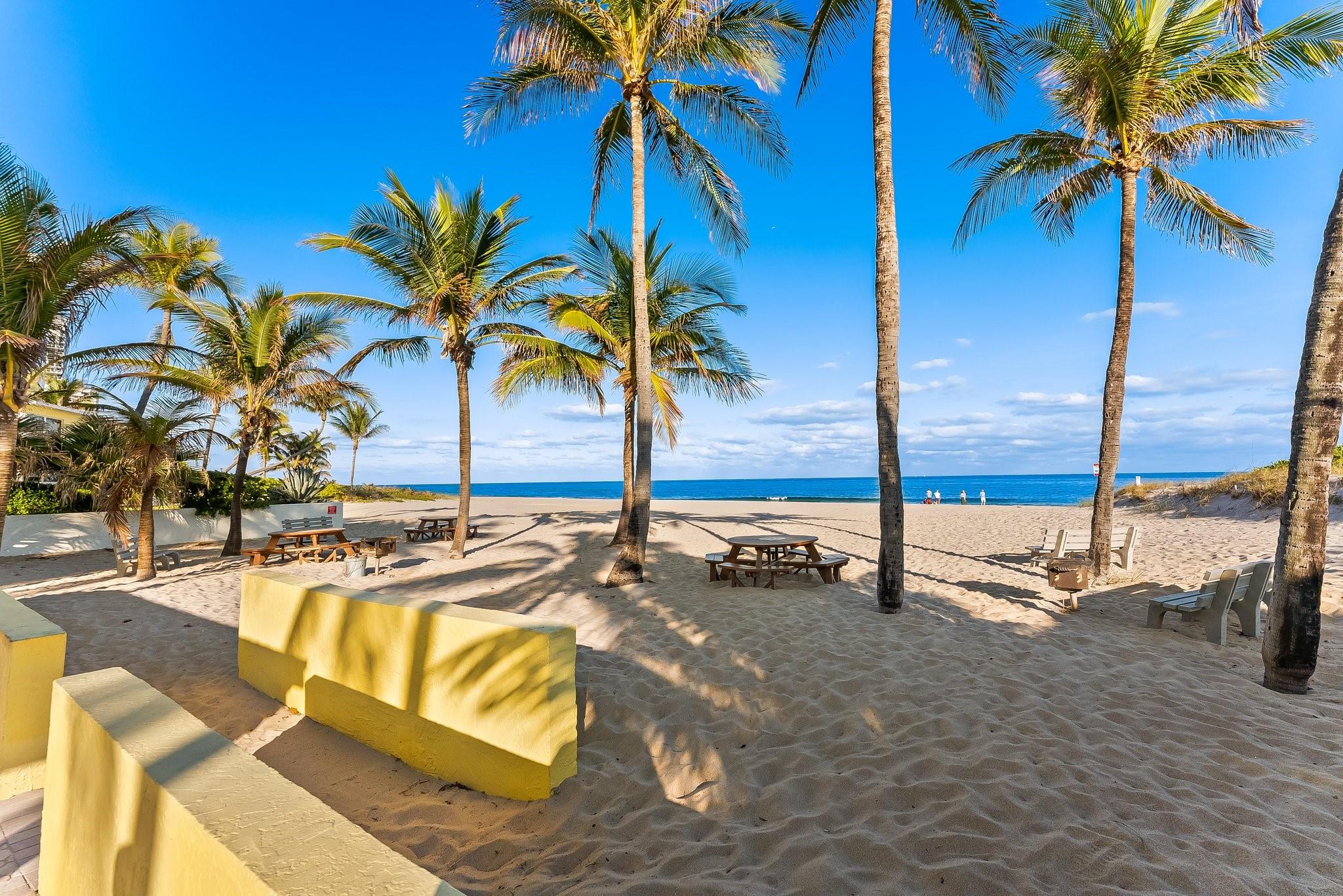 The ultimate, fully renovated beach condo! Welcome to Emerald Tower, where you can enjoy living in a building which has completed all milestone inspections, has been fully renovated throughout and has deeded access to the private El Mar Beach Club. With a Southwest exposure, you can enjoy incredible views from your wraparound balcony sunrise to sunset of the ocean and intracoastal. This 3 bedroom, 2 bathroom unit was fully renovated and expanded in 2017. Inside you will find porcelain tile floors, a modern kitchen with plenty of storage, a spacious living and dining area, washer and dryer in unit. Generous primary suite with steam sauna shower capabilities and an expanded area perfect for an office or craft area. Boat docks up to 36' (when available), 1 garage spot and plenty of amenities!