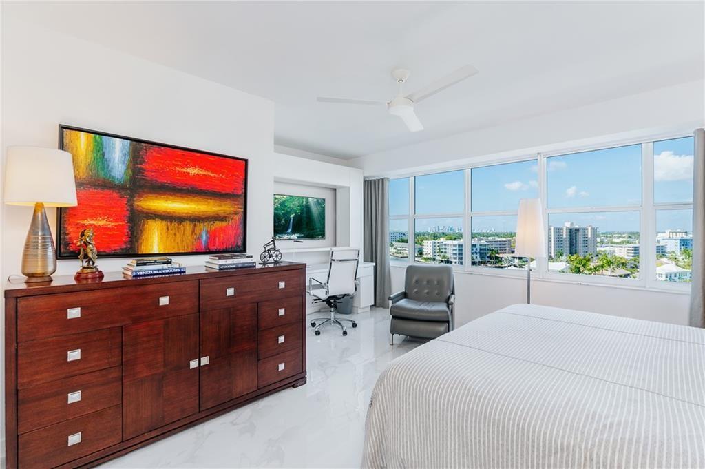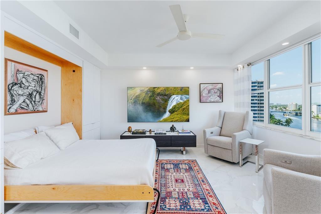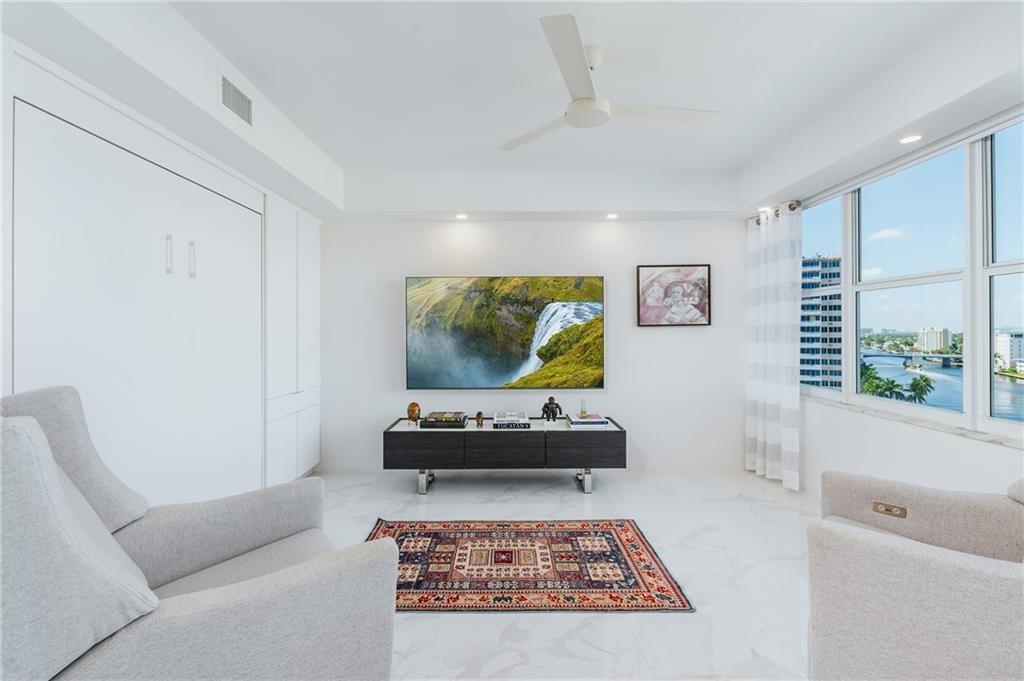 Indulge in luxury living with breathtaking, unobstructed views of the Intracoastal and downtown Fort Lauderdale from every room. This fully renovated condo features a chef’s kitchen with a quartz waterfall island, Bosch and KitchenAid SS appliances, custom cabinetry, and a wine cooler. Polished porcelain floors flow throughout, with modern bathrooms featuring rain showerheads and custom vanities. The guest room is a versatile den with a Murphy bed and a large-screen TV. Enjoy automated shades, impact windows, and new A/C (2023), with cable & internet included in maintenance. Furniture is negotiable. No leasing or pets are allowed; the minimum annual income required is $90,000. 40-year inspection complete; no pending assessments. Schedule your private showing today!