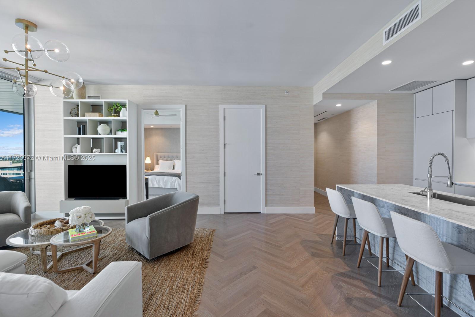 Step inside with me! This magnificent, high-floor residence showcases unobstructed views of downtown Miami's skyline and Biscayne Bay. The impeccably designed living space is bathed in natural light from soaring floor-to-ceiling windows. The thoughtful floor plan features a chef's kitchen w/ Subzero/Wolf appliances. Luxurious Poliform finishes grace both kitchen and bathrooms, while custom closets and refined millwork elevate the sophistication throughout. A sprawling 500SF terrace offers an outdoor oasis where sunsets and bay views captivate year-round. This exceptional offering uniquely includes 2 parking spaces. With only 69 units, 57 Ocean delivers an intimate living experience enhanced by world-class amenities: concierge, fitness facilities, restaurant, spa, beach service, and 3 pools