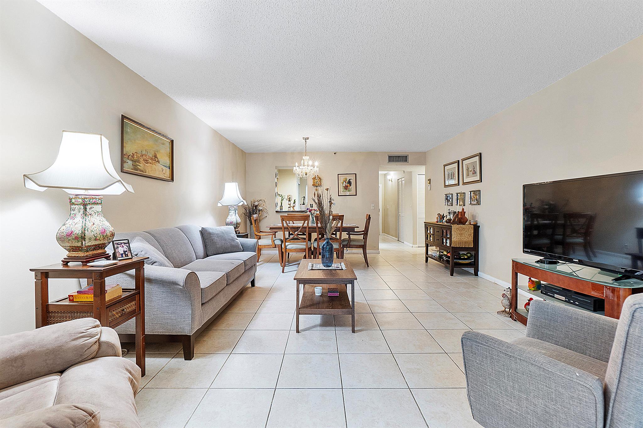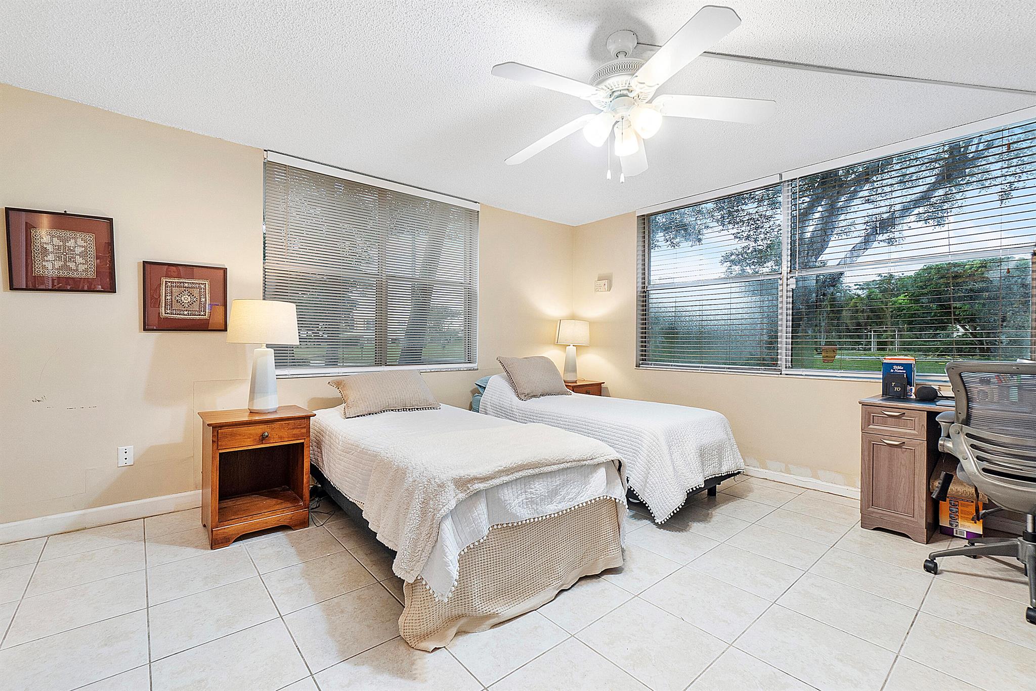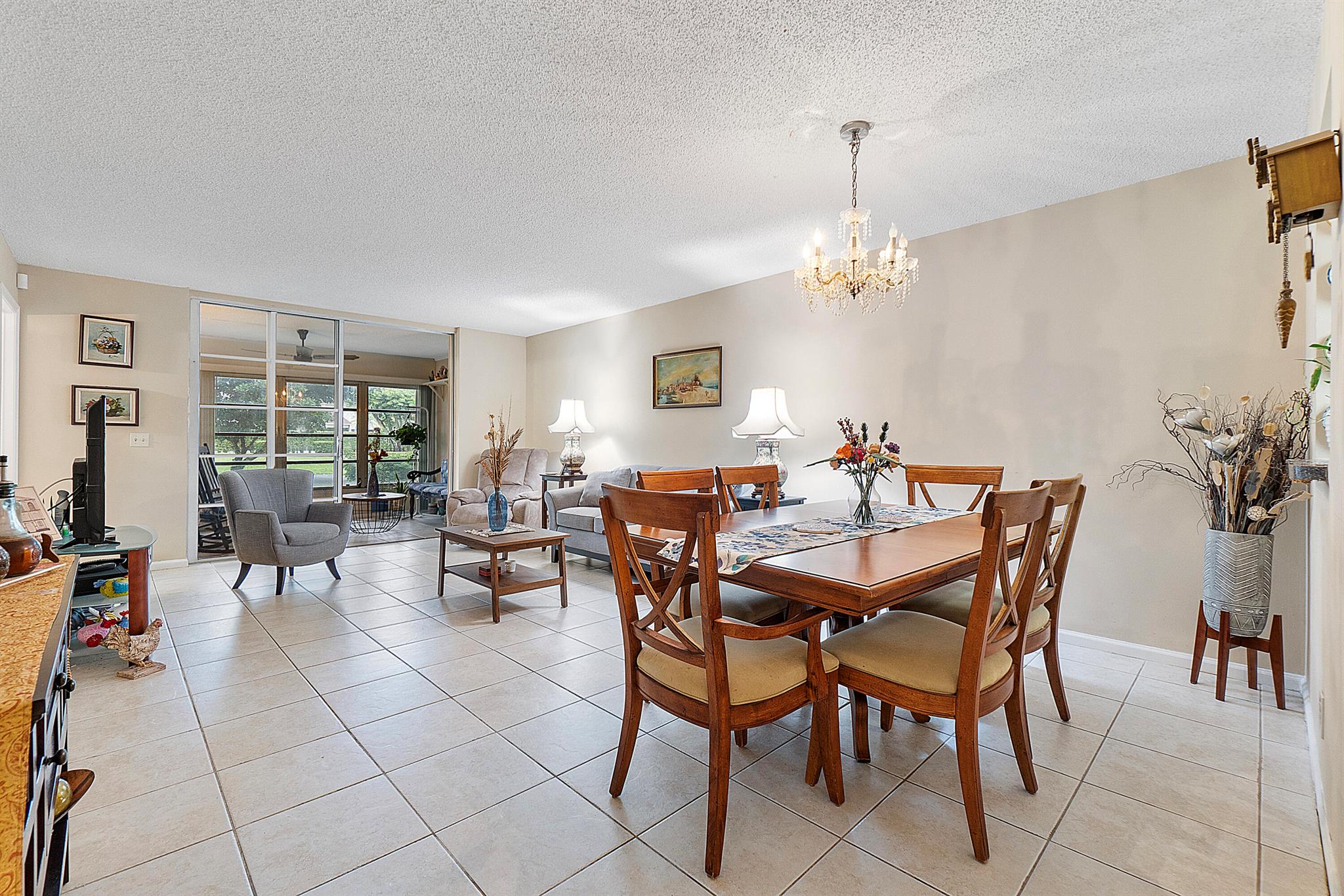 Discover the largest unit in this desirable building! Welcome home to a spacious first-floor end unit featuring a bright eat-in kitchen and serene lake views from the enclosed patio, which conveniently includes its own exterior door. The master bedroom is very spacious boasts a generous custom walk-in closet.Enjoy the elegance of tile flooring throughout the unit, complemented by its prime location near the pool, clubhouse, storage unit, and a variety of amenities. Reserved parking near the front door adds to your convenience. Experience a walkable neighborhood with well-maintained, accessible sidewalks and paths for leisurely strolls. Prefer not to walk or drive? Take advantage of the community trolley shuttle, providing easy access to shopping, entertainment, and appointments.