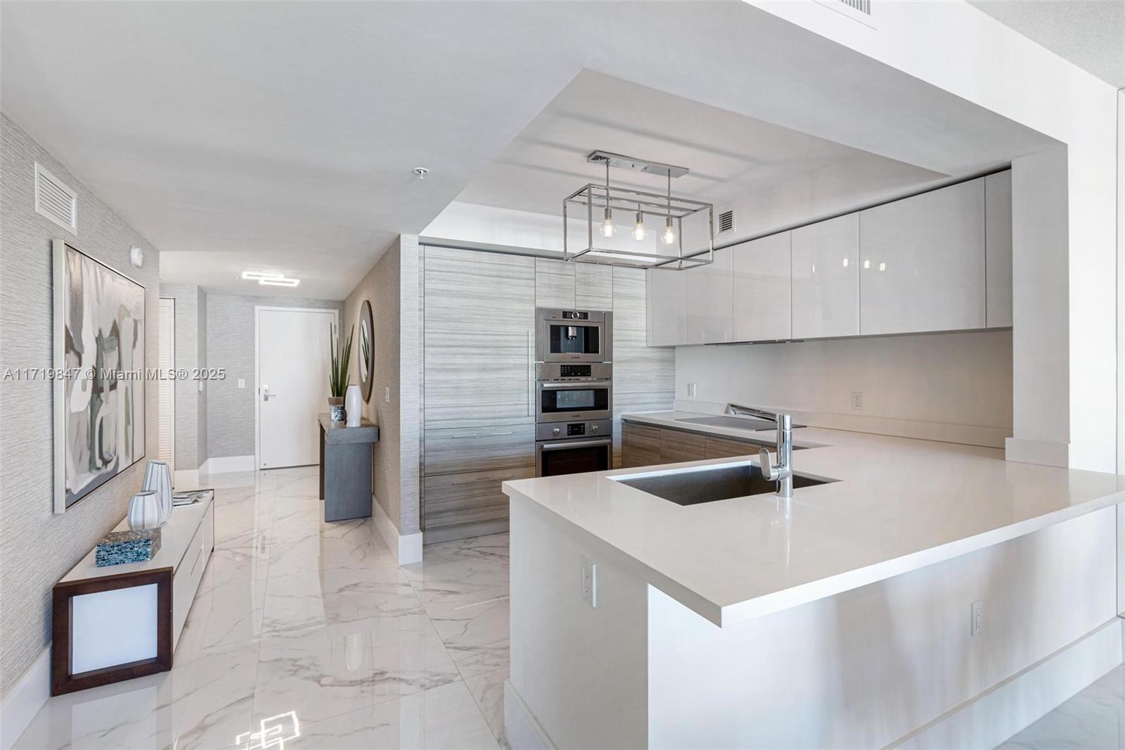 Outstanding apartment professionally decorated by the renowned Steven G! This unit is very clean, barely used, and is being offered Turnkey! Open kitchen with Italian cabinetry and top of the line appliances. Den was converted into the 3rd bedroom, making this unit a 3 bedroom with 3 full bathrooms. Parque Towers is located steps from from the beach and feature amazing amenities, such as full gym, 4 heated pools, Spa, game room, movie theater, large party room and much more.