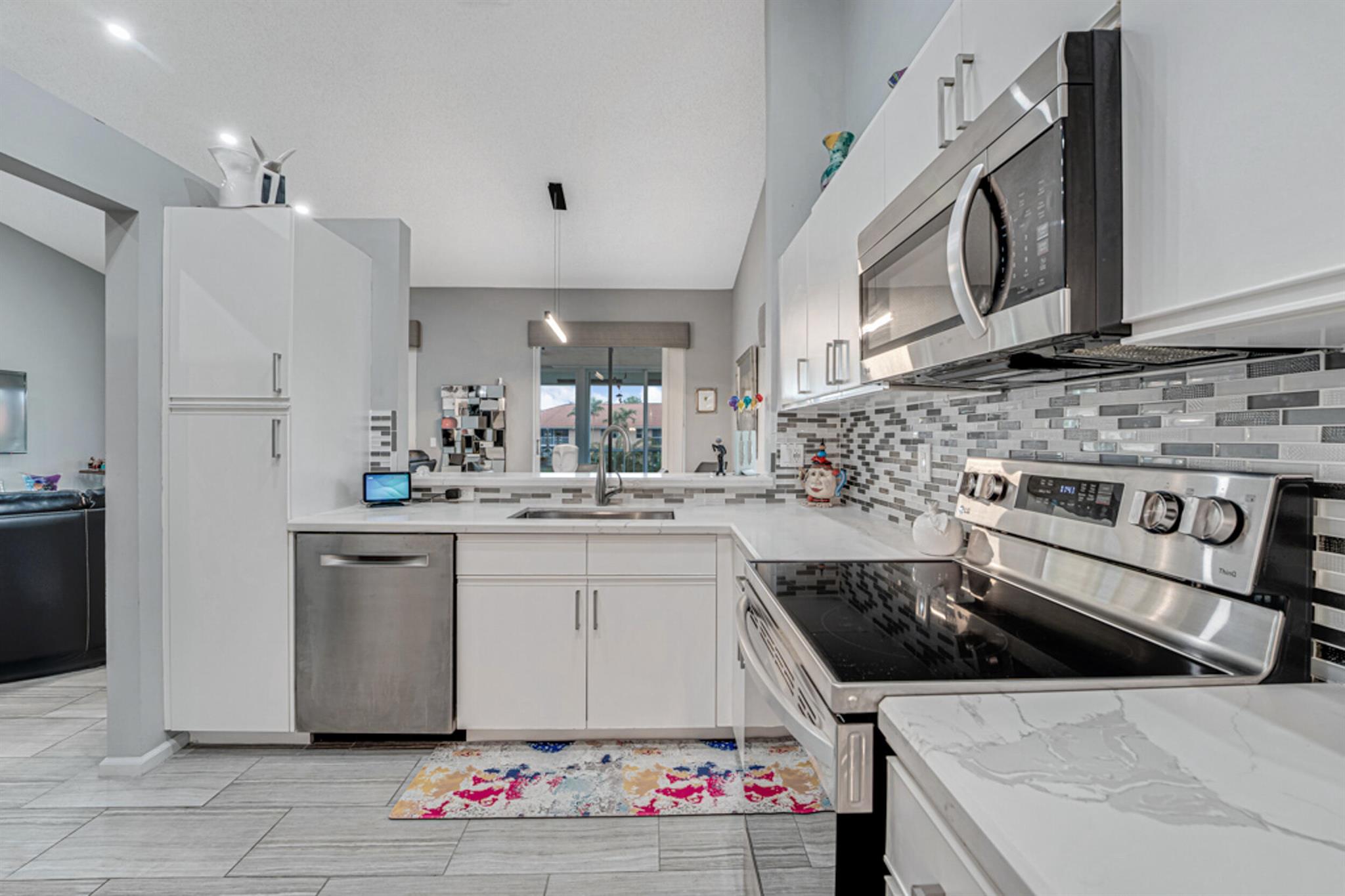 This modern & well maintained condo offers comfortable living and a beautiful lake view. The home is filled with natural light, creating a warm & inviting atmosphere throughout. The updated kitchen features sleek stainless steel appliances, and ceramic tile & high hat LED lights throughout the living areas. An enclosed patio provides a space to relax and enjoy nature. Additional conveniences include an inside laundry room and covered carport parking. Located in the 55+ community of Palm Isles, this home is minutes away from new shopping centers, offering dining, retail, & entertainment options for your convenience and enjoyment. Be sure to check out the 3D walkthrough tour for an ''in-person'' view of the entire condo. Multi-million Dollar Renovated Clubhouse reopens in December!