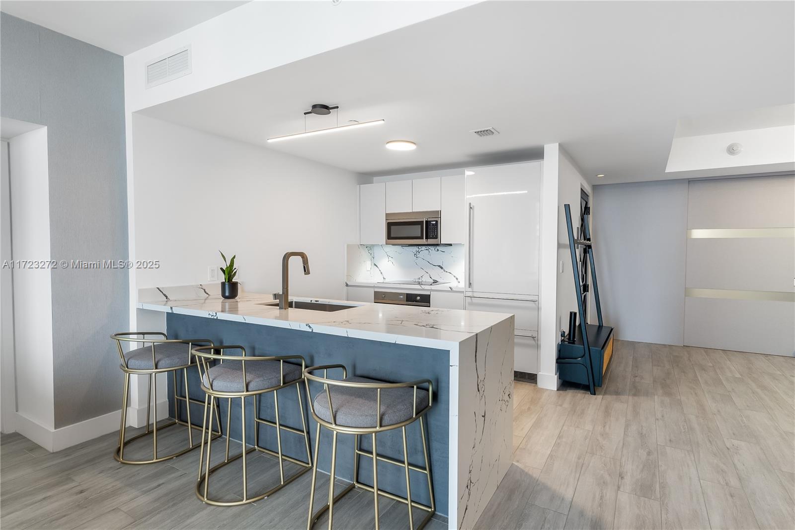 Nestled in the vibrant center of Brickell, this east-facing, high-floor residence combines urban energy with peaceful place for you to retreat. Experience living just steps away from the neighborhood's most cherished dining, shopping, and entertainment destinations. The spacious layout of an 04-line residence features a private elevator upon entry with two en-suite bedrooms with stunning bay & skyline views, along with a versatile den which could serve as a third bedroom, nursery, office, media room, or additional storage. Thoughtful upgrades include custom countertops, elegant wallpaper, & a built-in storage unit with a Murphy bed for hosting guests. Living at 1010 Brickell is a community where you can enjoy exceptional amenities designed for relaxation, wellness, and family fun.