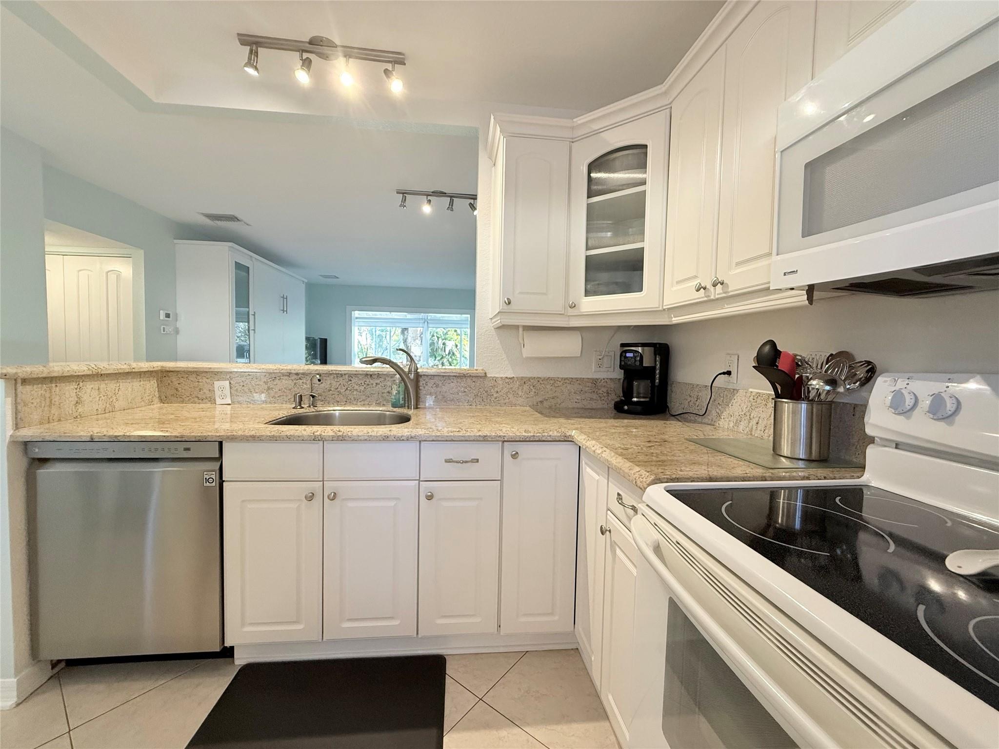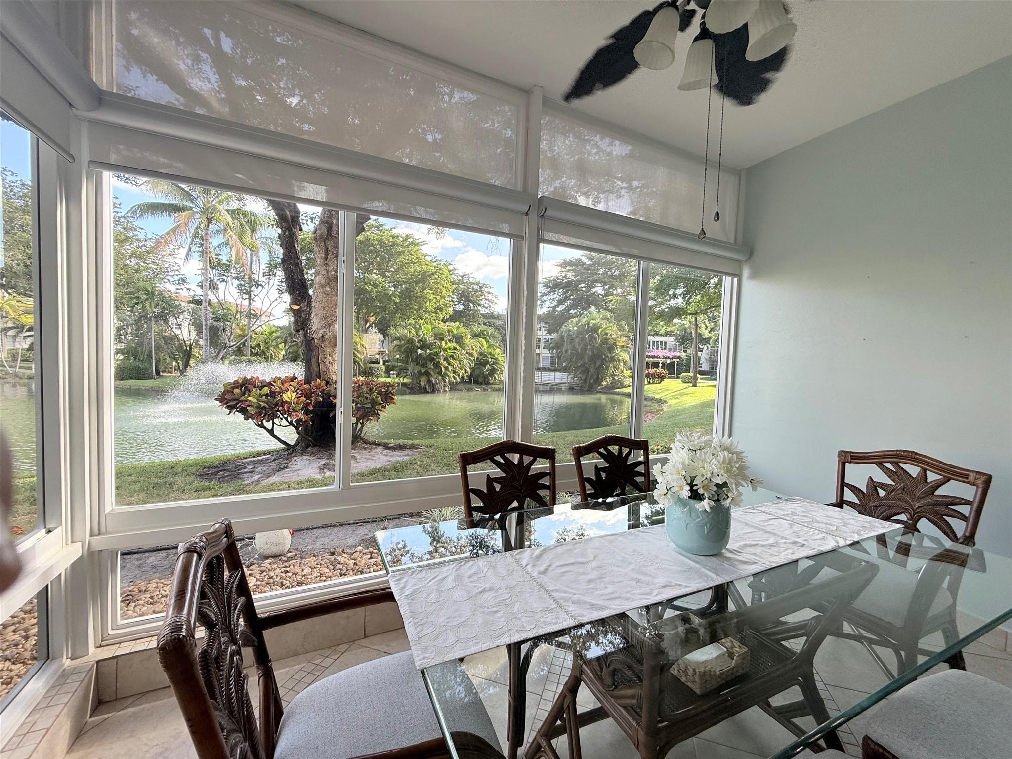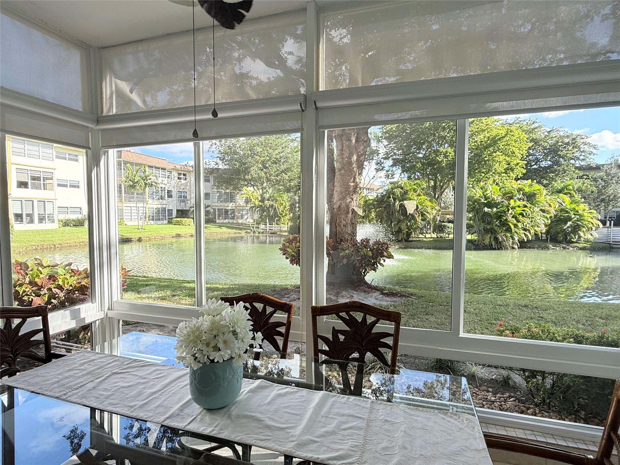 Don't look further! IT HAS IT ALL! *BEAUTIFUL, bright & airy 2 bed 2 bath, first floor unit. IMPACT WINDOWS & DOORS (front & back). AMAZING LAKE VIEW from Dining/Florida room. NICELY FURNISHED & DECORATED (Turn Key). Freshly painted. OPEN KITCHEN w/granite countertop, white cabinets, white appliances. Integrated LUNCH COUNTER. Living room w/MURPHY BED, NEW high quality FURNITURE & electric recliners. SMOOTH CEILINGS in living room/kitchen. Large bedrooms w/layedout closet. BOTH BATHROOMS completely RENOVATED w/elegant ceramic tiles in showers (plumbing replaced). **AC 2020 **ROOF 2024 **50 YEARS INSPECTION COMPLETED 2023 **BUILDING WASTE PIPES 2024 **ELEVATOR 2023. 55+ community w/pools, bbq area, shuffleboard, billard, fitness. Minutes away from restaurants, shops, & beautiful beaches.