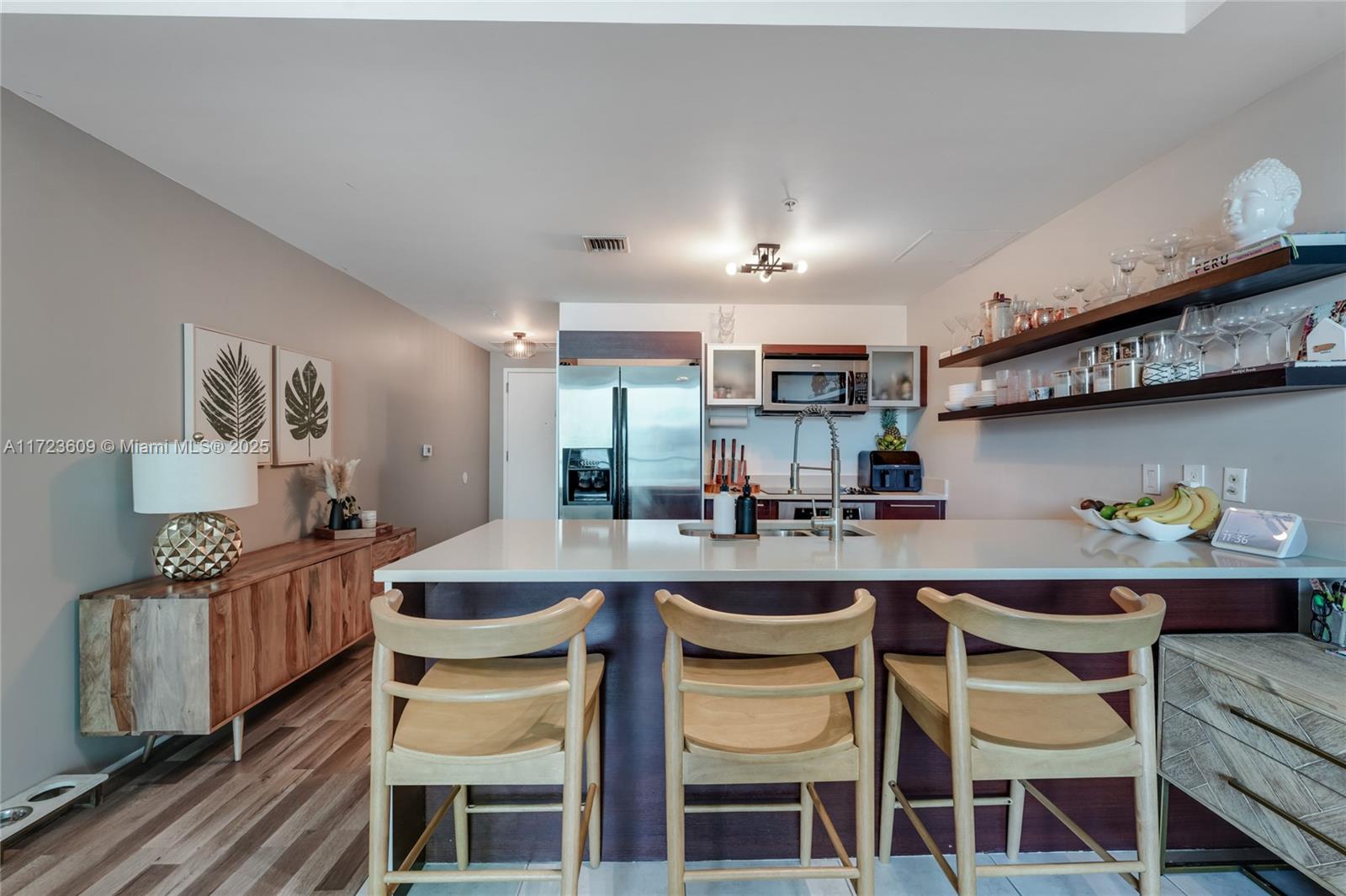 Welcome to Quantum on the Bay! This stunning 1 bed, 1.5 bath condo offers abundant natural light, breathtaking sunsets, and incredible skyline views. Features include sleek glass interior doors, elegant laminate floors, and a stylish kitchen with a central island, stainless-steel appliances, and quartz countertops. Enjoy resort-style amenities such as two pools, a fitness center, and an entertainment room. With valet parking and an assigned garage space, convenience is key. Located in vibrant Edgewater, this gem combines Miami luxury with low maintenance fees. Don’t miss your chance to own a piece of paradise! Tenant occupied month to month.