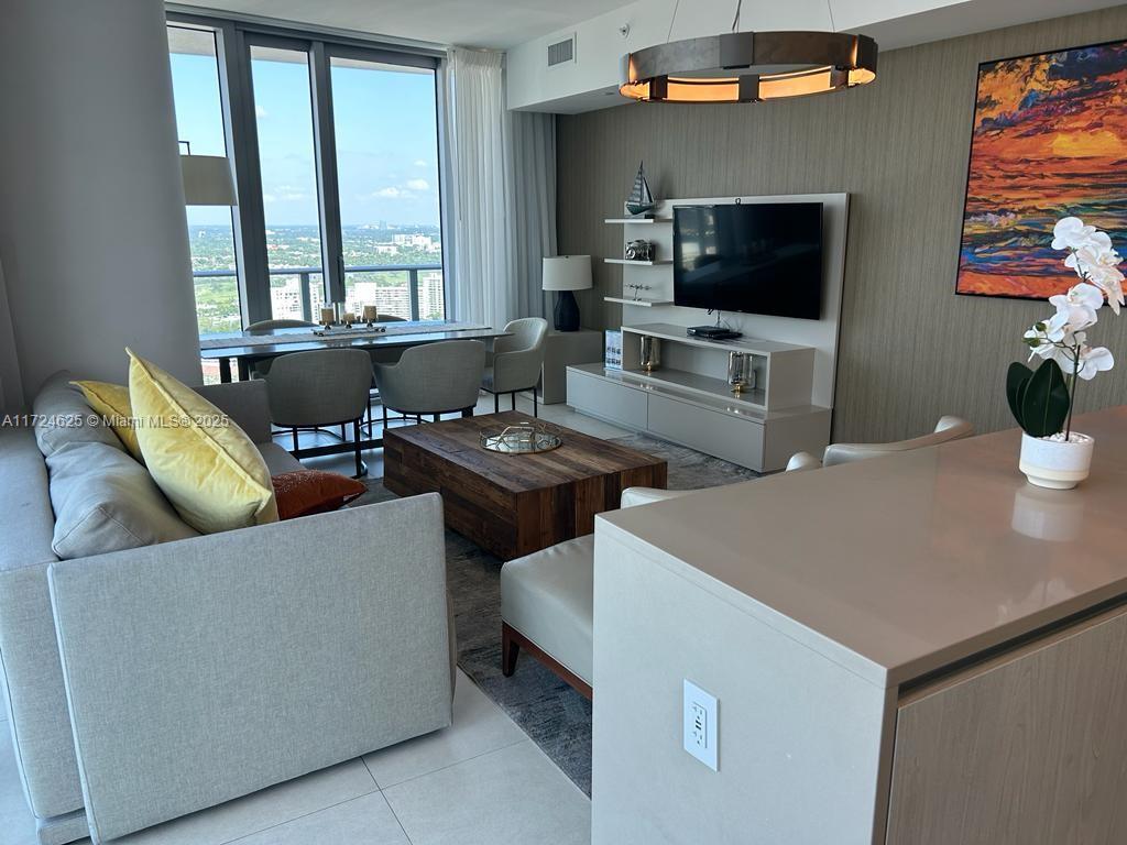 Gorgeous 2 bedroom 2 bath corner unit facing South West with views of the city, intracoastal, beach and more. Unit comes fully furnished and equipped with Sub-Zero and Wolf Appliances. Washer & Dryer inside the Unit. Tile Flooring throughout (no carpet) also balcony's floor has been properly coated. There are no rental restrictions so it can be managed by the hotel or any company. The owner used the property while visiting and rented through AIRBNB during the rest of the year, it covered all expenses and numbers are available upon request. Deluxe amenities with Rooftop, pool, restaurant, bar, gym & Spa, beach and pool service. Maintenance Includes electric, cable, internet and one free valet parking. Located minutes from Aventura mall, golden beach, gulfstream, casino and restaurants.