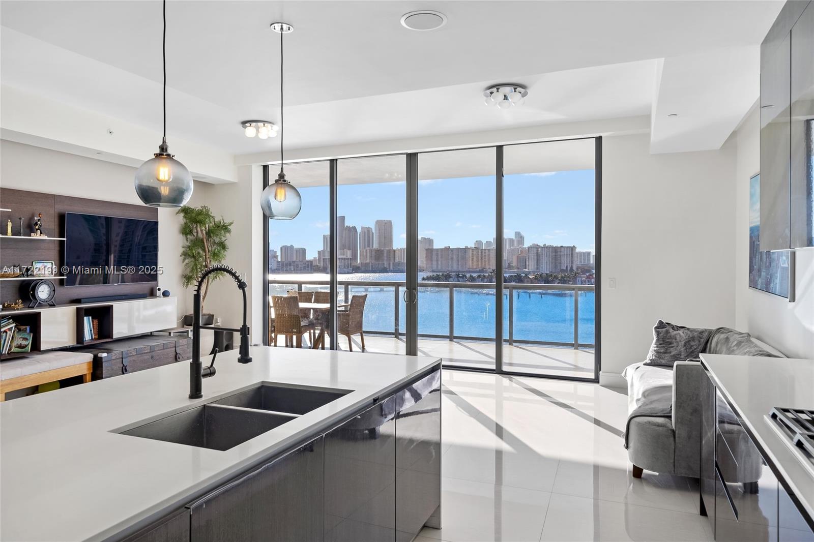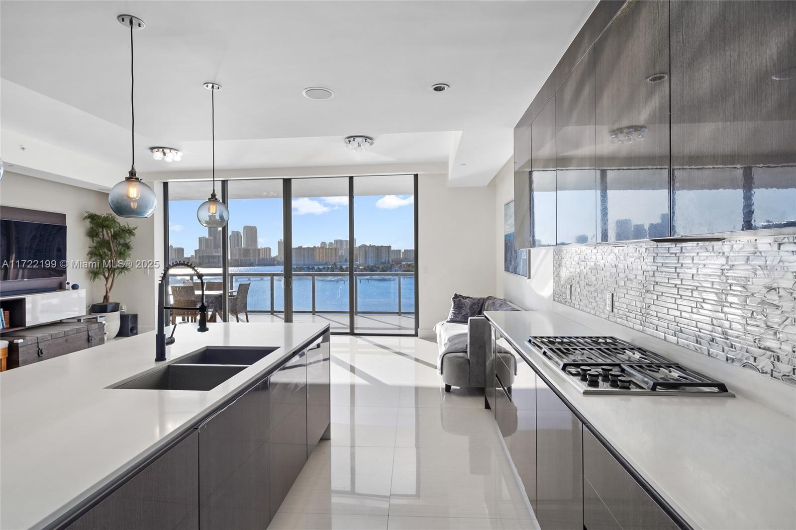 Experience luxury living in this stunning 3-bed, 4.5-bath 2,559 SF residence at Echo Aventura. This gorgeous flow-through condo features unobstructed bay views, a versatile and spacious floor plan, private elevator with foyer entry, motorized blinds, and a spa like primary bathroom. The oversized balcony, complete with a summer kitchen and BBQ, is perfect for entertaining. The gourmet kitchen is equipped with Sub-Zero appliances, a Wolf gas range and sleek finishes. Echo Aventura features 190 exclusive residences spread across five acres of prime waterfront. Enjoy resort-style amenities such as an infinity-edge pool, state-of-the-art fitness center, spa, concierge service, valet, and even a pet-friendly walking area.