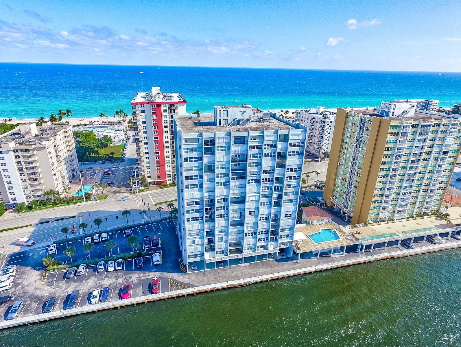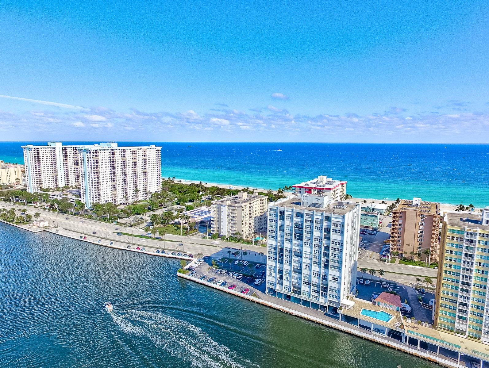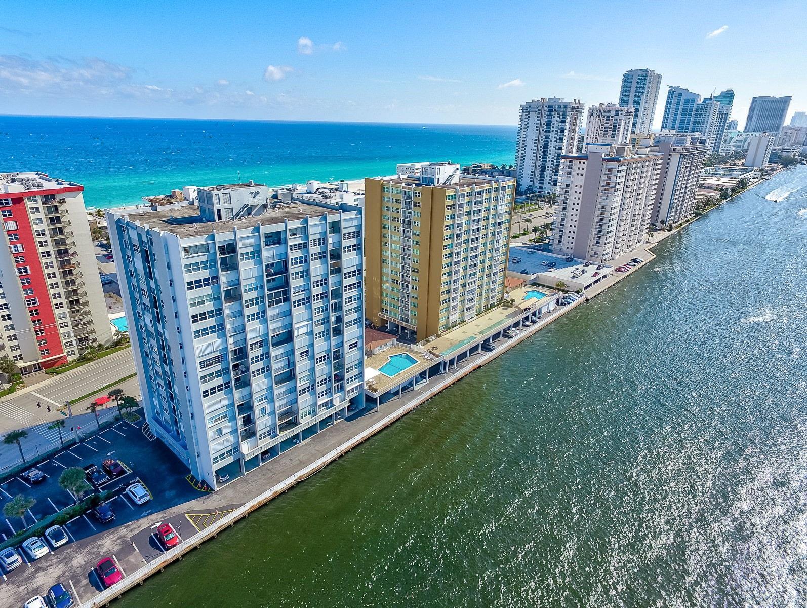 HUGE REDUCTION! Incredible opportunity in the heart of Hollywood Beach! This spacious unit sits directly on the Intracoastal, with endless water views in this terrific building with only 8 units per floor and ready for the new owner to make it their own. Desirable location close to the renowned Hollywood Boardwalk, easy access to the airport, surrounded by restaraunts and a short distance directly to beach. The building is undergoing their 50 year re-certification and repairs, so will be done for the next owner. The building provides a small excercise room, community room and sauna. Monthly maint fee includes the cable charge. Refer to attachements for important documents. Knowing new owner will need a full renovation, OWNERS HAVE PRICED THIS TO SELL!