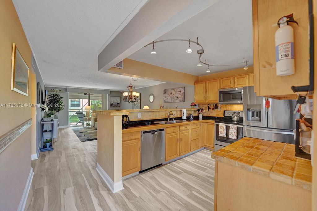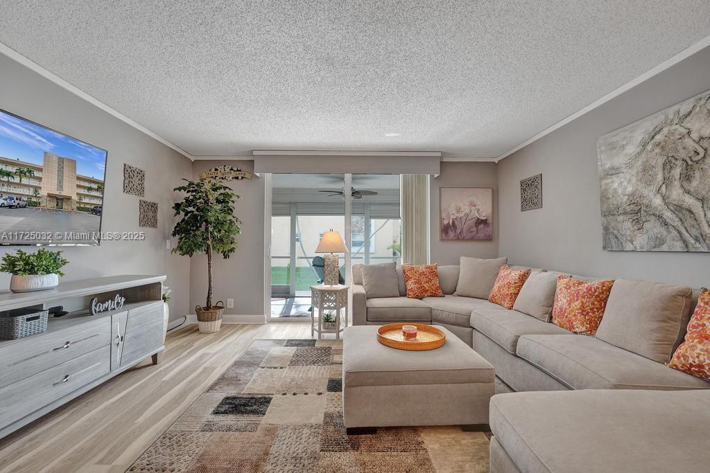 Motivated seller! Remodeled, new furniture. 2 miles to the ocean. Comfort & elegance greet you as you walk in the door. Open kitchen has wood cabinets, granite counters & stainless steel appliances. All impact windows & doors. New flooring throughout, brand new furniture can be included, freshly painted, lots of closet space, walk-in showers, crown molding, pocket doors. Parking right at your doorstep. Walking path to pool & BBQ. Short walk to Publix grocery store, banks, shopping. Close to beaches/Dania Jai-Alai/casinos/malls/golf/tennis/pickleball/air & sea ports/Downtown Hollywood/Las olas. Monthly maintenance $475. One owner/resident must be 55 or older, per condo rules. Own 3 years to lease. 40 year inspection complete. Close to Broadwalk. NO ASSESSMENTS PLANNED FOR 2026!