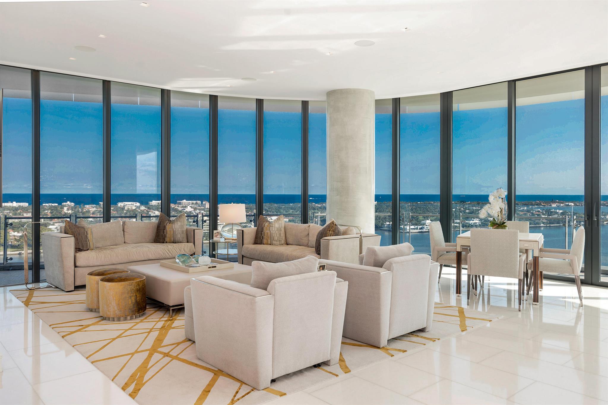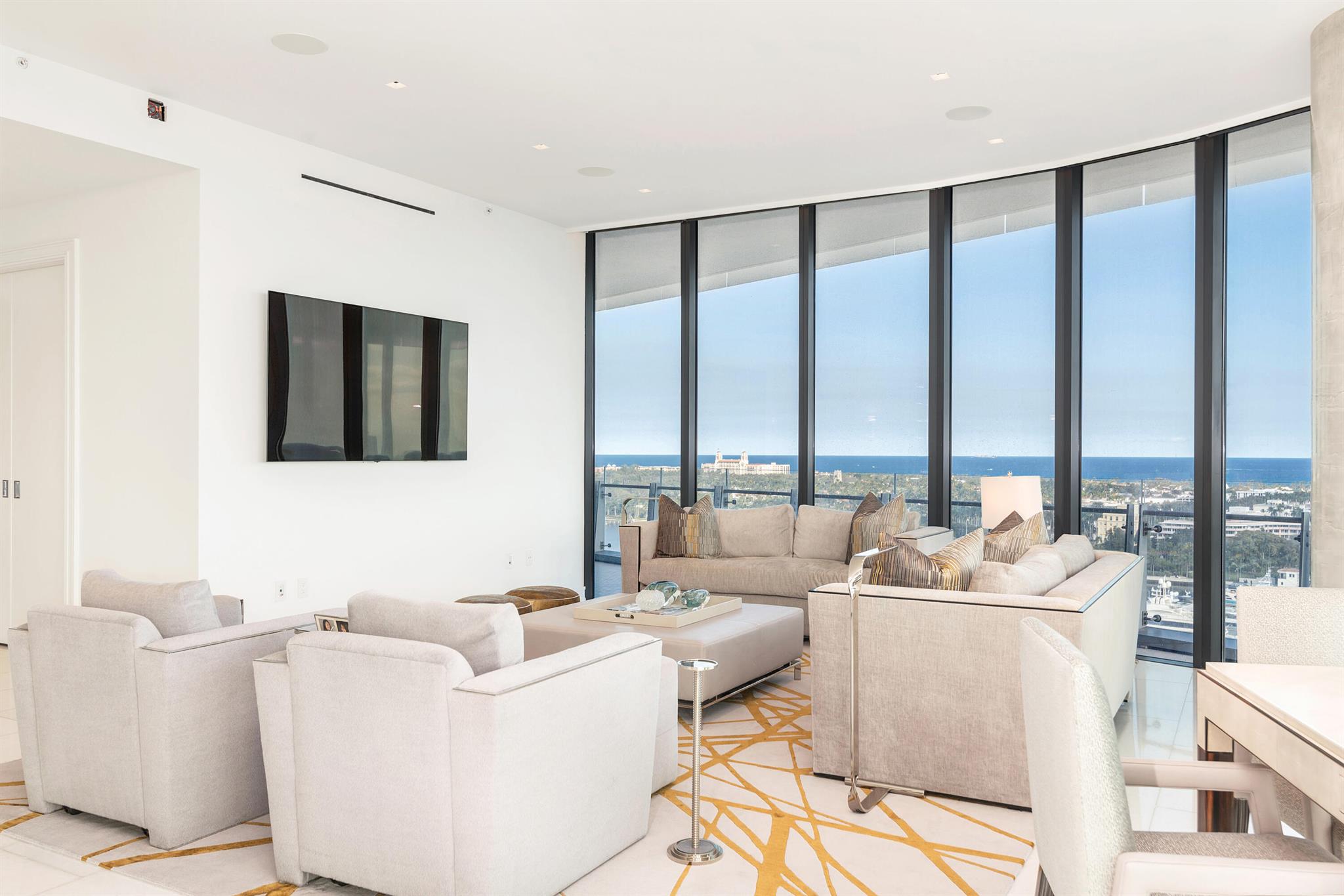 The coveted 04 Line at the Bristol is truly remarkable. As you enter this stunning high floor residence through a private foyer, you are greeted by breathtaking eastern and southern water views. This meticulously designed condominium features four bedrooms, five full bathrooms, and one half bath, seamlessly combining style and practicality. Created with sophistication in mind, this property boasts the finest finishes and top-tier upgrades and 10-ft ceilings throughout. It's an exceptional home in the sky. The Bristol is unparalleled when it comes to amenities in Palm Beach County, offering an array of five-star services and attention to detail. Amenities include a waterfront fitness center, men's and women's beauty salon, spas, steam rooms, saunas, and massage treatment rooms.