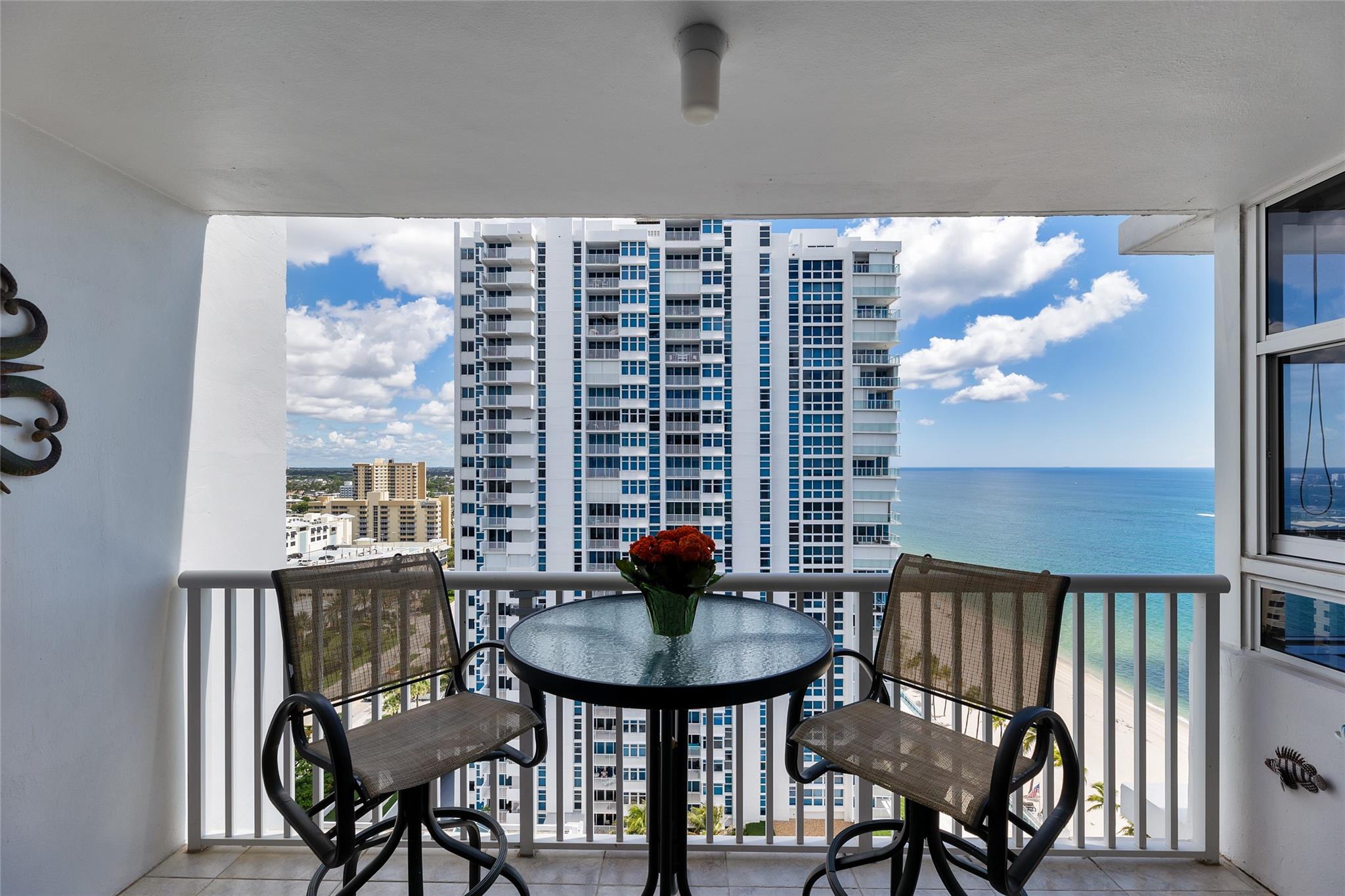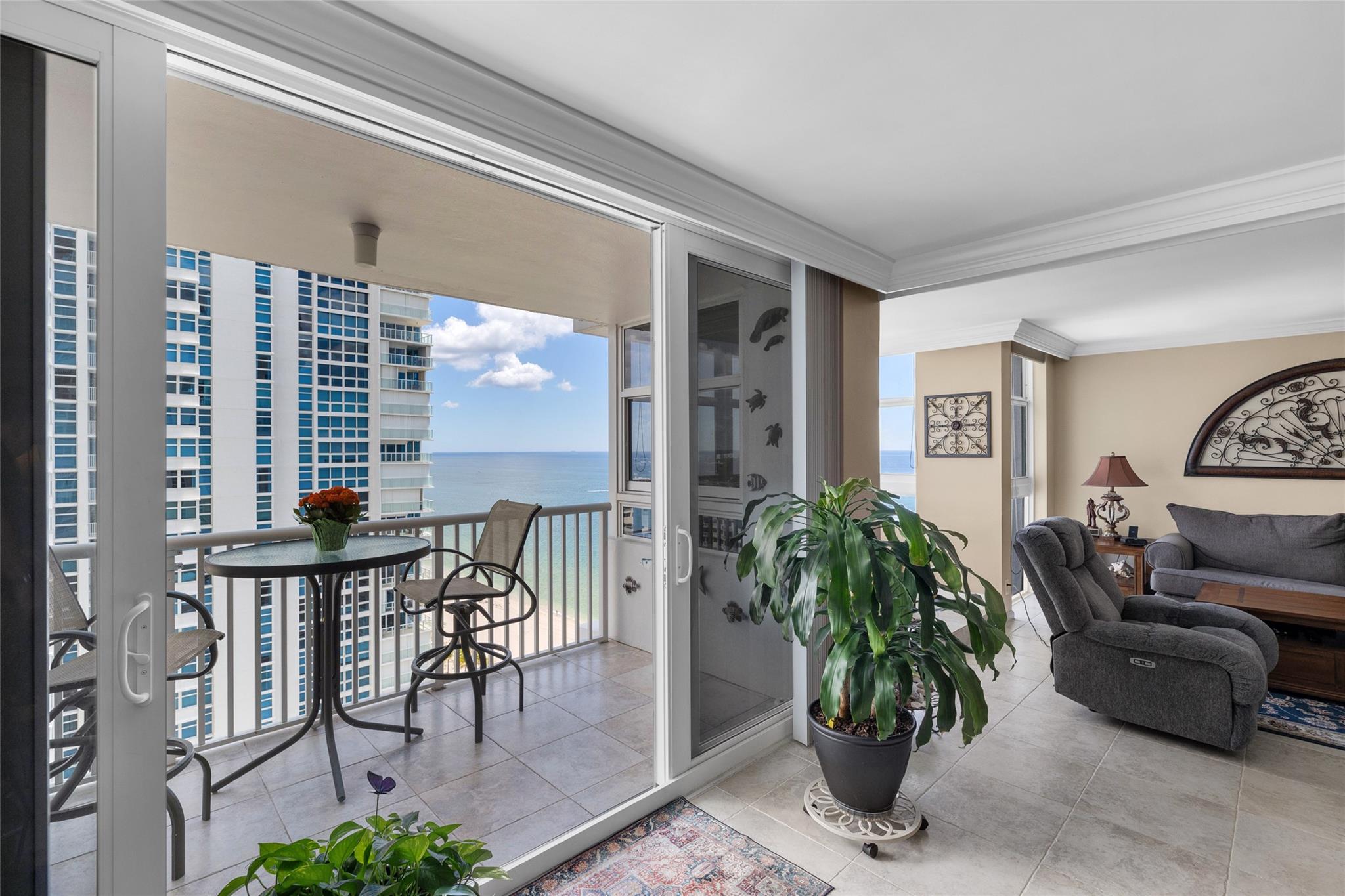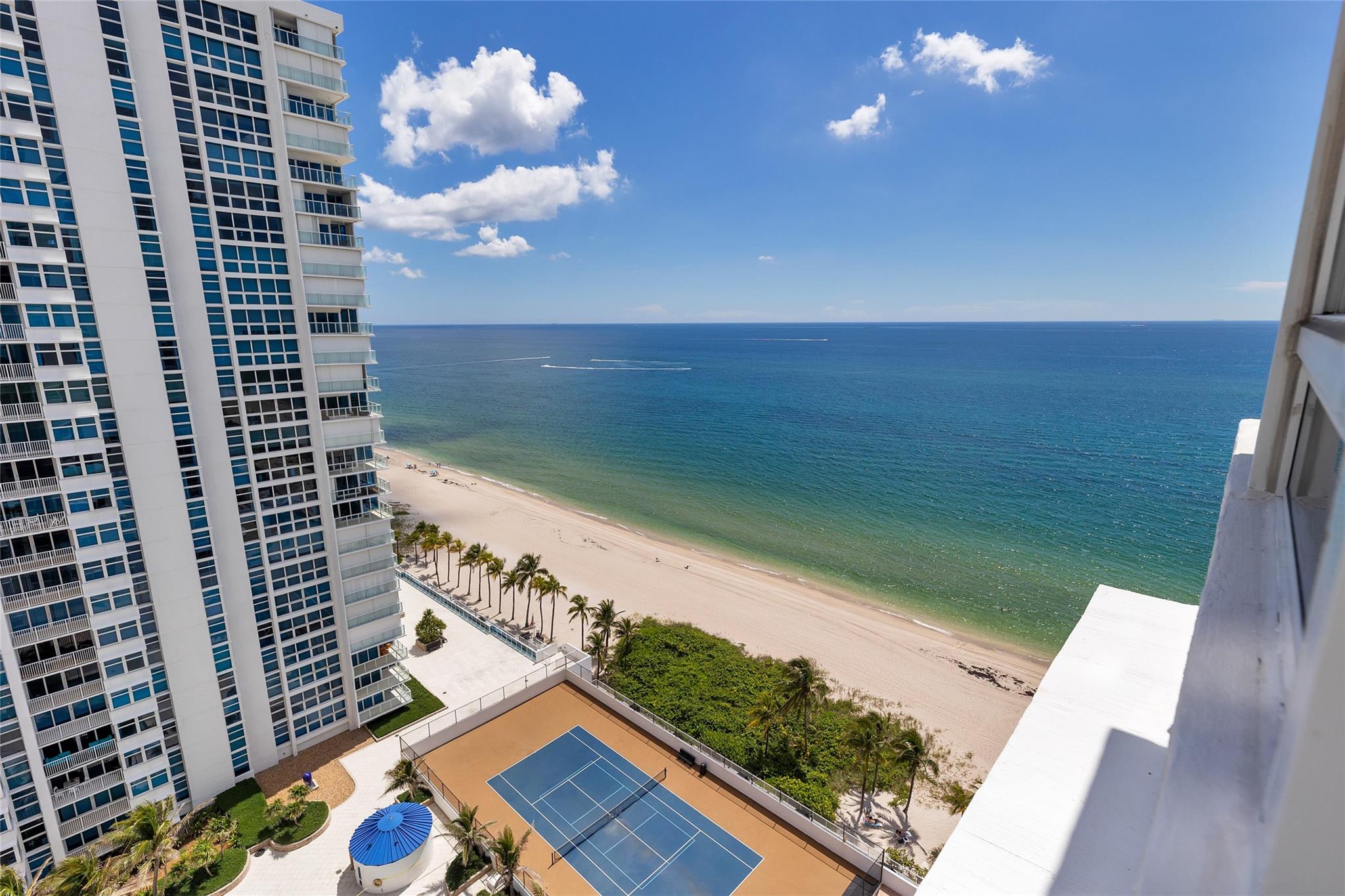 Nestled between Ritz-Carlton & Waldorf Astoria residences, this beachfront condo epitomizes luxury living. Floor-to-ceiling impact glass windows and doors frame breathtaking Ocean & Intracoastal views, creating a serene atmosphere throughout. Recent upgrades include newer refrigerator, in-unit washer/dryer, updated kitchen appliances, water heater & AC. Security is paramount w/ 24-hour guards & gated access, providing residents peace of mind. Enjoy unparalleled amenities such as a heated pool, spa, sauna & tennis/pickleball court for recreation. Beachfront BBQ deck is perfect for outdoor gatherings, while garage parking for 2 cars, including 1 assigned spot, adds convenience. Sky lounge offers panoramic views of the coastline & city skyline, making it ideal for relaxation or entertainment.