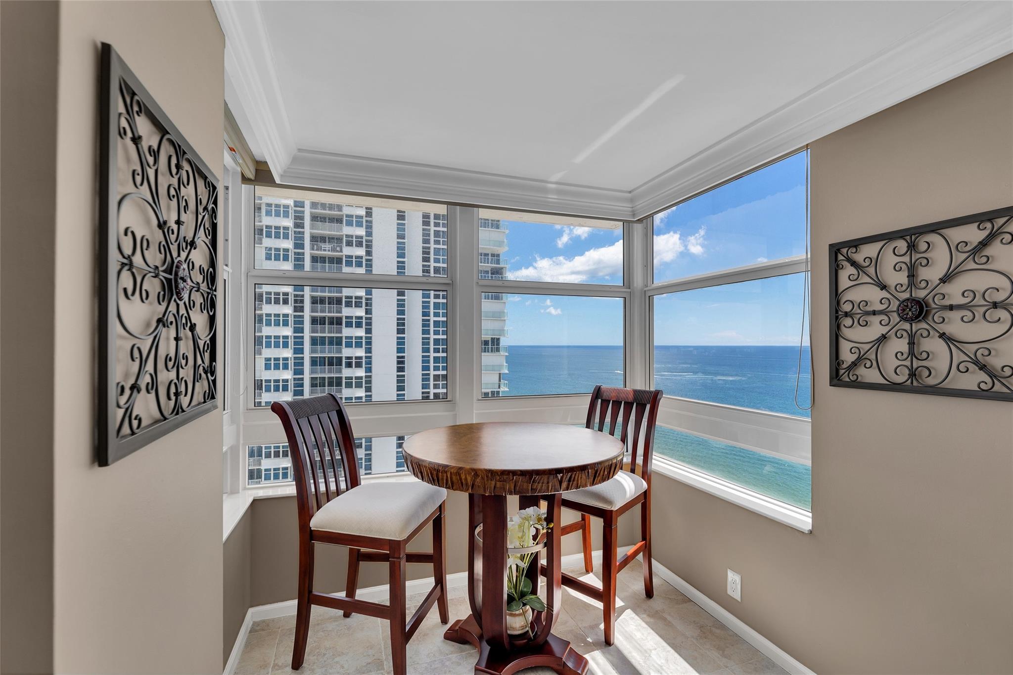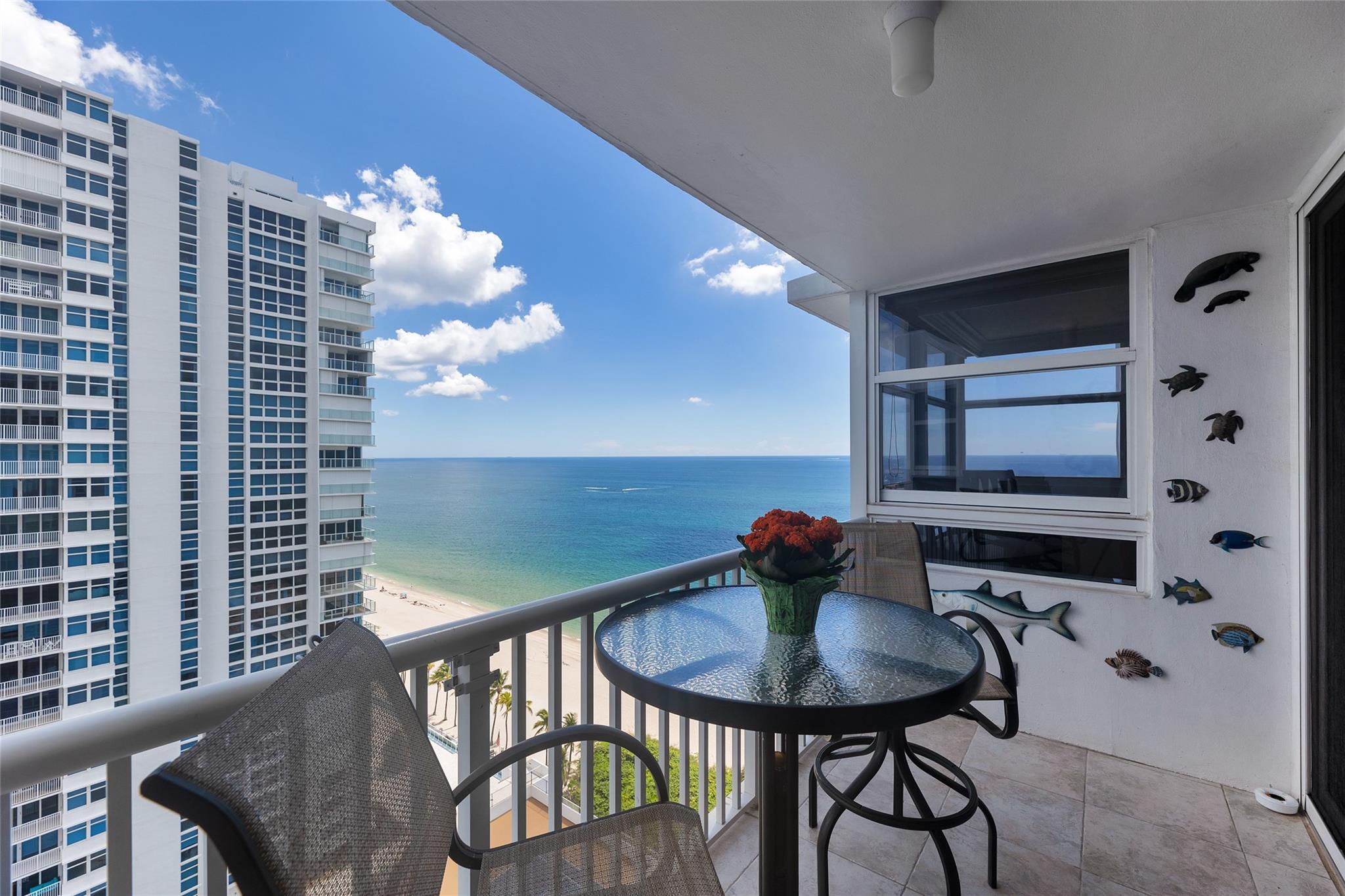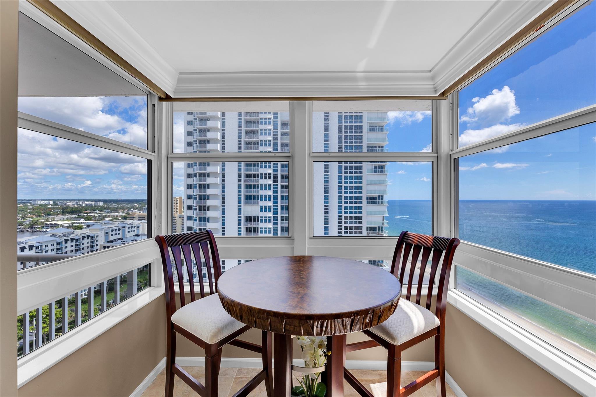 Nestled between Ritz-Carlton & Waldorf Astoria residences, this beachfront condo epitomizes luxury living. Floor-to-ceiling impact glass windows and doors frame breathtaking Ocean & Intracoastal views, creating a serene atmosphere throughout. Recent upgrades include newer refrigerator, in-unit washer/dryer, updated kitchen appliances, water heater & AC. Security is paramount w/ 24-hour guards & gated access, providing residents peace of mind. Enjoy unparalleled amenities such as a heated pool, spa, sauna & tennis/pickleball court for recreation. Beachfront BBQ deck is perfect for outdoor gatherings, while garage parking for 2 cars, including 1 assigned spot, adds convenience. Sky lounge offers panoramic views of the coastline & city skyline, making it ideal for relaxation or entertainment.