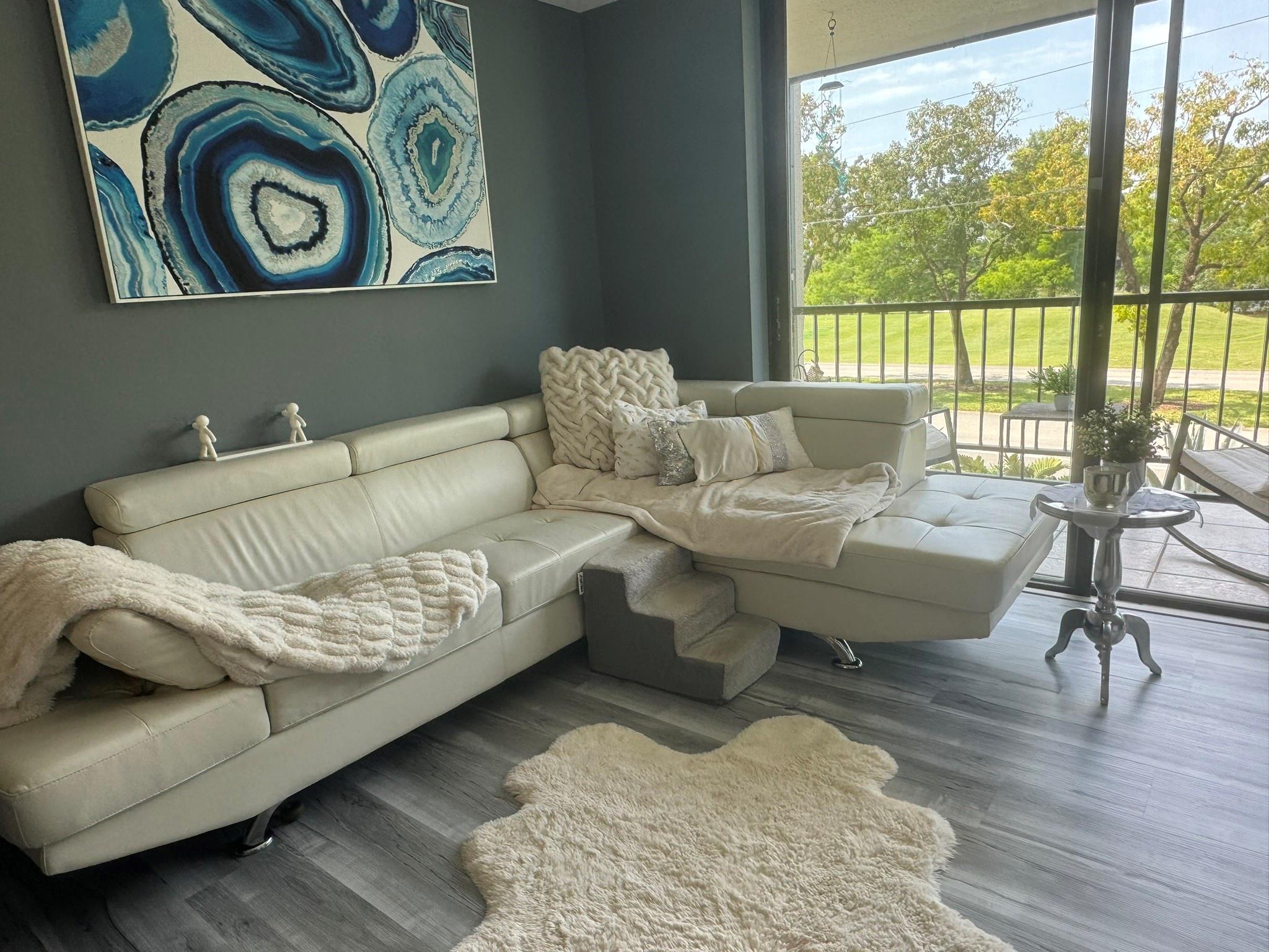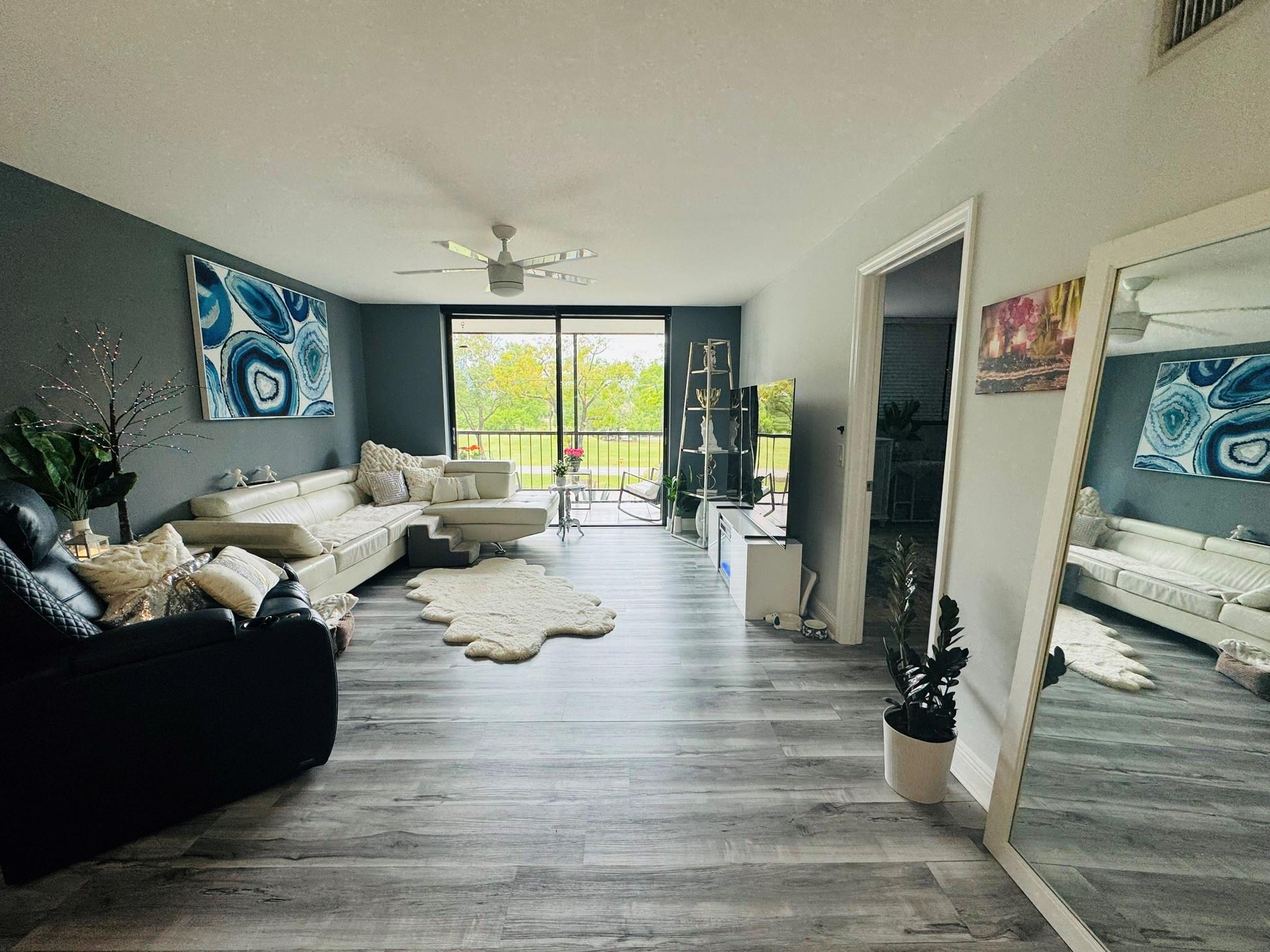 MOTIVATED SELLER! Spectacularly updated 2 bedroom 2 bath. One of a kind. Washer and dryer inside the unit, golf view, and a lot of light coming in. Contemporary style, finishes at their finest including kitchen with white cabinetry, stainless appliances and quartz counters. Elegantly styled baths. New windows, new shutters, remote controlled blinds in living room. Pets are allowed only as service animals. ESA welcome. Large walk-in closets + extra storage. Renovated gym, pool, tennis, shuffleboard, putting cage and Bocci court. On the grounds of Deer Creek Golf Club with its reasonable annual greens fees or daily rates and public clubhouse. (No Membership Required To Purchase). Association requires minimum 20% down.
