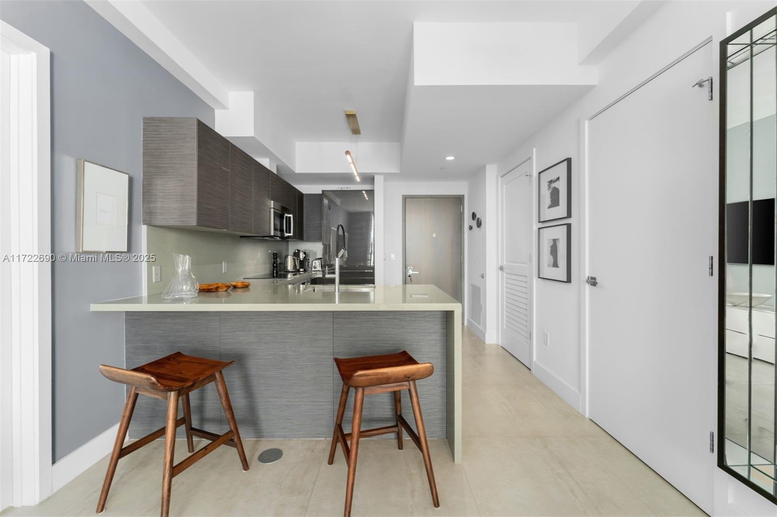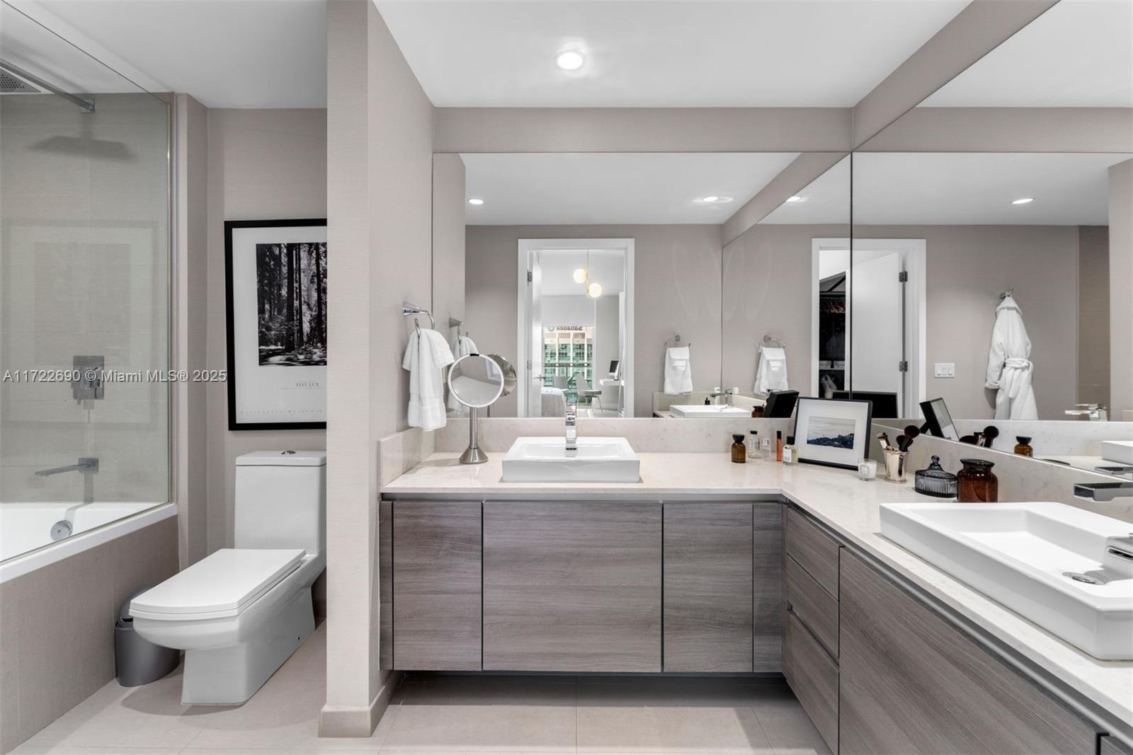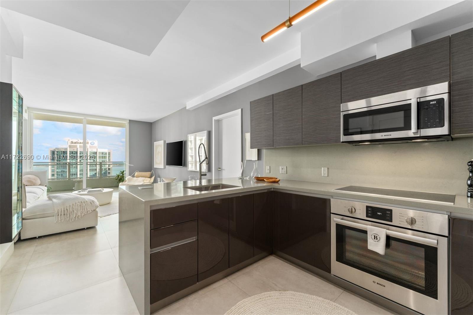 Located in the heart of Brickell, this contemporary 1-bedroom, 1.5-bathroom condominium at the luxurious Bond is a must-see. Residence 3404 includes expansive views of Biscayne Bay along with floor-to-ceiling windows, and has been meticulously upgraded to include an oversized walk-in closet, custom lighting, porcelain flooring that extends on to the double-wide balcony and window treatments throughout. Kitchen features include a full suite of Bosch appliances, European style cabinetry and silestone countertops. The Bond boasts a Starbucks onsite, a fitness center, a spa with a sauna and steam room; an outdoor pool deck with cabanas and summer kitchens; a children's play room; and an executive business center. Unit can be purchased furnished with designer collections for additional cost.