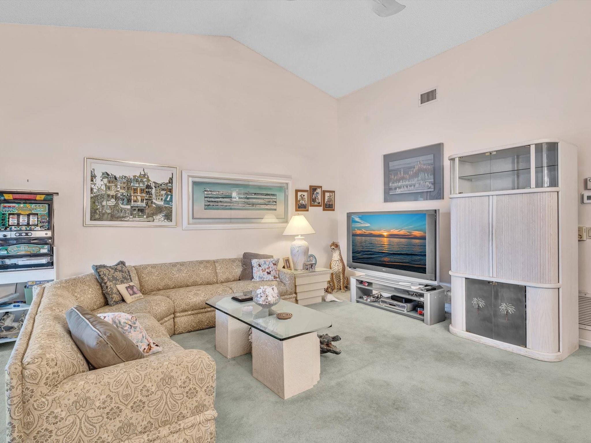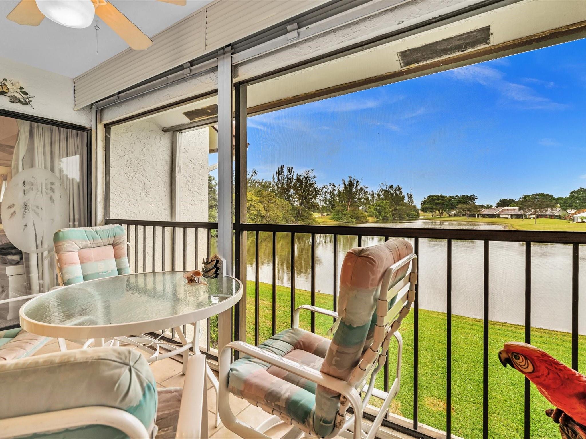Serene 2nd Floor, Lakefront 2/2 w/vaulted ceilings & a split bedroom layout. The eat-in kitchen leads to a stunning patio that offers picturesque views of the lake. Recent upgrades include a brand new roof installed in '23 and a new A/C and Water Heater 2024. Enjoy the convenience of Rolladen shutters on the patio for effortless protection. Situated in the immaculate Aberdeen neighborhood, this property comes without membership fees. The Non-Membership Coves @ Aberdeen (55+) where residents can take advantage of an active lifestyle with amenities such as:clubhouse, card room, fitness center, resort-style pool, tennis& pickleball courts. In the heart of West Boynton Beach close to fine dining, places of worship, public golf courses. Seize this opportunity before it slips away.