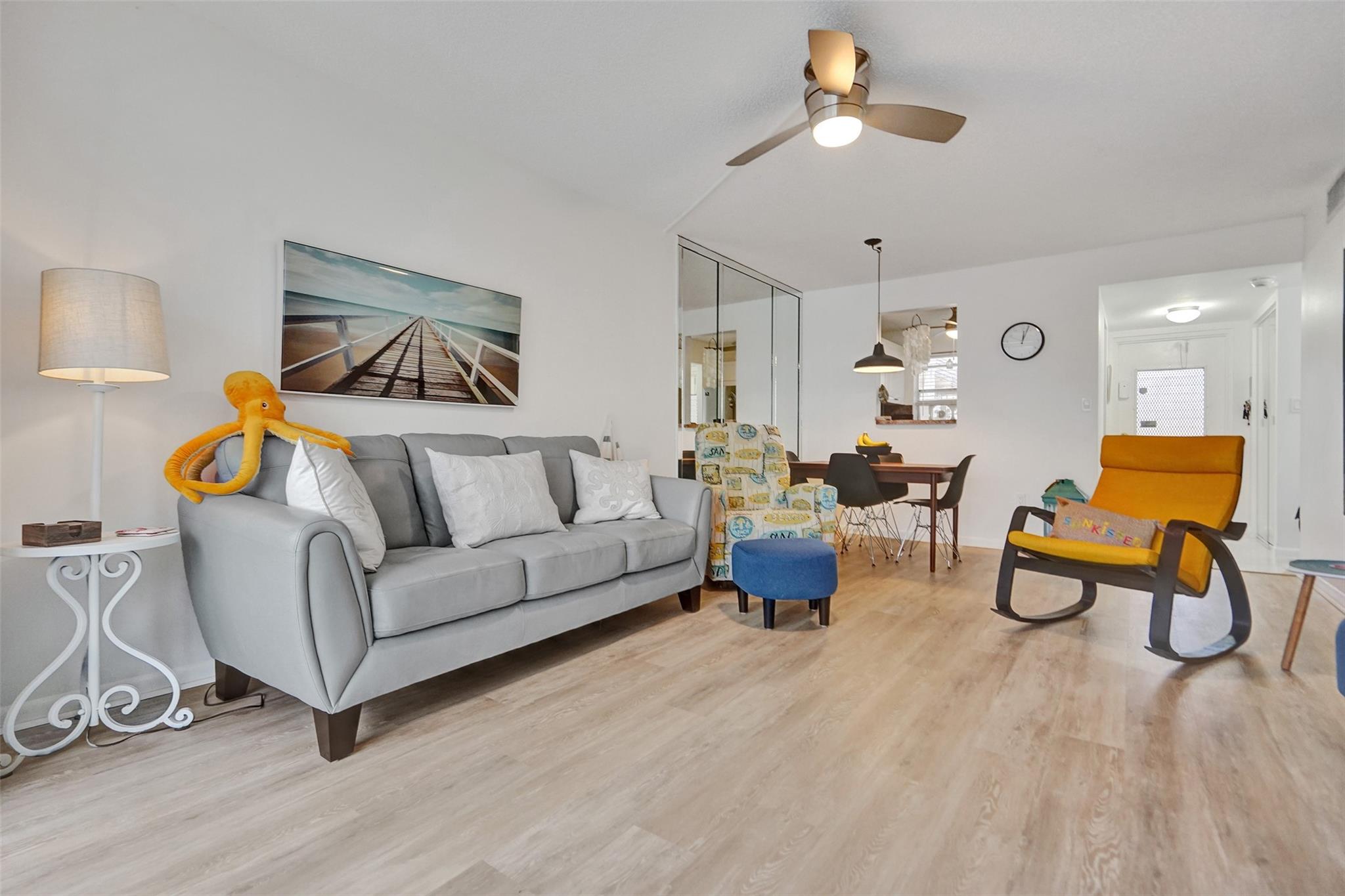 Discover your dream home in Sunrise Lakes. This beautifully updated unit features 1 bedroom and 1 bathroom, with stunning lake views. Highlights of this home include an updated kitchen and bathroom, stainless steel appliances, laminate and ceramic tile flooring, and an enclosed patio. Murphy bed on enclosed patio is the perfect place for guests. Internet and cable are included in the monthly fee. This unit comes fully furnished, making it move-in ready. See this incredibly well-kept unit with the best lake view in the community today.
