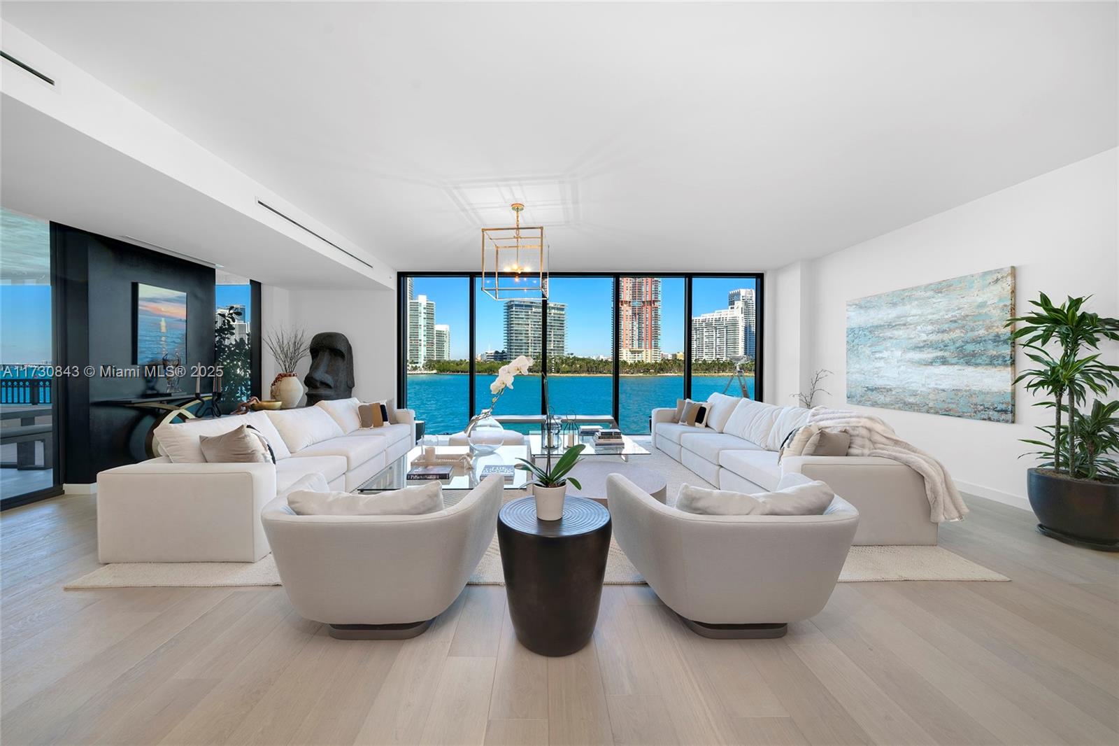 This stunning contemporary corner unit at the Palazzo Della Luna is offered furnished. Private elevator entry, featuring 4BR/4+1BA and 4,904 SF of luxury. Wide plank oak wood floors throughout, extended flow through family, dining & living room with access to a wraparound terrace made to entertain w/direct views to Biscayne Bay, Government Cut, Miami Beach & Ocean. Custom Boffi designed kitchen features granite countertops, top-of-the-line Miele & Sub-Zero appliances. Elegant principal suite surrounded by walls of glass w/direct water views, dual walk-in closets & beautiful bathroom w/Carrara marble rain shower & soaking tub. Three other bedrooms are each spacious w/en-suite bathrooms. The unit boasts one of the largest wraparound terraces & combined with a back terrace totals 2,417 SF.