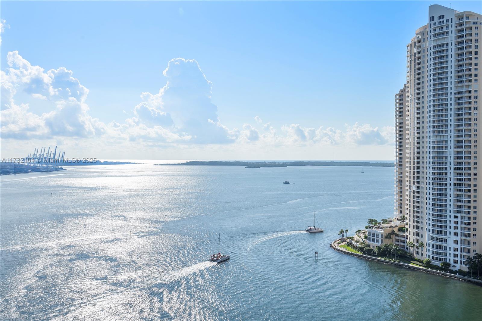 Spacious 2/2 with split floor plan and fabulous direct views of Miami River, Biscayne Bay, Port of Miami and Brickell Key. Unit features marble floor, new and completely remodeled open kitchen, stainless-steel appliances, granite countertops and backsplash. One assigned covered parking. Full amenities including 2 swimming pools, 2 gyms with premium equipment, jacuzzi, sauna, party room, conference room, business center, convenience store, 24/7 security and valet parking. Two restaurants downstairs. Walking distance to Arena, Performance Center, Museums, Brickell City Centre, Mary Brickell Village, Whole Foods and more. Minutes away from South Beach, Coral Gables, Key Biscayne, Coconut Grove, Miami Intl. Airport.