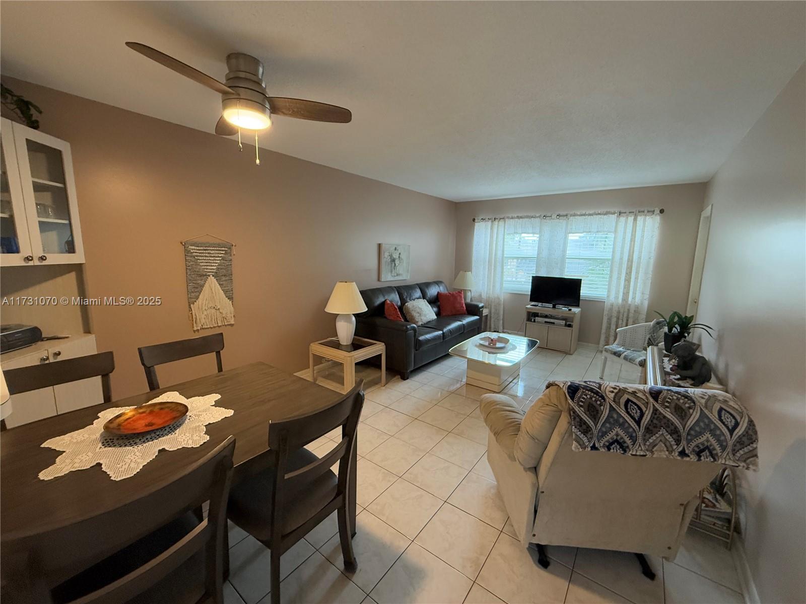 TURN-KEY FURNISHED 1 bed/ 1 bath condo located in the 55+ community of Lauderhill east. No carpet found throughout the unit, all tile. Hurricane impact windows except the ones in the bedroom/FL room. Bathroom has both access from the primary bedroom and the hallway for guests. Shower/bath combo and hurricane impact window. Lots of closet space and bedroom is very spacious! Living area leads to the Florida room that overlooks the pool area. Building has common laundry, elevator, locker and assigned parking. Community offers plenty of amenities such as clubhouse, pool, shuffleboard, guest parking, & much more! Rentals allowed after 1 year. No current special assessments