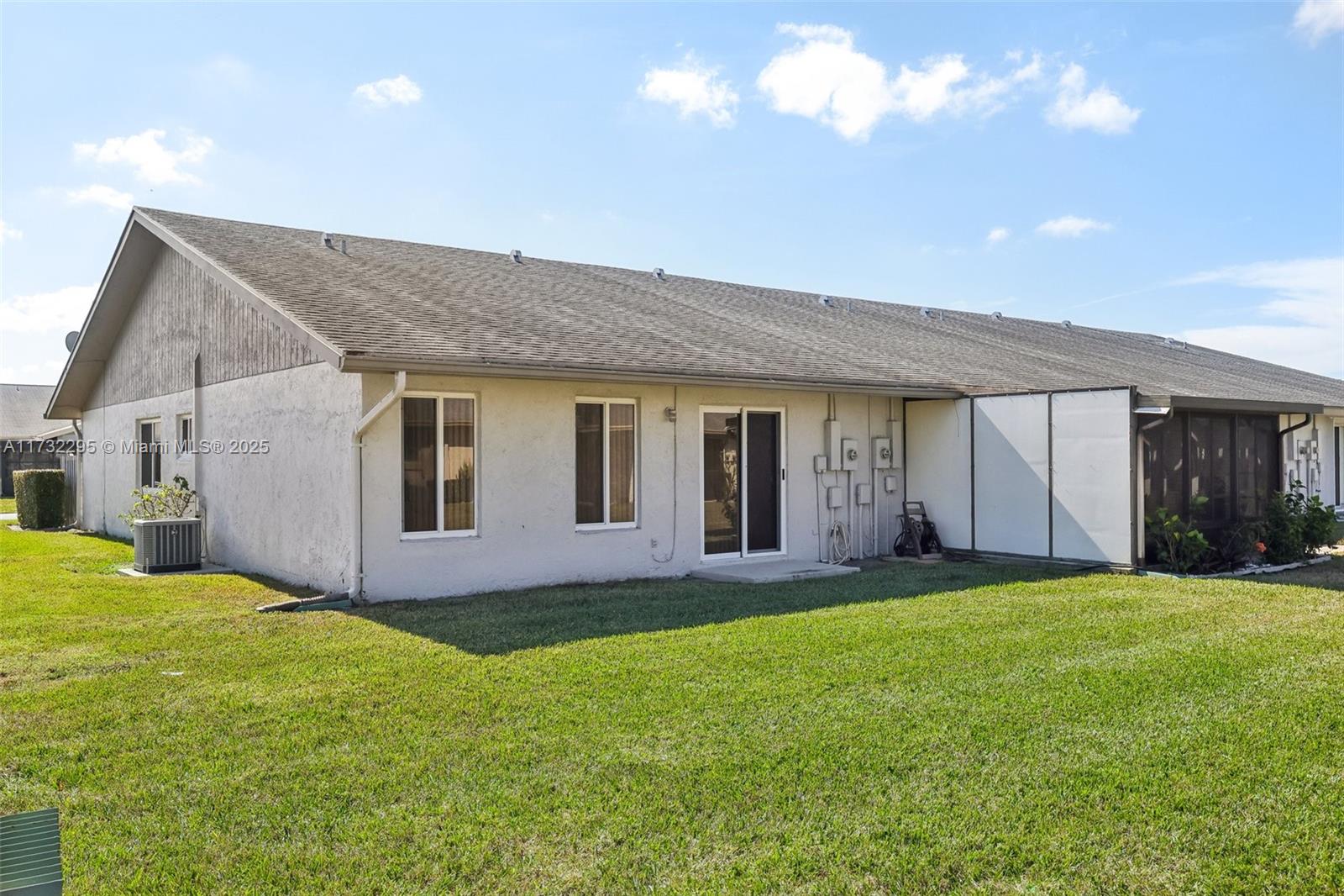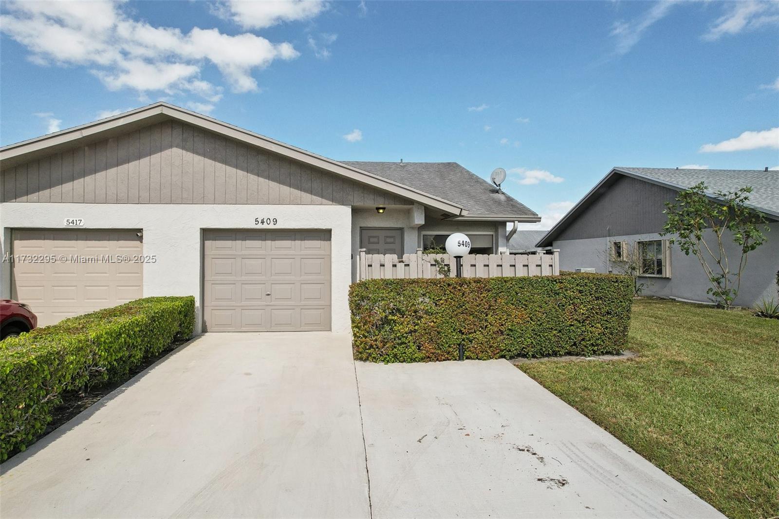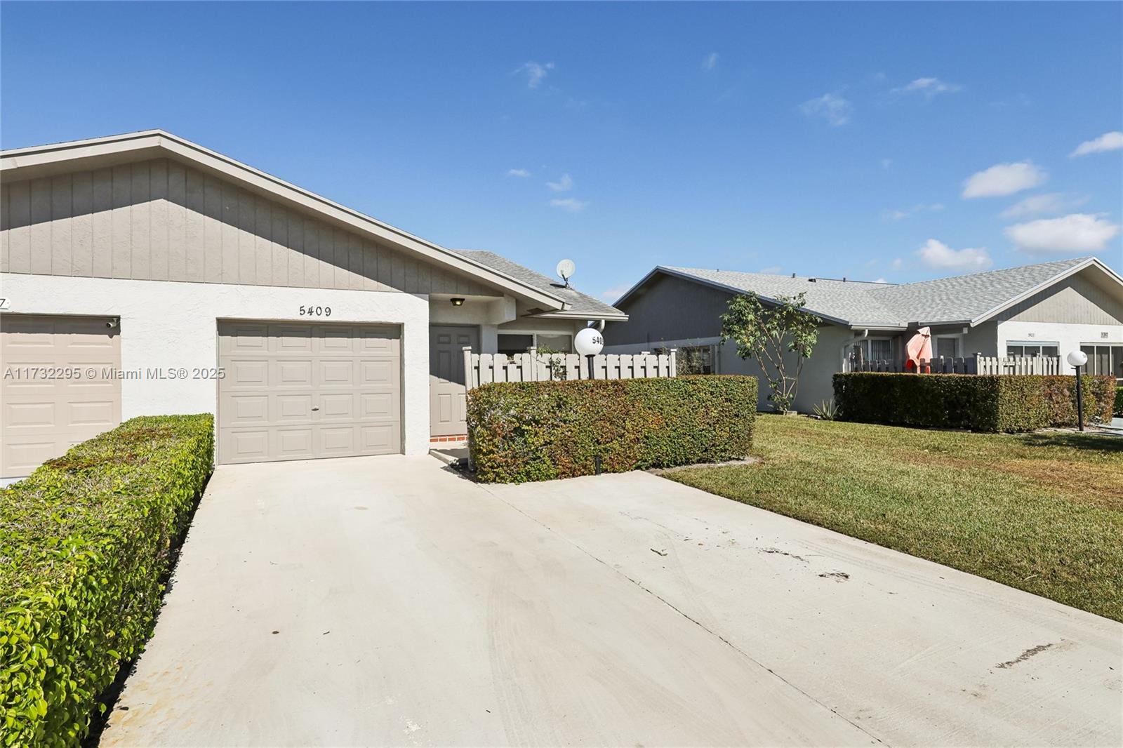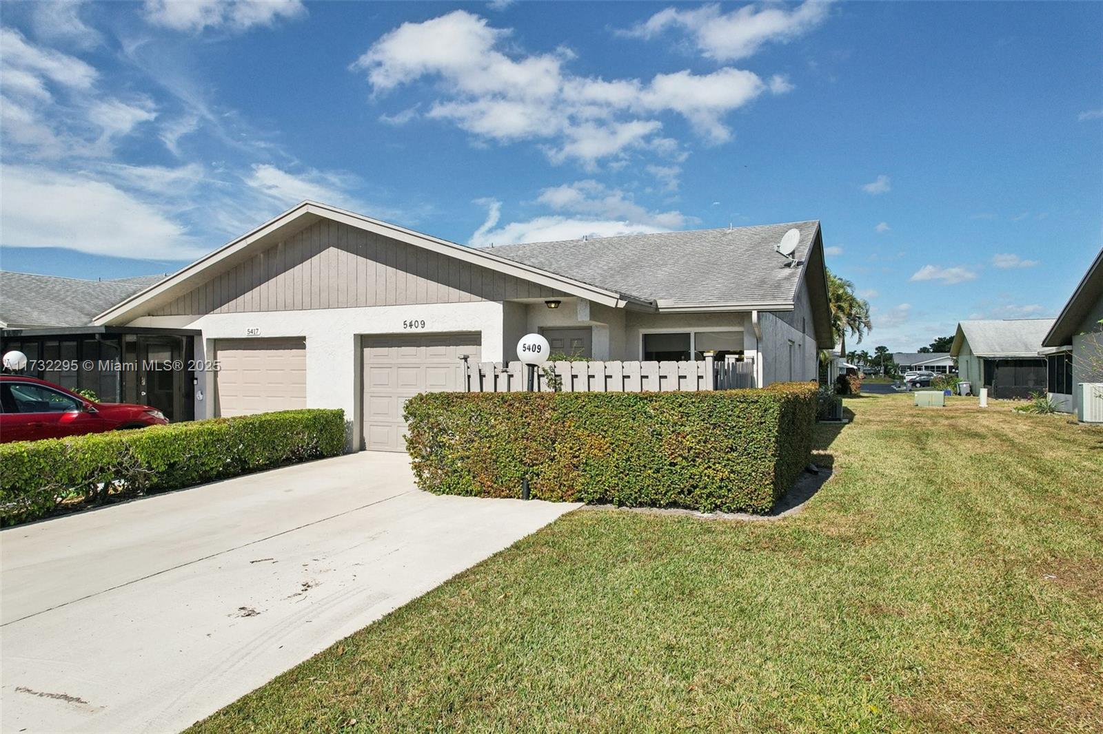This delightful 2-bedroom, 2-bathroom villa with a GARAGE is located in the desirable, gated, 55+ community of Cypress lakes. Offering a spacious, open-concept kitchen, living and dining area, this home is perfect for comfortable living. The renovated kitchen features updated cabinets, granite countertops, a stylish backsplash and stainless steel appliances. Natural light flows through the HURRICANE IMPACT WINDOWS and SLIDING DOOR, creating a bright atmosphere. Additional updates include a *2017 ROOF*, a newer air conditioner and water heater. Amenities include a 18-hole golf course, mini-golf, tennis, bocce, pool, gym, library, shuffleboard and more. Centrally located in WPB, you're just minutes from I-95, the Turnpike, beaches, restaurants, and the new Outlet Mall. Very low HOA!