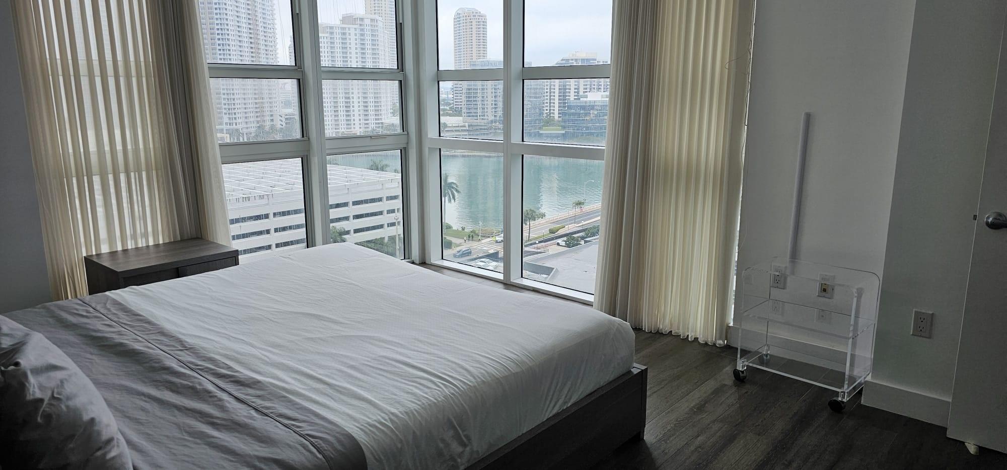 Best line in the building, furnished 2BR 2 1/2 BA, corner unit with floor to ceiling impact glass. Newer kitchen appliances, newer washer/dryer. Beautiful wood tile floors, view of Brickell Key and water. Wrap around balcony. Lots of amenities, beautiful pool deck, fully equipped gym, business center with conference rooms, club room, kids play area, and much more. Enter through an upscale lobby, a real gem. Great building location within walking distance of Brickell Key, Biscayne bay, restaurants and shops. One of the best buildings in Brickell. Can be sold with or without furniture.