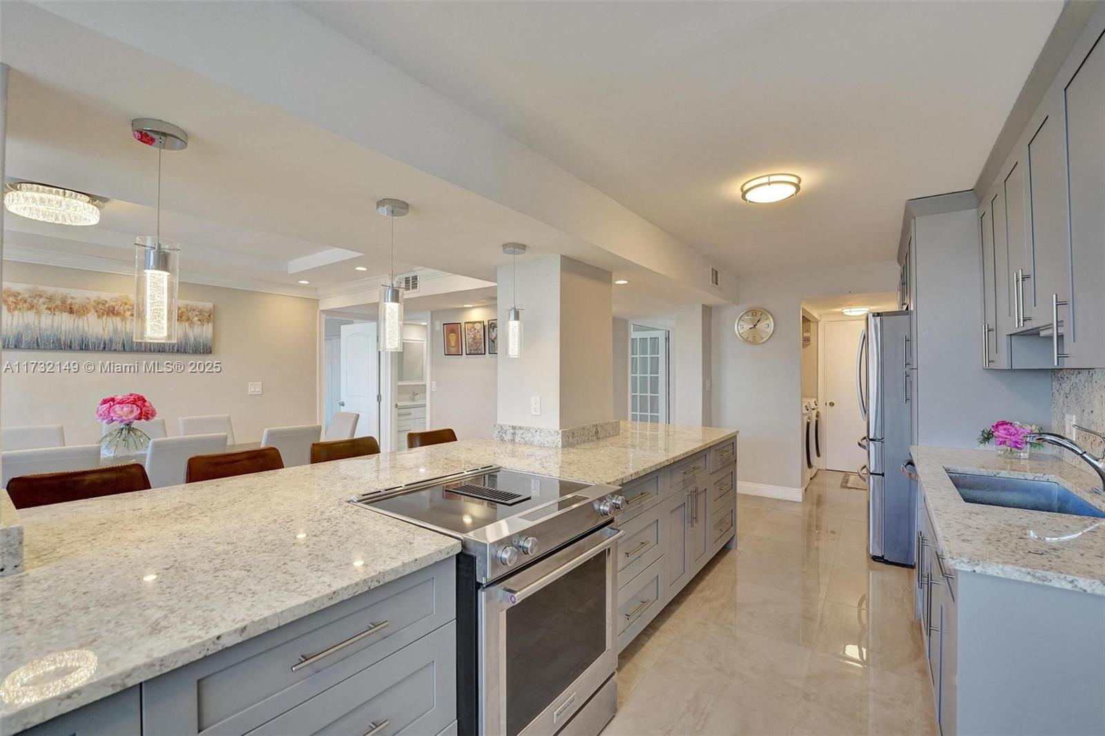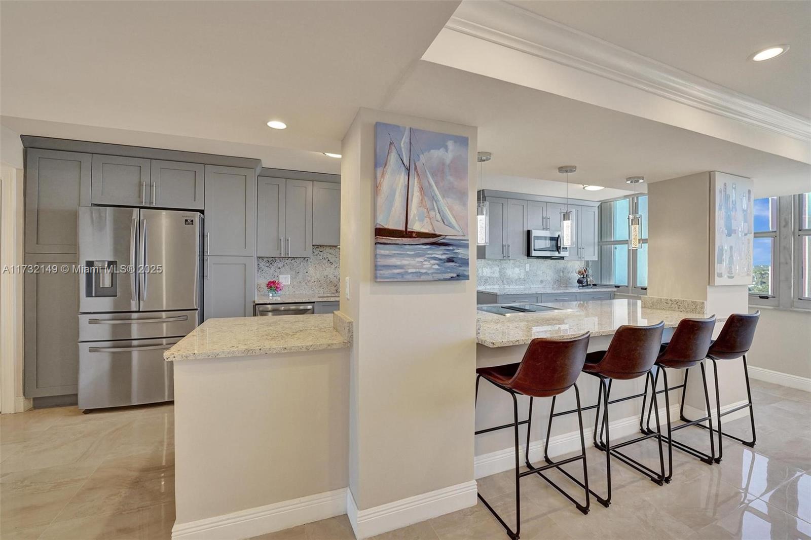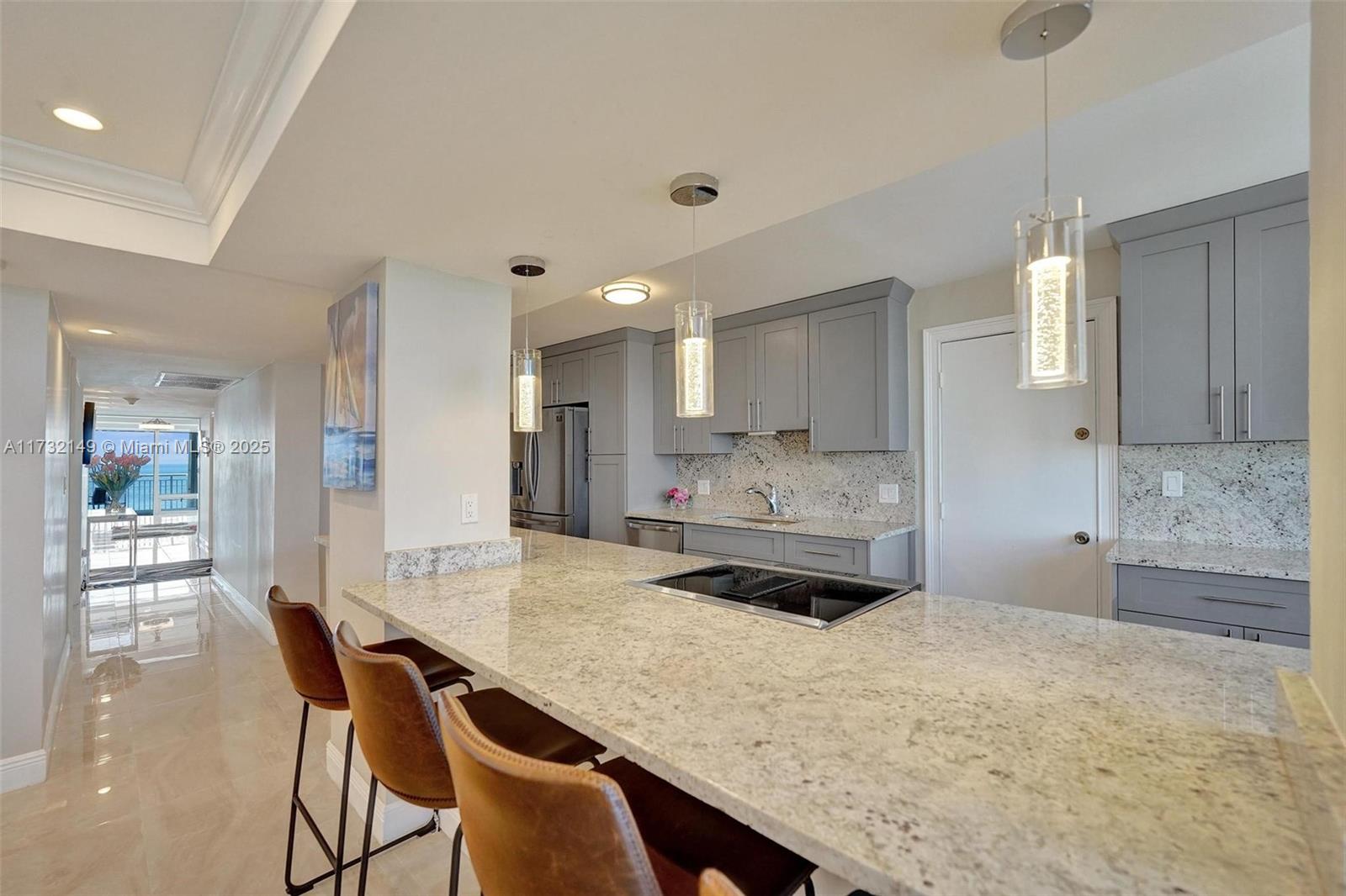 SPECTACULAR DIRECT OCEANFRONT, NE CORNER, TOTALLY REMODELED. LARGE BALCONY WITH AMAZING VIEWS FROM THE LIVING ROOM AND PRIMARY BEDROOM. 3 BEDROOM, 2.5 BATH. BALCONY OFF EACH BEDROOM. GORGEOUS SUNRISE, OCEAN AND COASTAL VIEWS. OPEN KITCHEN, FLOW THROUGH UNIT GIVING YOU THE SUNRISE AND SUNSET! SEMI-PRIVATE ELEVATOR. TILE THROUGHOUT, WINDOW BLINDS, BRIGHT AND SPACIOUS. HEATED OVERSIZED POOL, SAUNA, GYM, PARTY ROOM WITH KITCHEN, BILLIARD AND CARD ROOMS. 24 HOUR SECURITY/DOORMAN.2 GARAGE PARKING SPOTS, #49 & #56 AND STORAGE BIN #114. FURNITURE NEGOTIABLE. GREAT LOCATION/SHOPPING, DINING AND MORE.