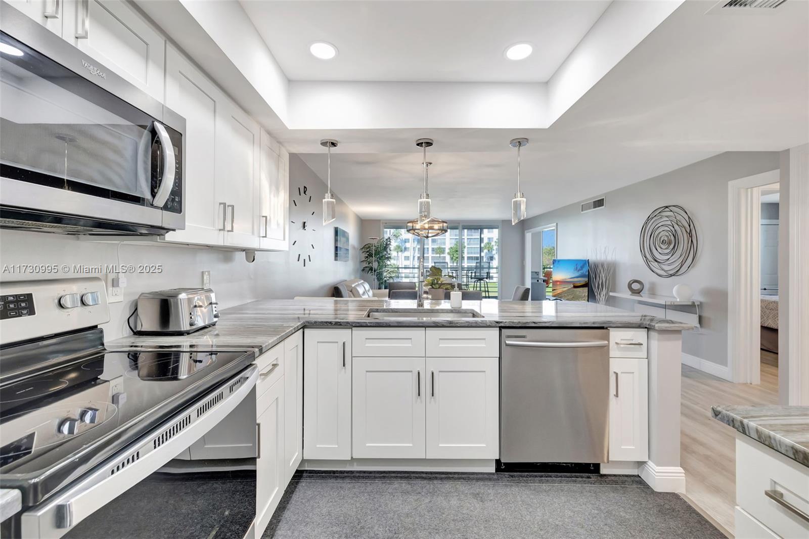 REDUCED PRICE TO SELL! TOP OF THE LINE ALL THE WAY! Fully remodeled 3-bedroom 2 bath 1390 feet corner unit. Spacious bright unit w/ lots of natural light. Open modern kitchen all-new stainless steel appliances, white cabinet pull out drawers w/ lots of storage. granite countertops. New ceiling w/ recess lighting. Updated bathrooms. Spacious master bedroom w/ large Walkin closet. ALL IMPACT WINDOWS & DOORS. New waterproof flooring. Washer & Dryer in unit. Enjoy breathtaking golf course views from your private screened patio. Building located steps to the pool. Very well managed condo association with reserve funds, 40 y inspection done, building exterior freshly painted. HOA Fees including speed internet & cable. Palm Aire CC offers tennis, pickleball, walking/biking trails .