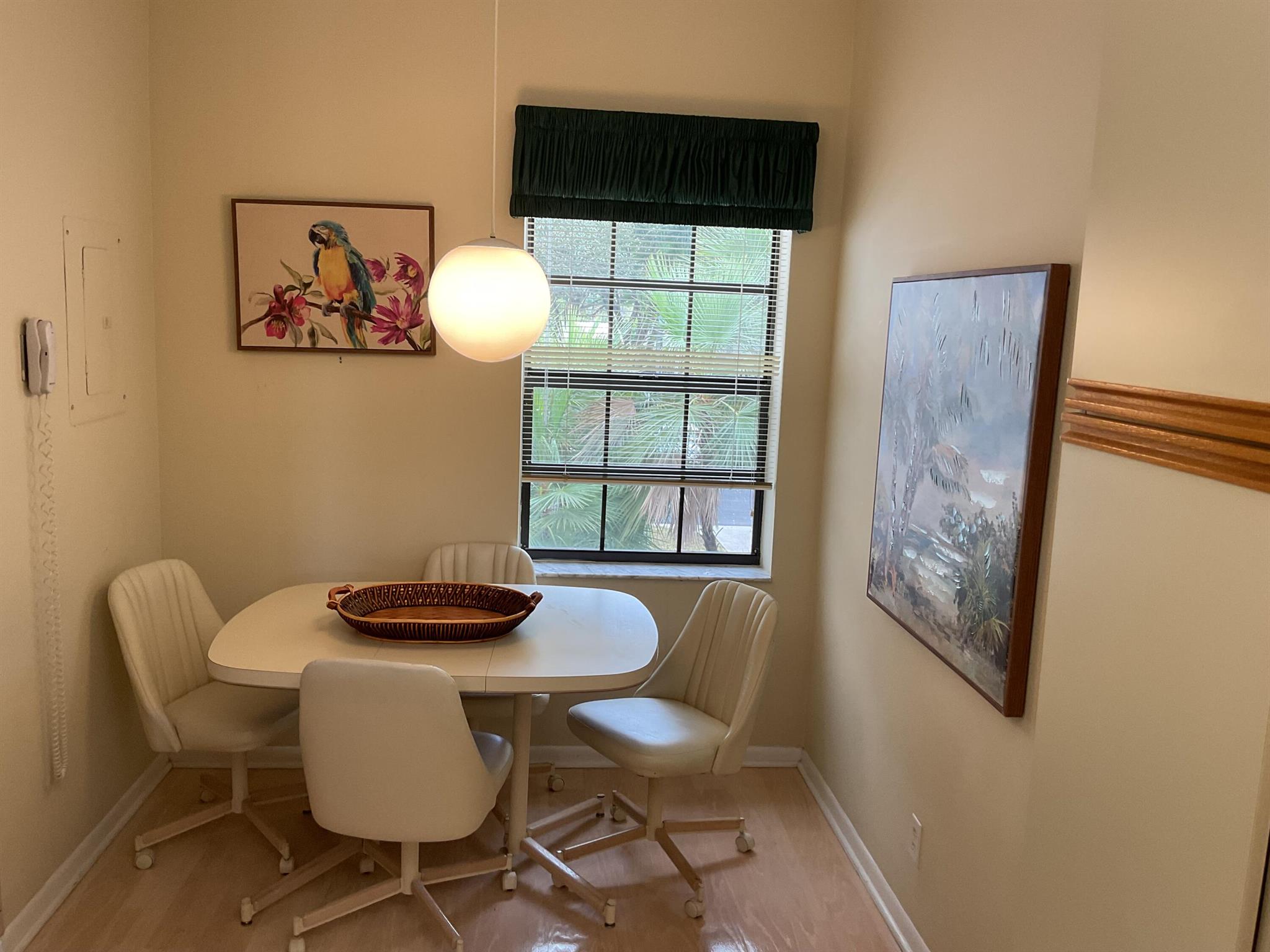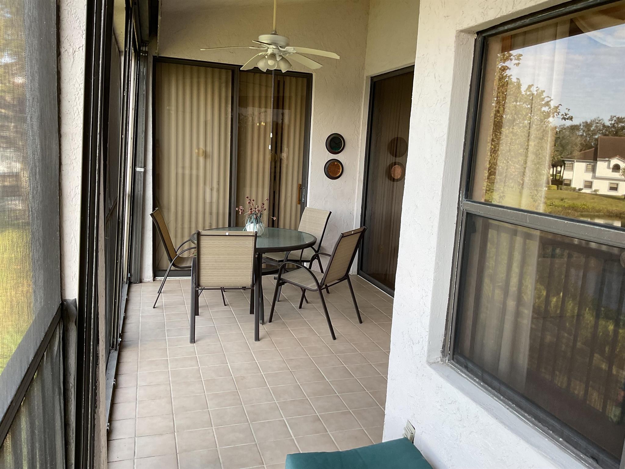 Neutral palate waiting for your designer touches. Look at the size of the living and dining area which afford a gorgeous view of the lake! Easy care laminate flooring throughout the living areas. Southeast exposure so the unit is light and bright. This is an affordable property in a community that offers an abundance of amenities and activities which include a resort style pool and a satellite pool, a clubhouse with a cafe, bocce ball, tennis, a fitness center, a theater, a card & game center, pickleball and so much more! There are more than 20 clubs to keep you entertained. This community is located close to highways, shopping and restaurants so you get a lot of bang for your buck with this purchase come look quick before this one is gone!