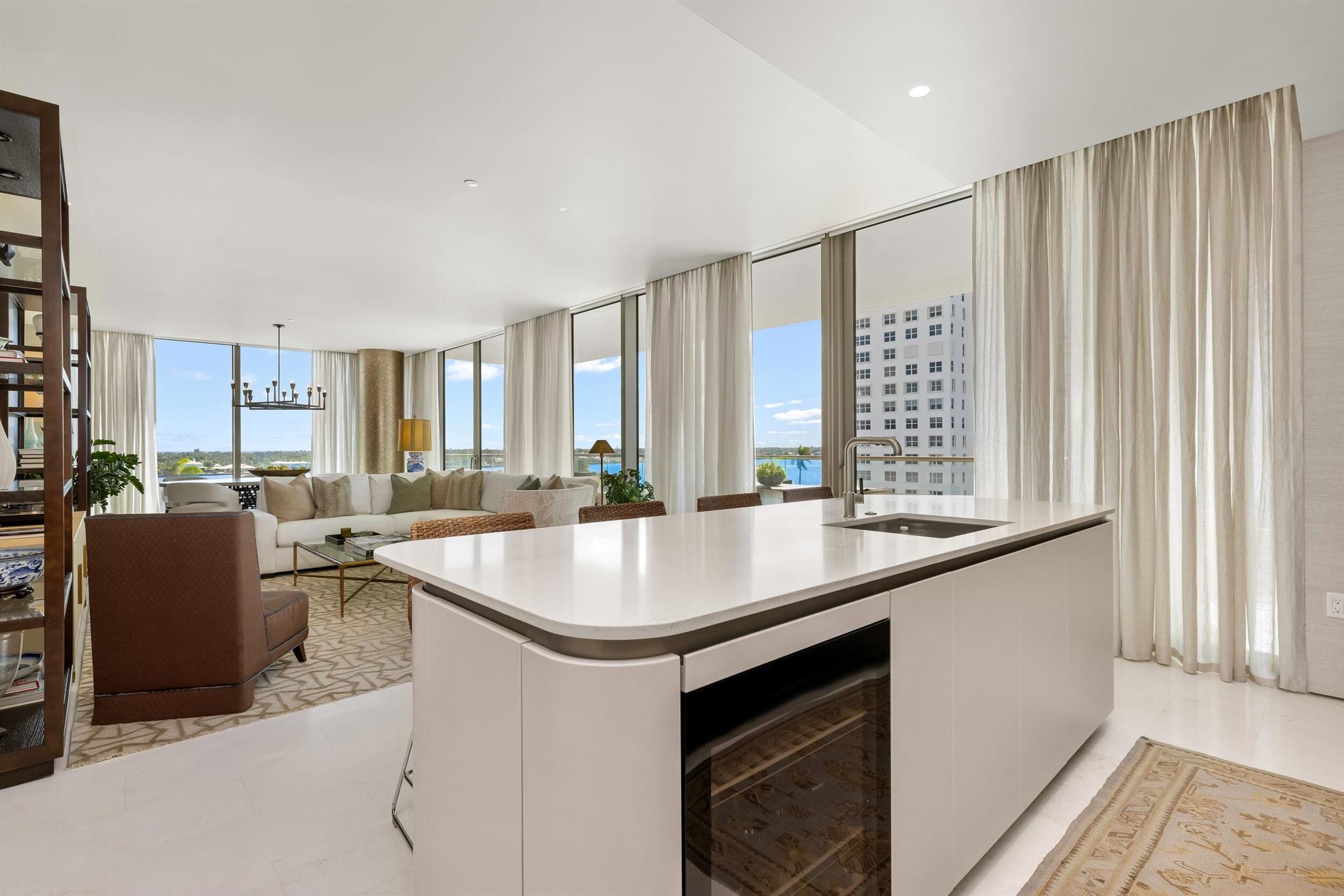 Gorgeous custom waterfront condominium with beautiful designer finishes throughout. This 2BR/2.1BA plus den unit features high ceilings and stunning views of the Intracoastal and Palm Beach. Sunny and bright southeast exposure with panoramic water views. Fantastic oversized balcony is perfect for entertaining. Gourmet kitchen with Miele appliances, wine fridge, and chef's island with breakfast bar. Waterfront primary suite features dual walk-in closets. Guest suite with en-suite bath and walk-in closet opens to balcony. Built in 2023, the La Clara is a full-service building in the heart of downtown West Palm Beach. Featuring top-of-the-line amenities including resort-style pool, 24/7 valet, concierge, state-of-the-art fitness center, spas, saunas, business center, and so much more.