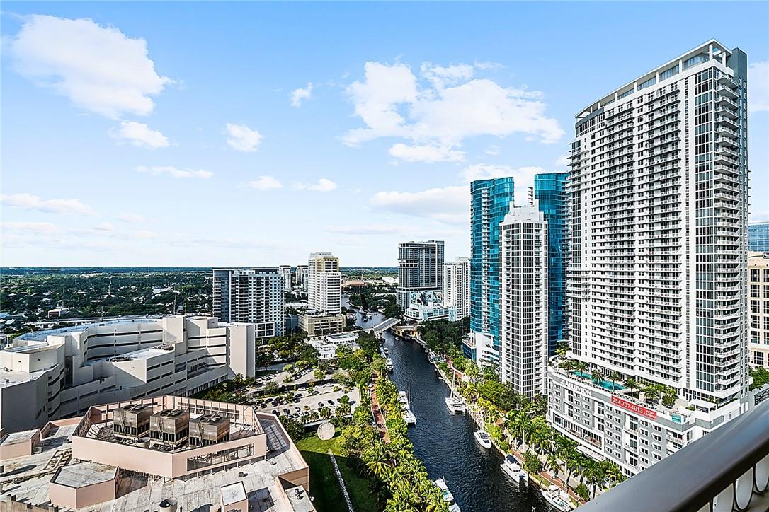 Welcome Home To This PENTHOUSE unit on the 25th Floor with RIVER VIEWS from Every Room! Unit Features: Rare 11' Ceilings, Stunning views of the river - Pool/Spa On 25th Floor. NuRiver Landing is Located along Riverwalk in Downtown Fort Lauderdale. Beautiful Open Kitchen with Stainless Steel Appliances (New Refrigerator), Neutral Tile Flooring Throughout Living Space & Carpet in Bedroom, Washer & Dryer in Unit, Private Balcony Overlooking River. Maintenance incl water, sewer, trash, parking, resort style amenities: 24 hr concierge, security, front desk, package room, rooftop pool, sky lounge, bbq grills, gym, basketball, racquetball, yoga studio, jacuzzi, steam rooms, saunas, massage room, bike/kayak racks, business center, meditation garden. Walk 5 min to Las Olas. Pet/Investor Friendly.