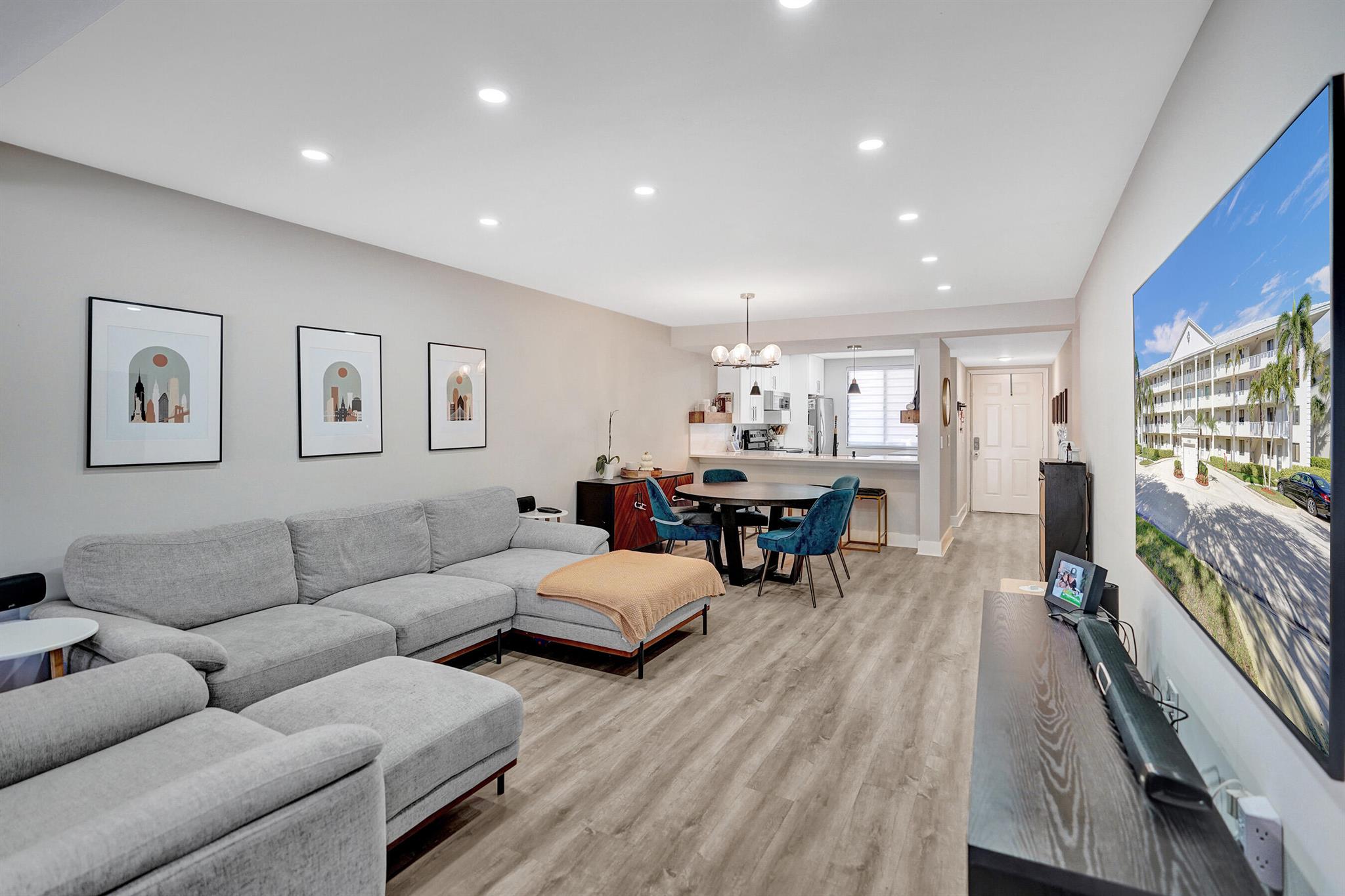 You don't want to miss this opportunity to own a fully remodeled corner unit with two balconies. This 2 bedroom 2 bath unit spans 1385 SqFt with a large open floor plan. The kitchen was recently updated with white shaker cabinetry, quarts countertops, stainless steel appliances modern hardware, and pendant lighting. Updated vinyl floors run throughout the entire living space and bedrooms. The primary suite features its own corner balcony, a walk-in closet and the bathroom was updated with a new modern vanity and LED mirror. The indoor laundry room includes lots of cabinetry a large bonus room that can be used for storage or office space. Whitehall is conveniently located in central boca, close to the town center mall, shopping, restaurants, and just a short distance to major highways.