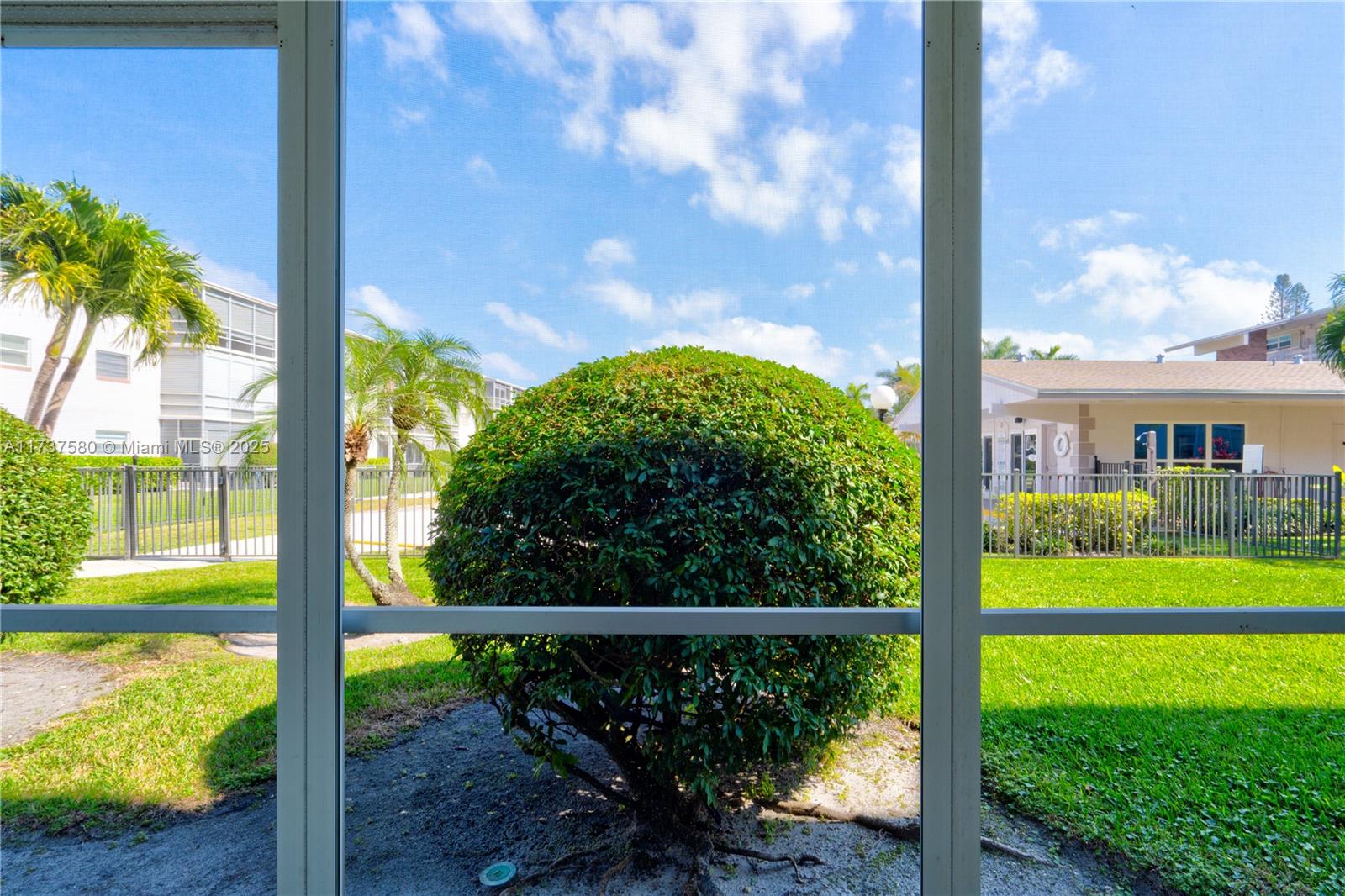 Spacious and bright 1BD/1BA first-floor unit in a prestigious gated community within a multi-million-dollar neighborhood. Ideally located just blocks from the beach, fine dining, shopping, and Gulfstream Park Racing & Casino. This well-appointed residence features a modern kitchen with quartz countertops, a stylish turquoise subway glass backsplash, a stainless steel sink with a grid insert, and stainless steel appliances. The generous bedroom offers ample space, while the updated bathroom boasts a sleek shower/tub combo with a glass door. Enjoy formal dining, a covered patio with retractable privacy shades, and direct pool access. Highlights include central AC, a tankless water heater, extra storage, and a nearby laundry facility. Approx. 720 sq. ft. with a private balcony and pool views.