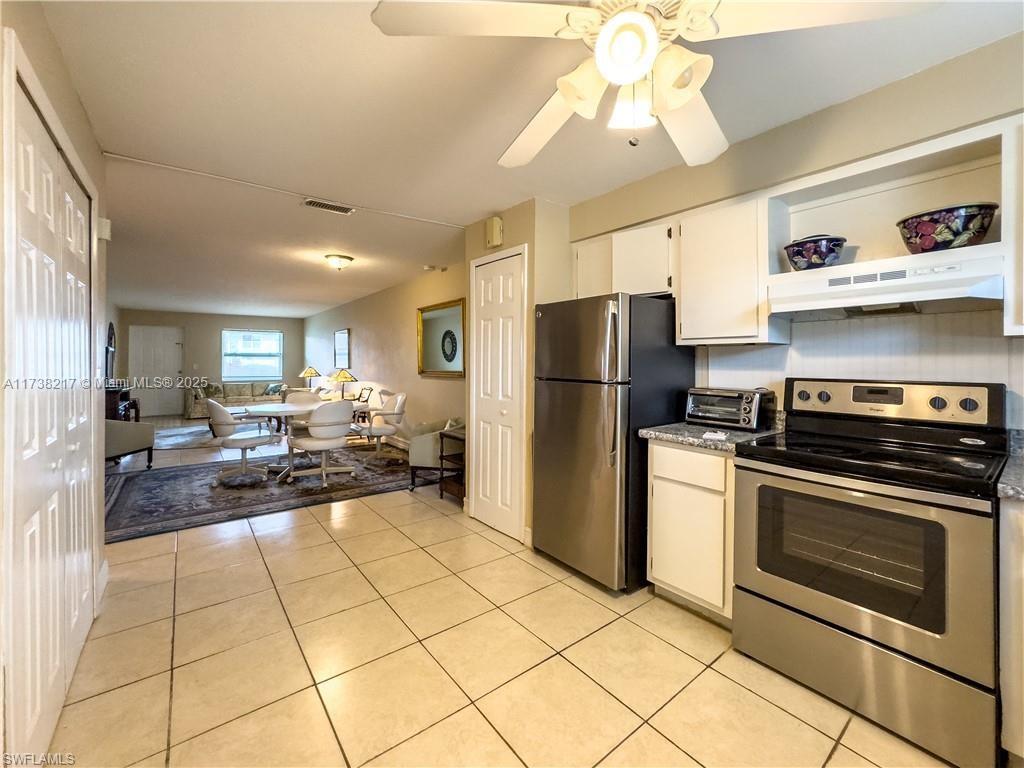 Resort-Style Living at an Incredible Value! Welcome to this beautifully furnished 1-bedroom, 1-bathroom corner unit in The Regency. This first-floor gem offers an open-concept layout perfect for modern living, with tile flooring throughout and an abundance of natural light. The well-equipped kitchen features stainless steel appliances and ample storage, including a convenient pantry. The spacious bedroom boasts 2 closets, while the living and dining areas flow seamlessly for easy entertaining. Recent updates include: New AC (2023), New water heater (2020), The Regency's resort-style amenities include: pool & spa, Large tiki hut, Shuffleboard courts, Exercise room, BBQ areas with outdoor patios. This move-in ready condo offers the perfect blend of convenience and resort-style living.