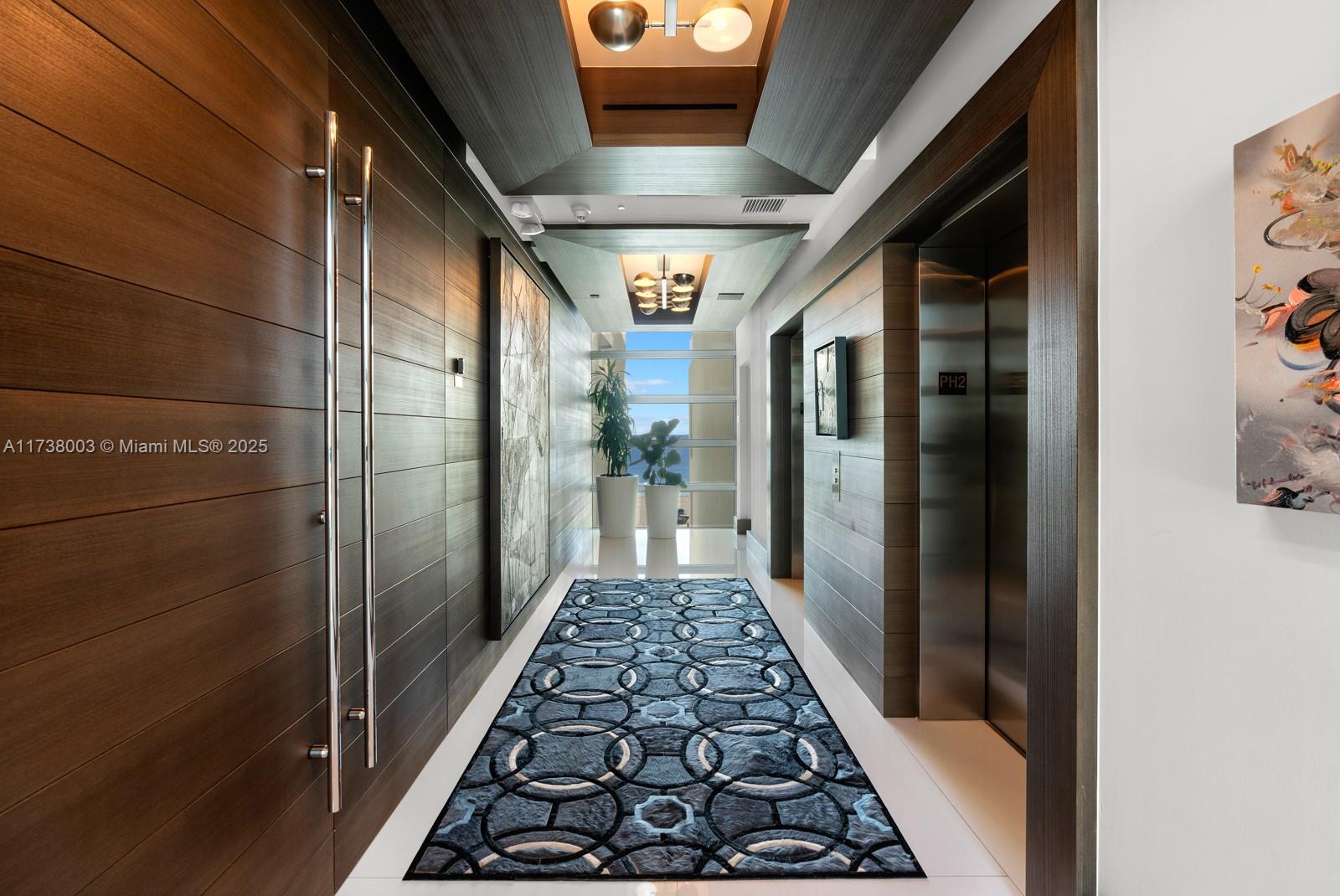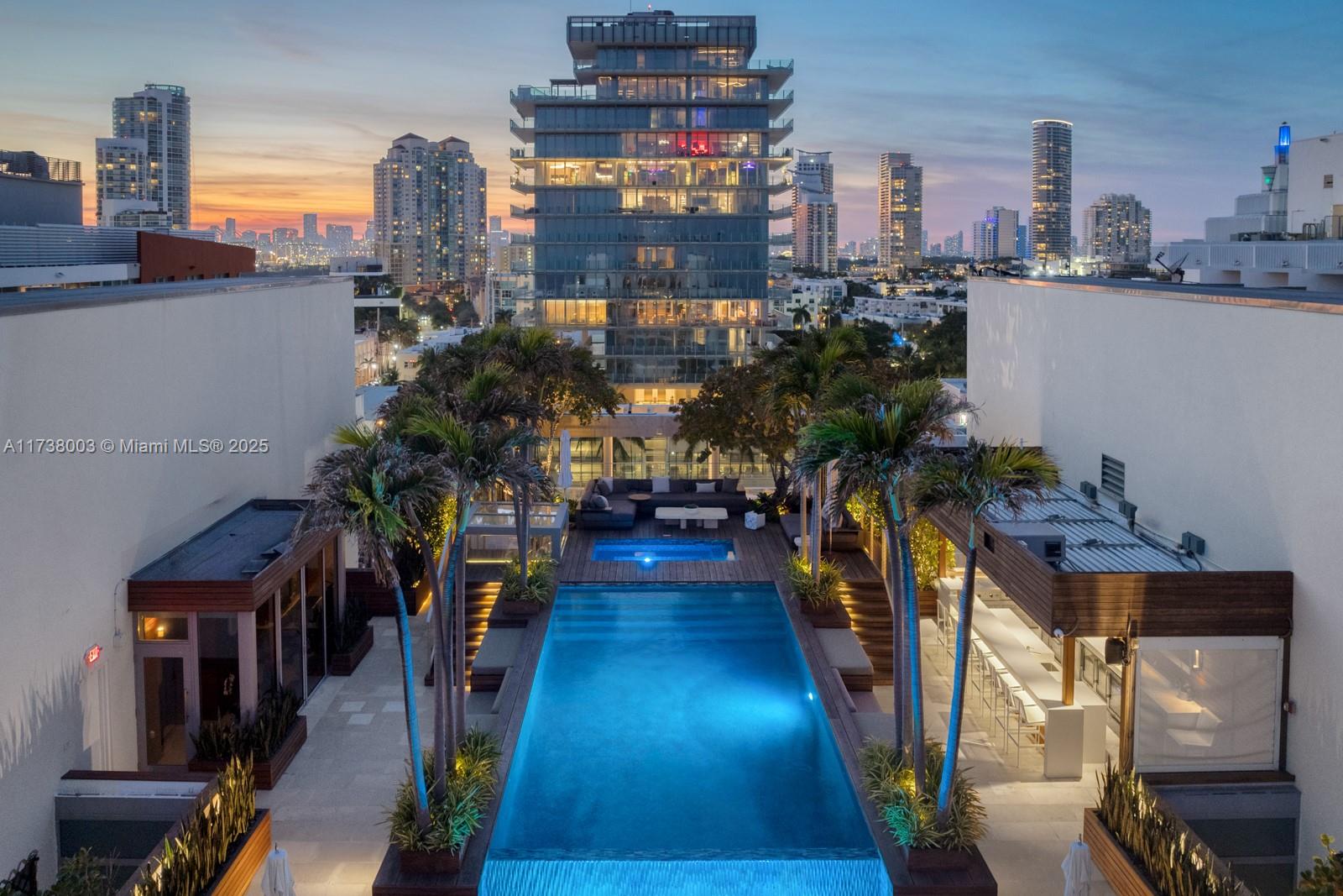 This full-floor penthouse at Ocean House spans 4,124 square feet interior and 4,452 SF of private exterior it features floor-to-ceiling glass, Italian porcelain floors & rich wood paneling. The open-concept living flows into a gourmet kitchen with Gaggenau appliances. Expansive balconies capture ocean and city views. A rare private rooftop spans the entire residence, offering a 15x30 negative-edge pool, spa, and Viking-equipped outdoor kitchen. A striking glass LED staircase connects this exclusive retreat, where 360-degree views of the Atlantic and Miami skyline create a stunning backdrop. Designed for both comfort and sophistication, the penthouse integrates a Savant smart home system. Ocean House, an exclusive boutique building in South-of-Fifth, ensures privacy with only 28 residences.