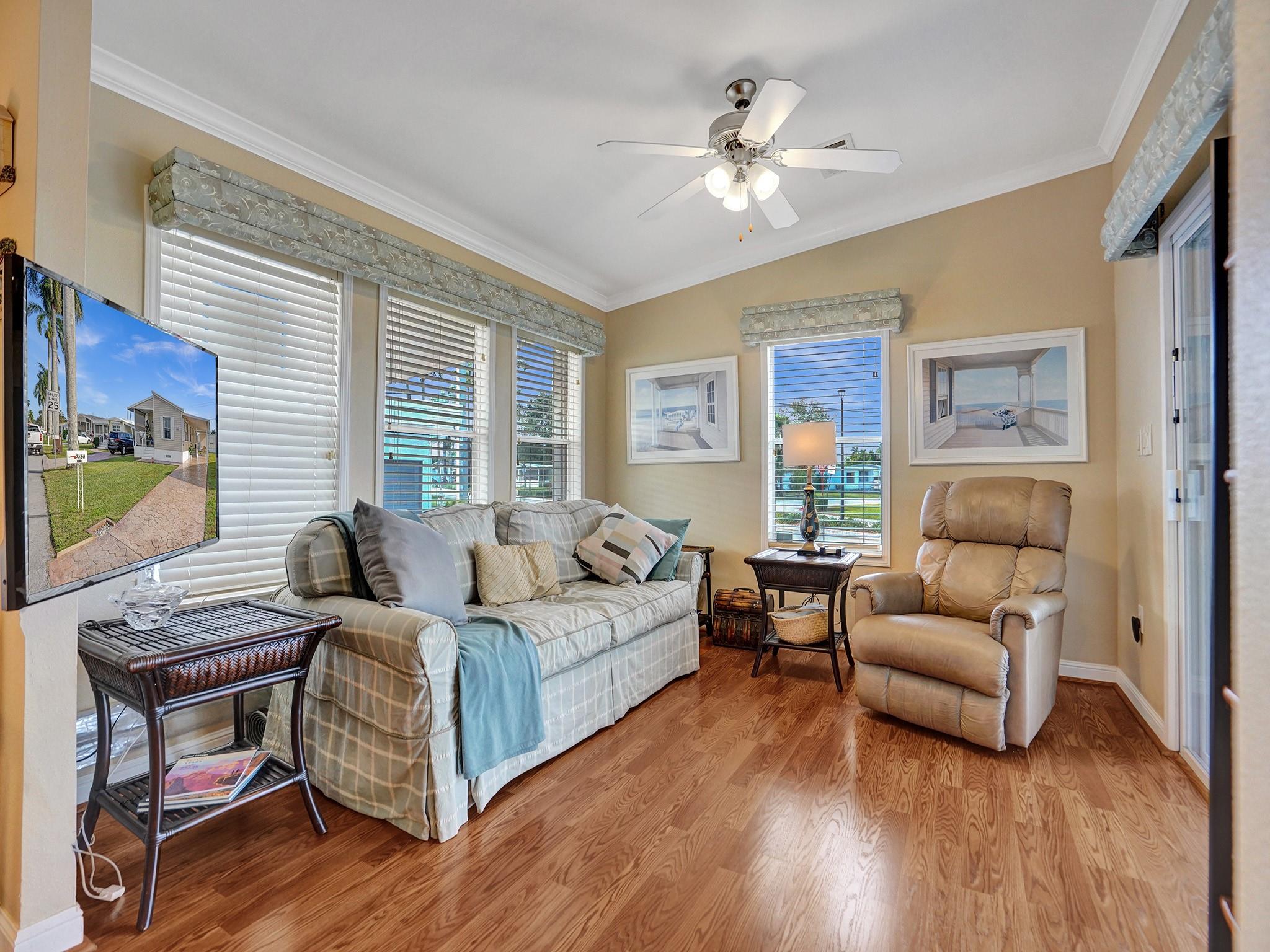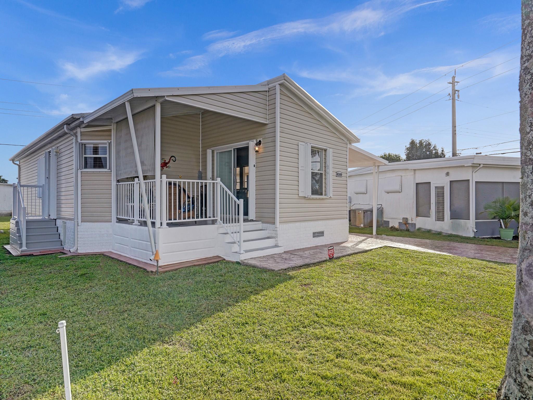 Absolutely beautiful double wide manufactured home in 55+ Park City Estates where YOU OWN THE LAND! Enjoy this lovely 2 bedroom 2 bathroom home with large carport and front porch to enjoy the Florida weather.
