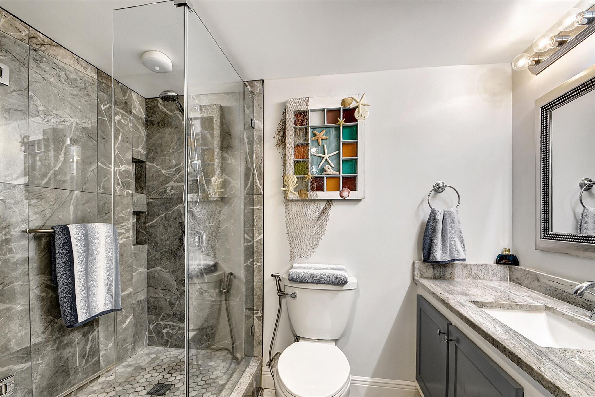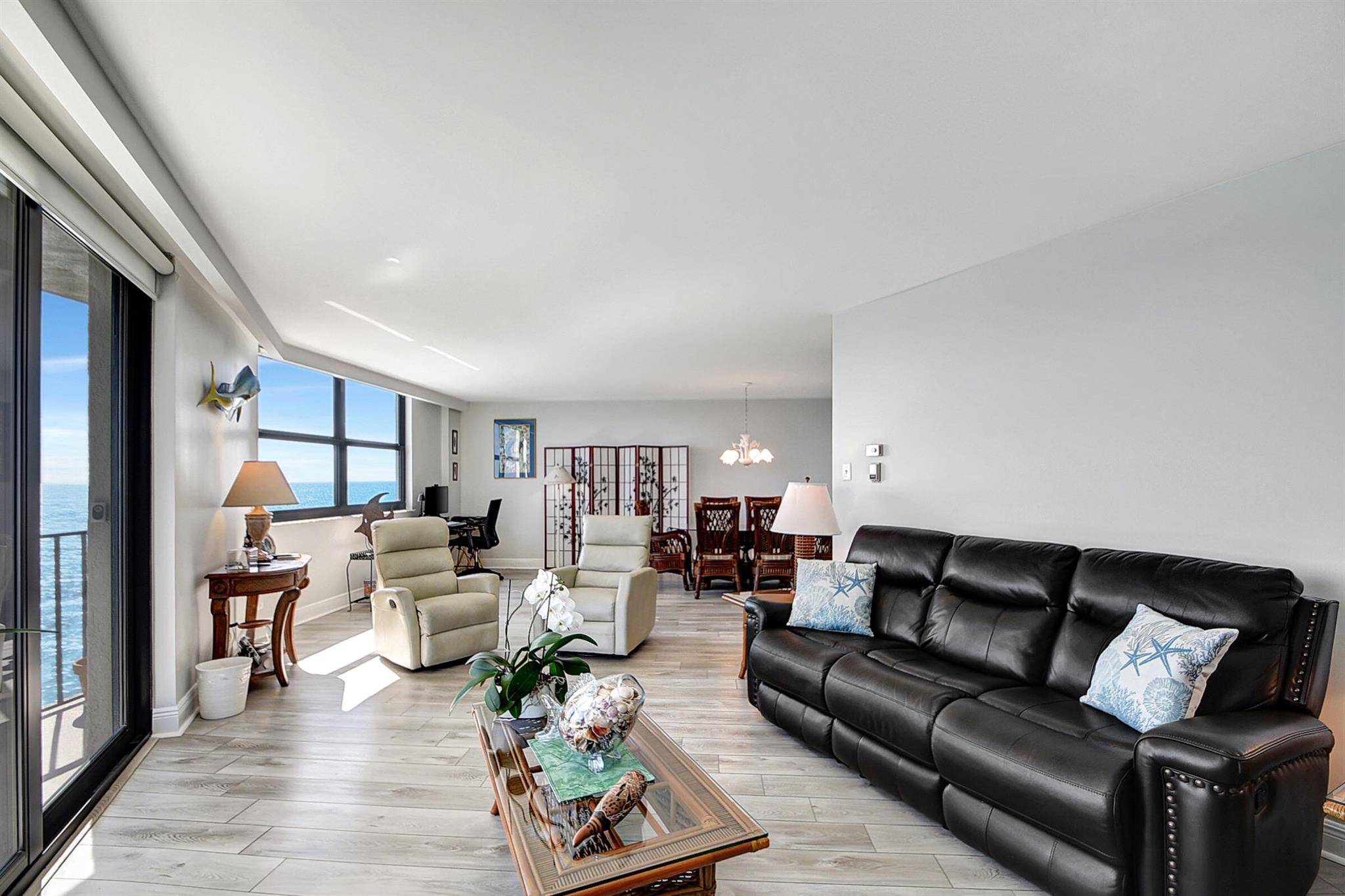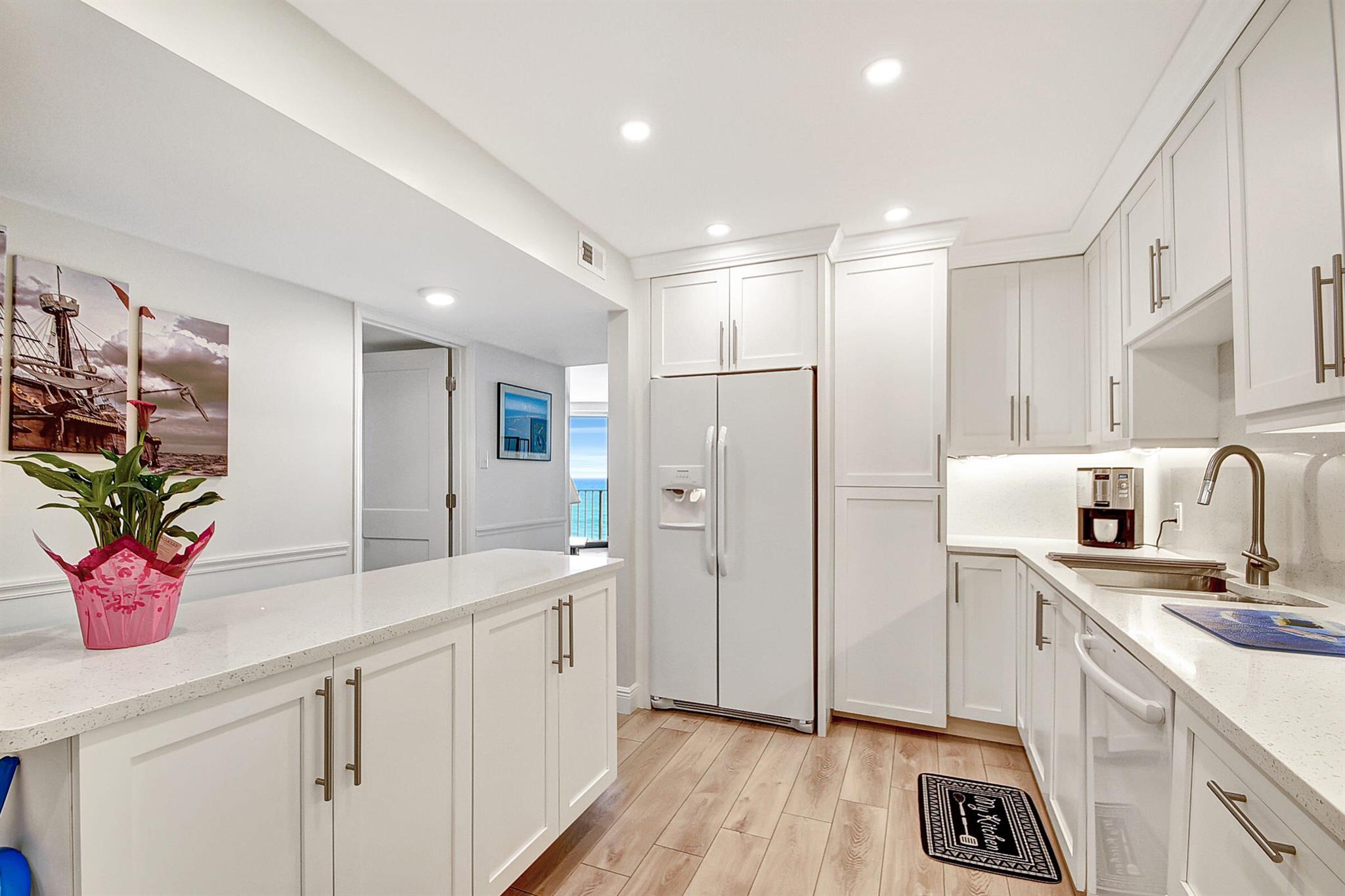 Ocean Views are everywhere, from your Living Room, Dinning Room and both Bedrooms! This beautifully remodeled unit has tile plank flooring in all main living areas, opened white kitchen with snack bar and quartz counter-tops throughout the kitchen. Cutom wet-bar including a wine cooler, glass front cabinets off of the dining room. Walk out from your Master Bedroom to your oceanfront balcony, enjoy your own walk-in closet and master bath with large shower. Your guest will enjoy their own suite with ocean views, plenty of closet space private bath with large walk-in shower. All impact glass windows and sliding glass doors throughout you can put your own washer and dryer in the unit plus a laundry room on each floor.