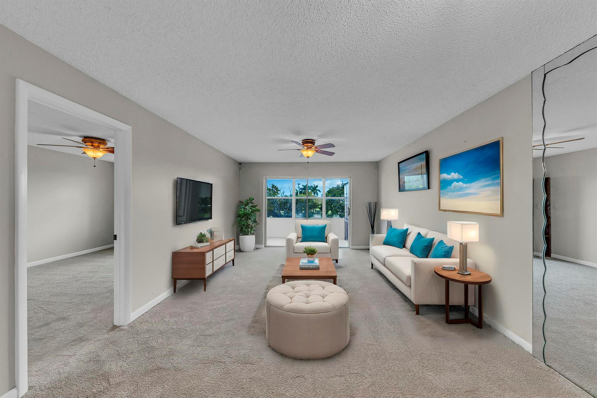 SELLER PAYS BUYER CLOSING COST! Enjoy your morning coffee or unwind on the enclosed patio with serene canal and garden views from the third floor. This 1 Bedroom, 1.5 bath unit in Sunrise Lakes Phase 3 is conveniently near the clubhouse. The open living/dining area is perfect for entertaining, and the spacious, upgraded kitchen boasts wood cabinets and granite countertops. The master suite features a walk-in closet, and there's a convenient half bath for guests. An active 55+ community, offers easy access to shopping, dining, airports, beaches, and medical facilities. Amenities include a main clubhouse with a theater, digital cinema, billiards, card rooms, and a library. Residents enjoy outdoor/indoor pools, saunas, tiki huts, BBQ areas, tennis, handball, pickleball, and a fitness room.