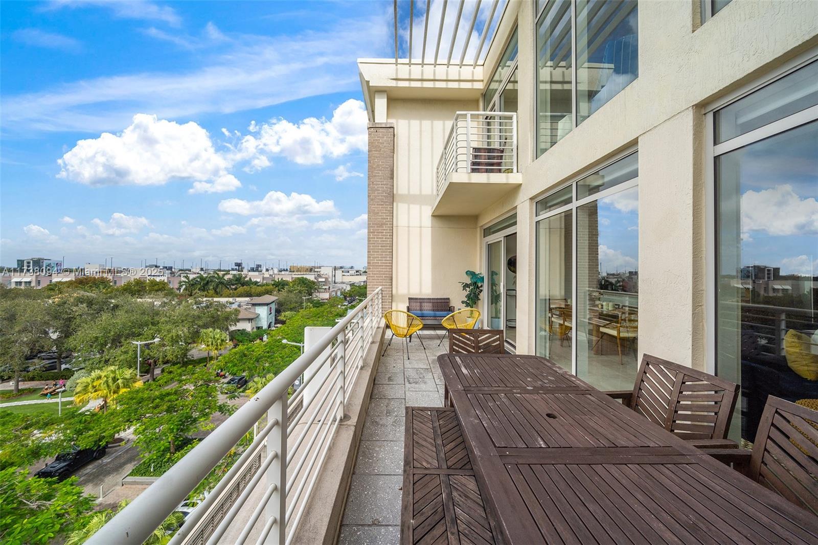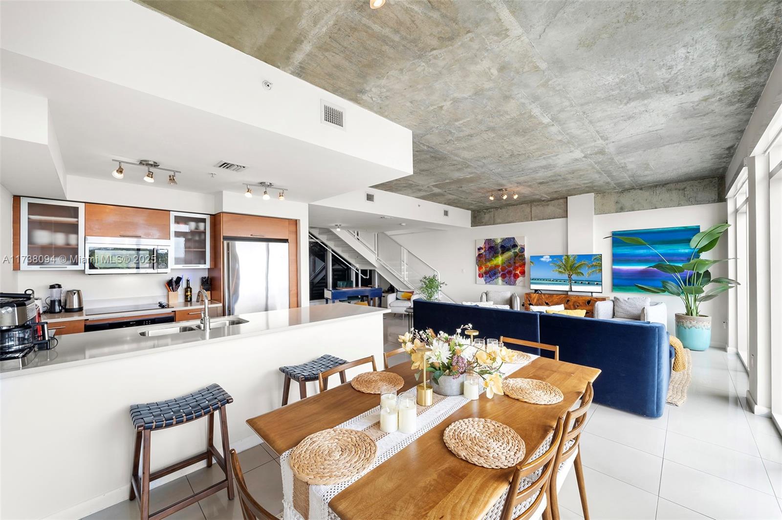 Introducing Midtown Posh at the coveted Midblock Miami condo. One of the most exceptional floor plans in Midblock, Midtown Posh has been professionally decorated to entice end-users and investors alike. Unique to Midblock is the ability to rent on a daily basis, making this 2-story residence an appealing income-producing property. This tropical townhome entry is only available to 5th floor residences. Step inside to impressive concrete ceilings with vibrant furnishings and accents. The first floor is an open floor plan with a den/sitting area, half bath, open living space and balcony. Upstairs are 2 bedrooms with automatic blinds, 2 full baths, laundry closet with new LG w/d and additional balcony. Fully furnished with deeded parking and storage locker. Experience wonder at Midtown Posh!