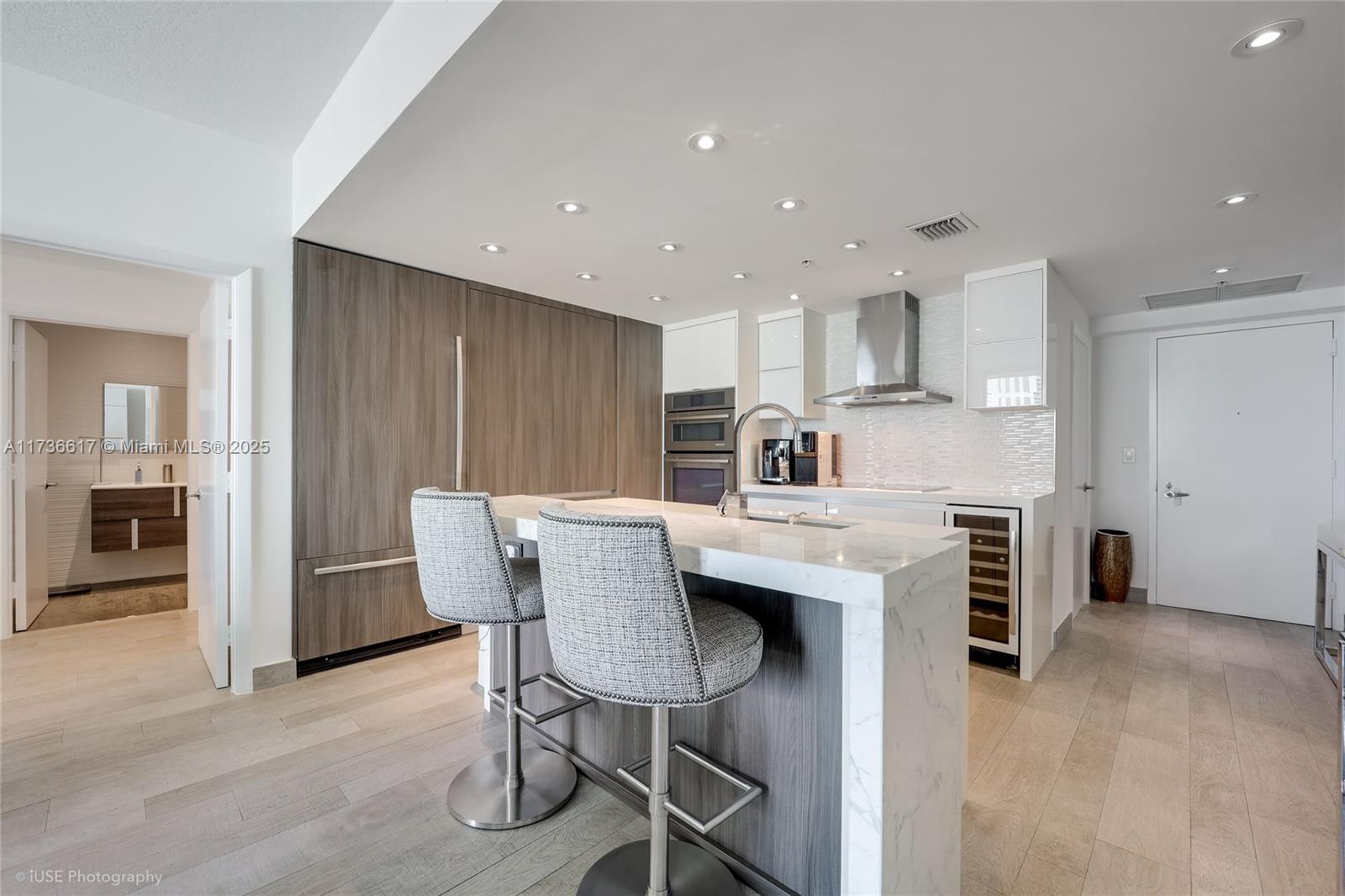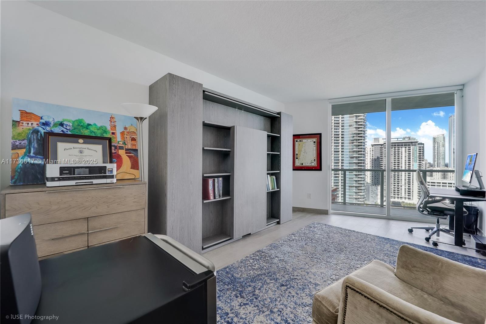 Completely remodeled 2 BD | 2 BA IN Quantum on the Bay, offering direct bay and skyline views from every room. This spacious open floor plan is designed with high-end finishes, including Porcelanosa flooring, custom-built kitchen and bathroom cabinetry, JennAir appliances, and automated lighting. Thoughtfully designed for both style and functionality, the unit features walk-in closets, electric shades, and a custom Murphy bed with an integrated desk. Quantum on the Bay provides resort-style amenities, including: Two heated pools, Two-story fitness center, Theater room, Business center & lounge, Billiard room & party room, Sauna & jacuzzi, Valet service & 24-hour security, on-site mini market, etc.