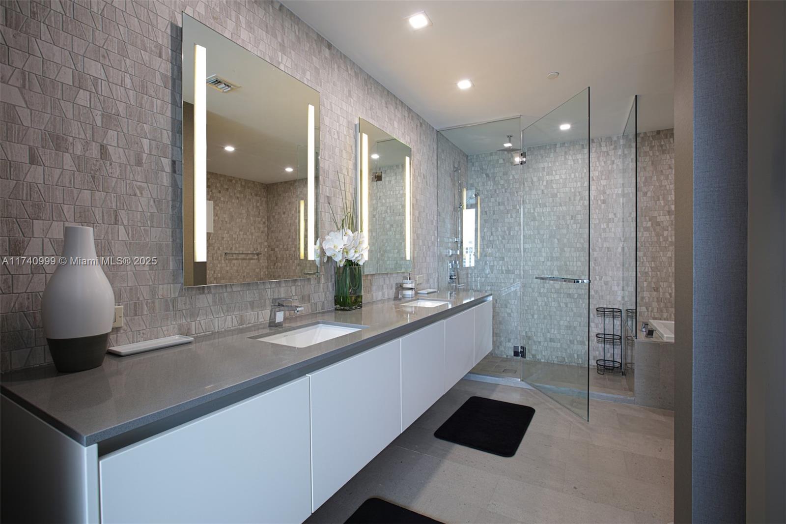 The ultimate luxury living, step into a modern welcoming foyer leading you into an open concept corner unit with floor to ceiling impact windows facing southwest views w/ a slight east view.The ultra sleek kitchen is fully equipped w/ a monochromatic concept, Italian Bosch appliances & wine cooler. All day natural light throughout 3/3.5 vertical home with the most spectacular sunset views. The dining/living space is equipped w/ electrical window treatments. Enjoy an indoor-outdoor living concept w/ multi sliding doors. Closets are finished with custom cabinetry. Master bedroom is complemented w/ a lush bathroom finished with natural tones, vanity w/ double sinks,large standing shower,soaking bathtub,smart toilet. BCC Rise offers full luxury amenities with privacy and security.