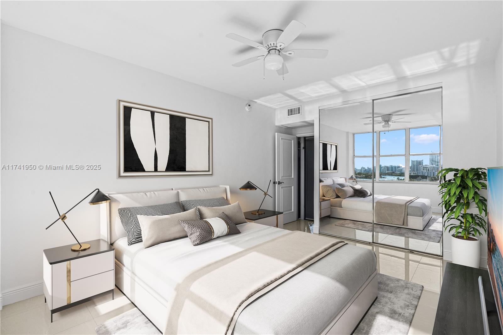 Stunning city and ocean views, tastefully renovated SW corner unit on the 10th floor with abundant natural light. This spacious 2- BD, 2- BA condo features modern appliances, porcelain tiles, elegant ceiling light and brand new high impact windows. Just minutes from the ocean, dining and entertainment. The building boasts an Olympic-sized pool, gym and a social club room with two parking spots included. Located in the desirable North Shore area of Miami Beach, this unit is available for immediate occupancy.