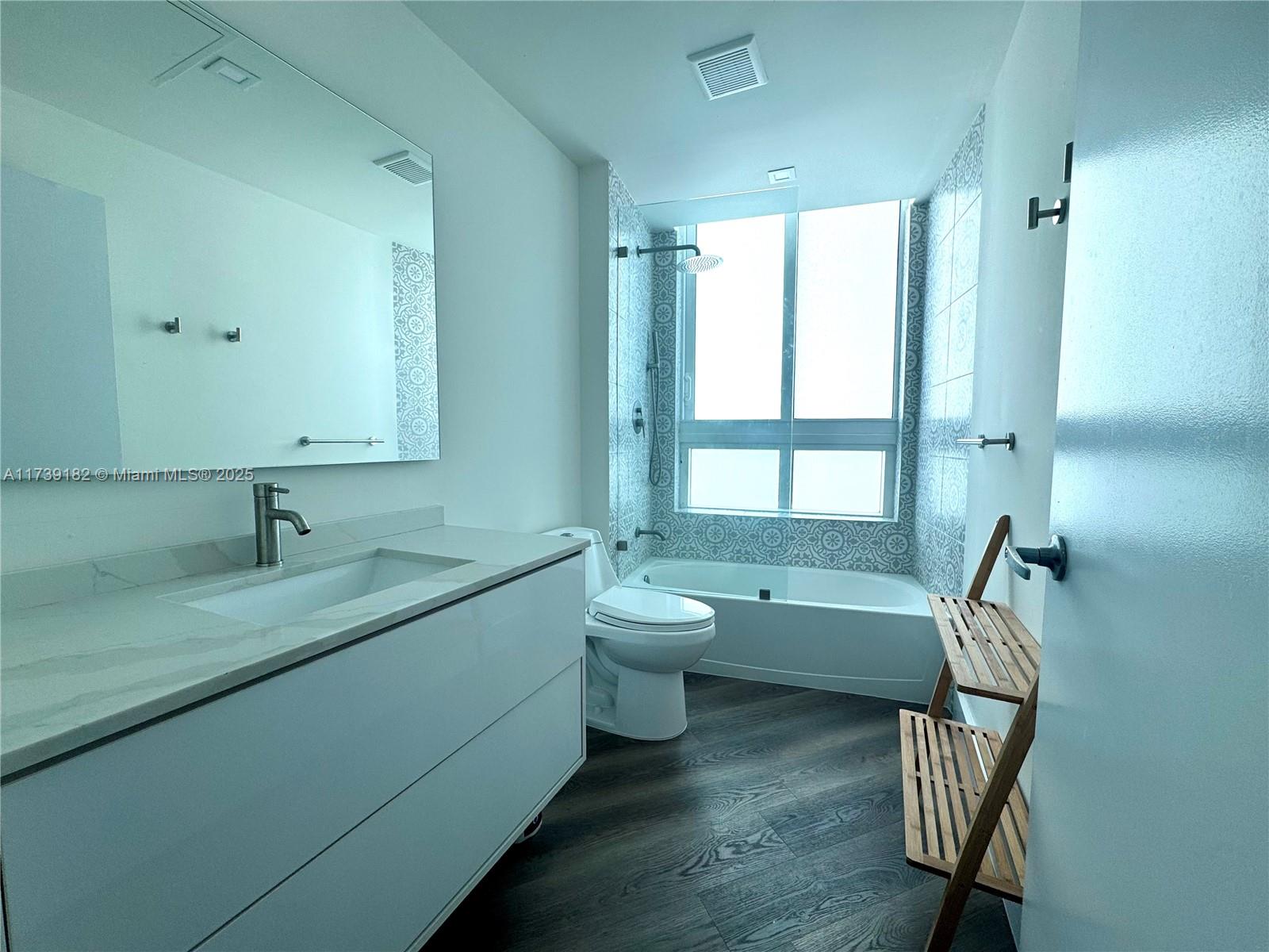 Stunning 1-bedroom, 1-bath condo at Quantum on the Bay with breathtaking bay, city, and Margaret Pace Park views. This high-floor unit features a spacious balcony, open living area, large bedroom with a walk-in closet, and in-unit washer/dryer. Enjoy top-tier amenities: two heated pools, a state-of-the-art gym, sauna, yoga and cycling studios, game room, theater, BBQ area, and 24-hour valet. Located across from Margaret Pace Park, with easy access to Wynwood, Downtown, and Brickell. Walk to dining, shopping, and entertainment. Move-in ready with great rental potential. Easy to show!