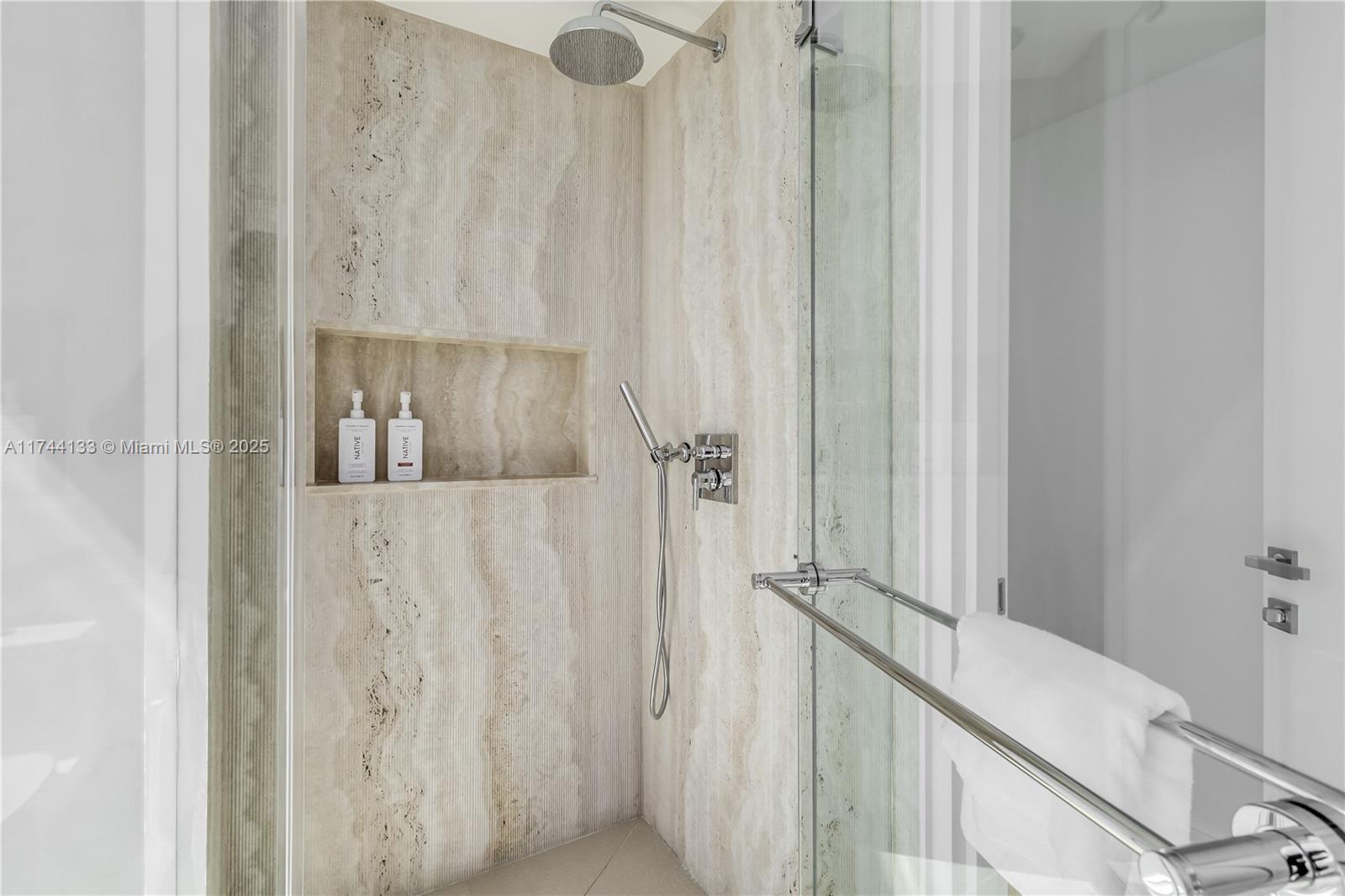 Welcome to Unit 4301, an exquisite fully renovated corner residence in the heart of Edgewater, Miami’s most sought-after bayfront neighborhood. This 2-bedroom, 2.5-bathroom + Den home offers breathtaking panoramic views of Biscayne Bay, the Miami skyline, and beyond. Step into your private foyer and experience elevated elegance with high-quality wood flooring, complemented by real travertine finishes in the kitchen and bathrooms. The open-concept layout is designed for both style and comfort, featuring floor-to-ceiling windows that flood the space with natural light. The kitchen is adorned with premium appliances and custom cabinetry, seamlessly blending functionality and sophistication. The spacious primary suite boasts a spa-like bathroom with travertine details and high-end fixtures.