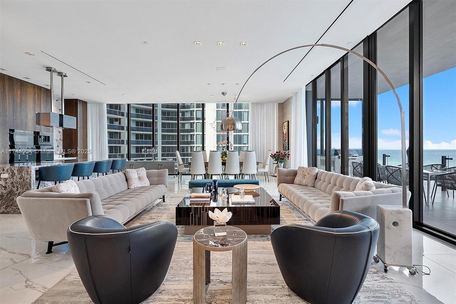 Experience the epitome of luxury living in this stunning 3-bedroom, 3.5-bathroom residence at The Muse in Sunny Isles Beach. Designed by SarahZ Designs, this exceptional home boasts breathtaking ocean views, soaring 12FT ceilings, and a selection of bespoke finishes, including custom wall units, Phillip Jeffries wall coverings, and Italkraft cabinetry. Enjoy a gourmet kosher kitchen equipped with top-of-the-line appliances, dual dishwashers, and a wine cooler. Step out onto the expansive 60-foot long balcony, featuring a built-in BBQ—ideal for hosting guests. Residents enjoy a range of five-star amenities, including beach and pool services, a fitness center, a spa, and an owners' lounge and restaurant. Includes 3 Parking spaces and 1 Storage Unit.