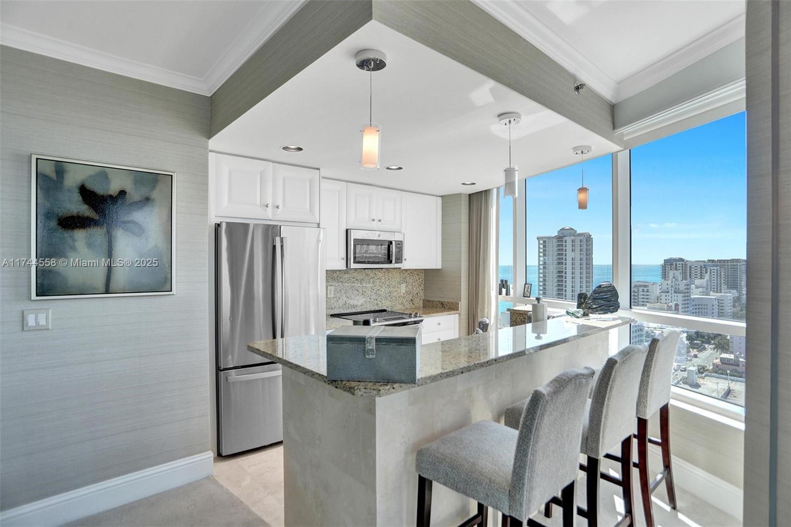 Experience breathtaking ocean, bay & city views from this stunning corner 2BD/3BA unit on the 21st floor of Fontainebleau II. This spacious double unit features a private entrance foyer, three balconies, and comes fully furnished with two king beds, two sleeper sofas, a full kitchen, and an in-unit washer/dryer—offering both luxury and convenience. Enjoy full service, vacation-style living! The Fontainebleau Resort offers luxury amenities on 22 oceanfront acres including award-winning restaurants, LIV night club, Lapis spa & state-of-the-art fitness center. Maintenance fees includes: AC, electricity, valet + daily free breakfast in the owner’s lounge. Click the virtual tour link to see video of property.