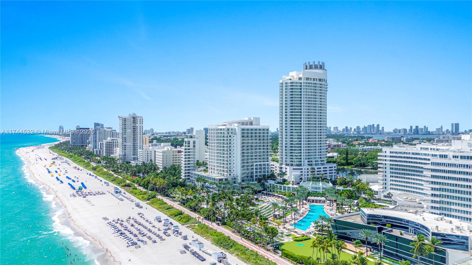 Experience luxury living in this beautiful 1 BD at Fontainebleau II, featuring breathtaking south-facing views of the ocean, city, & Intracoastal. This fully furnished, turnkey unit offers a private terrace, generous closet space, & spacious layout. Includes a king-size bed in the bedroom, sleeper sofa in living area, & a full kitchen. Enjoy the ease of resort-style, full-service living in one of Miami’s most iconic destinations. Enroll in hotel rental program & receive income while away! The Fontainebleau Resort offers luxury amenities on 22 oceanfront acres including award-winning restaurants, LIV night club, Lapis spa & state-of-the-art fitness center. Maintenance fees includes: AC, electricity, valet + daily free breakfast in the owner’s lounge.