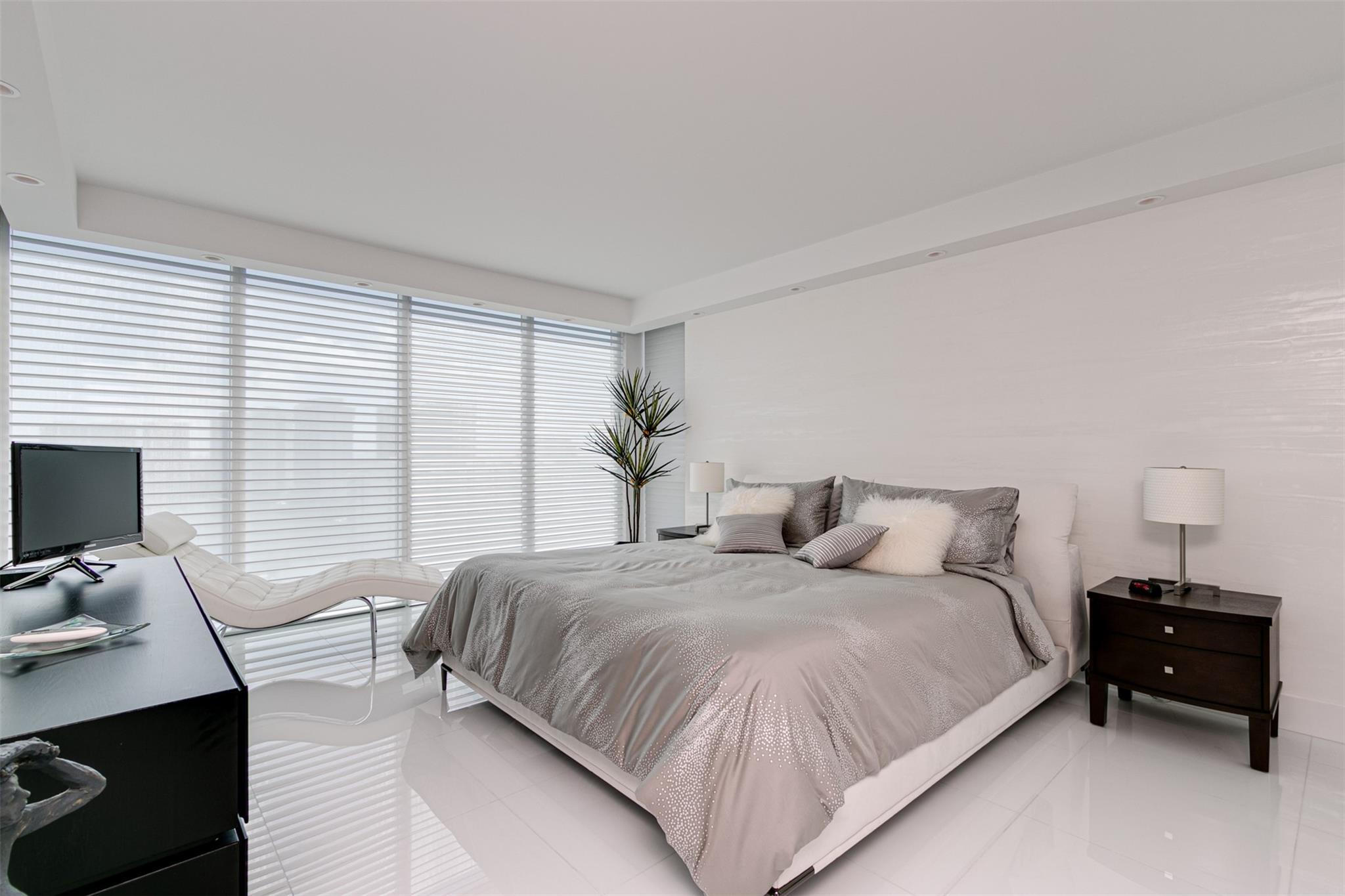 Magnificent 15 Line unit East and West views from the unit. So bright. The most sought units in at Hidden Bay. This unit is totally renovated in style with taste. 2 Parking spots. Furnished with taste and quality. Sold Turnkey. Rarely on the market and so well renovated.