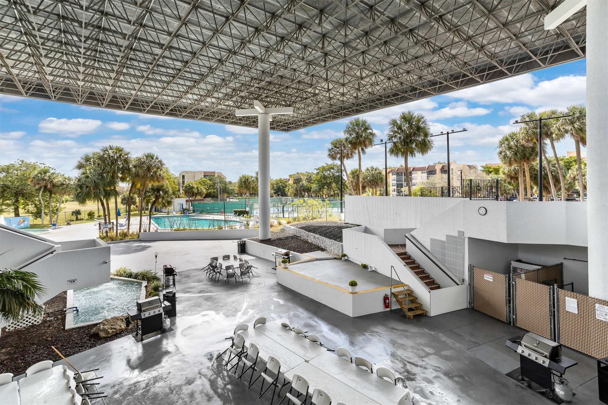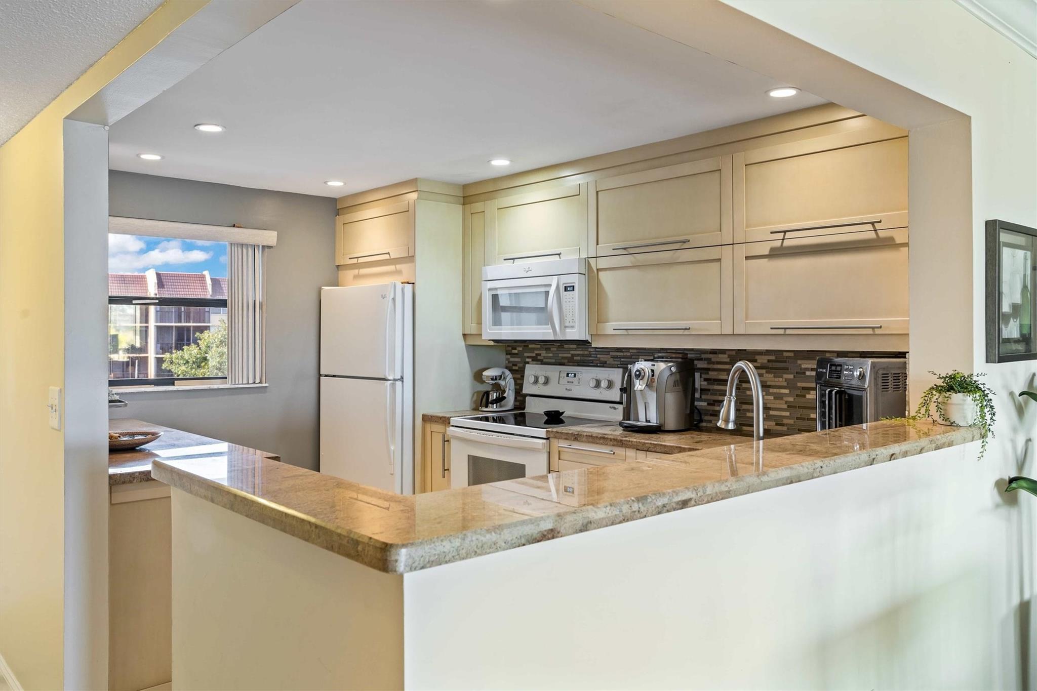 This beautifully updated 2/2 condo is located in a vibrant 55+ community, offering a turnkey, fully furnished living space just steps from the clubhouse. The condo features modern finishes, including granite countertops, stainless steel appliances, and updated bathrooms. The spacious open-concept layout is perfect for entertaining, with large windows bringing in natural light and a private screened-in patio for relaxing. The community is packed with resort-style amenities, including a heated pool, fitness center, tennis courts, shuffleboard, and a clubhouse that hosts social events, fitness classes, card games, and more. Conveniently located near shopping, dining, and medical facilities, this condo is perfect for those seeking an active and maintenance-free lifestyle. washer/dryer in unit