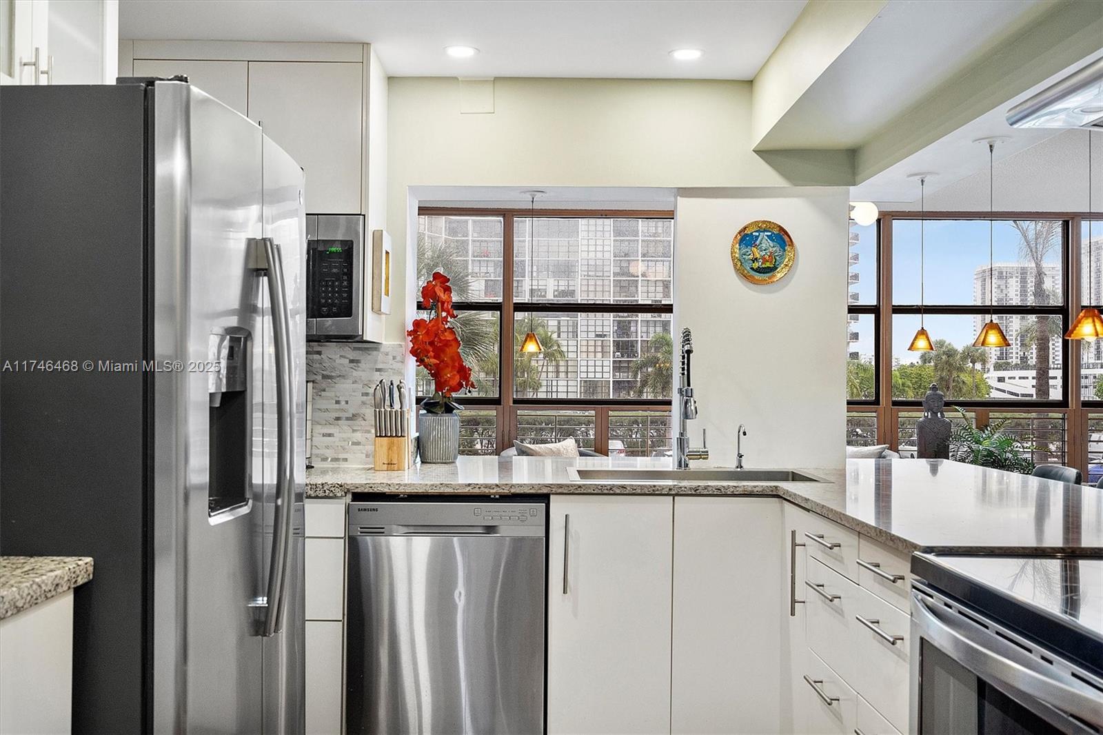 Open-concept design with contemporary finishes. Spacious, modern, and fully renovated. Floor-to-ceiling windows, plantation shutters, walk in closet. In-unit washer/dryer, 2024 AC, hurricane shutters. Amenities include gym, heated pool, tennis courts, sauna. 24/7 door man. Located in a prime area, you'll be close to all local restaurants, shopping and beaches.